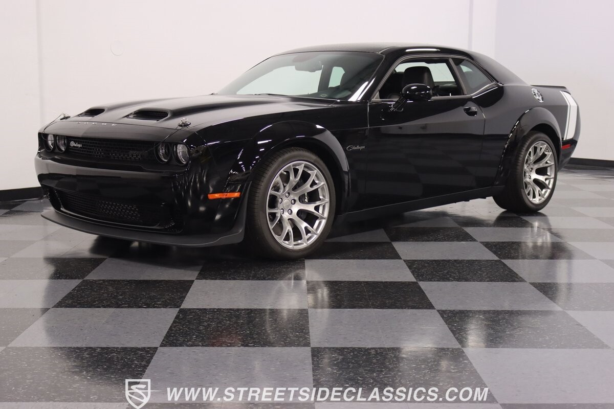 This 2023 Dodge Challenger SRT Hellcat Redeye Last Call Black Ghost is a modern incarnation of a legend. With its 6.2L Supercharged HEMI V8 engine delivering a thunderous 807 hp, it stands as a tribute to the original 1970 Black Ghost, capturing its spirit and power for a new generation. Inside, the black leather and suede embrace you, offering a luxurious haven, while advanced technology enhances your experience. Call today!