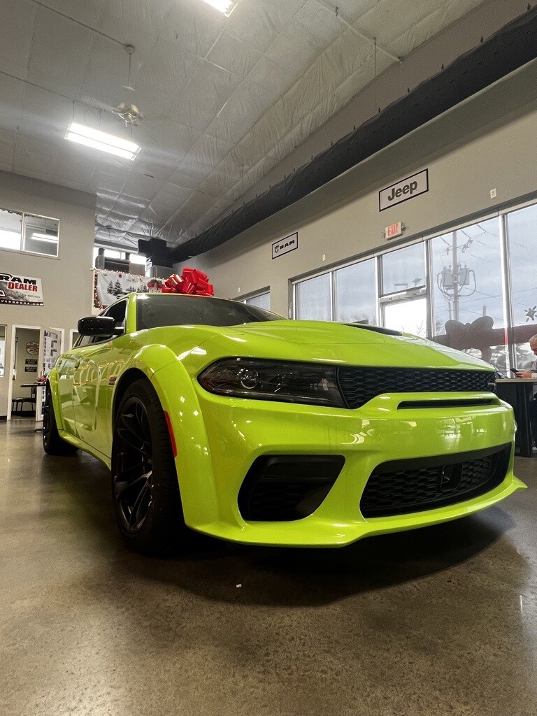 Sublime Metallic Clearcoat 2023 Dodge Charger R/T Scat Pack Widebody RWD 8-Speed Automatic SRT HEMI 6.4L V8 MDS Black Artificial Leather.