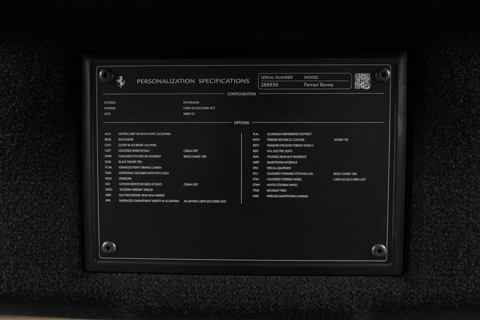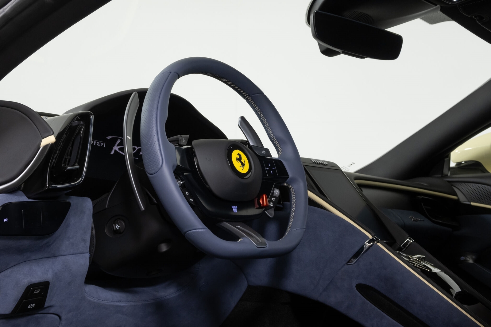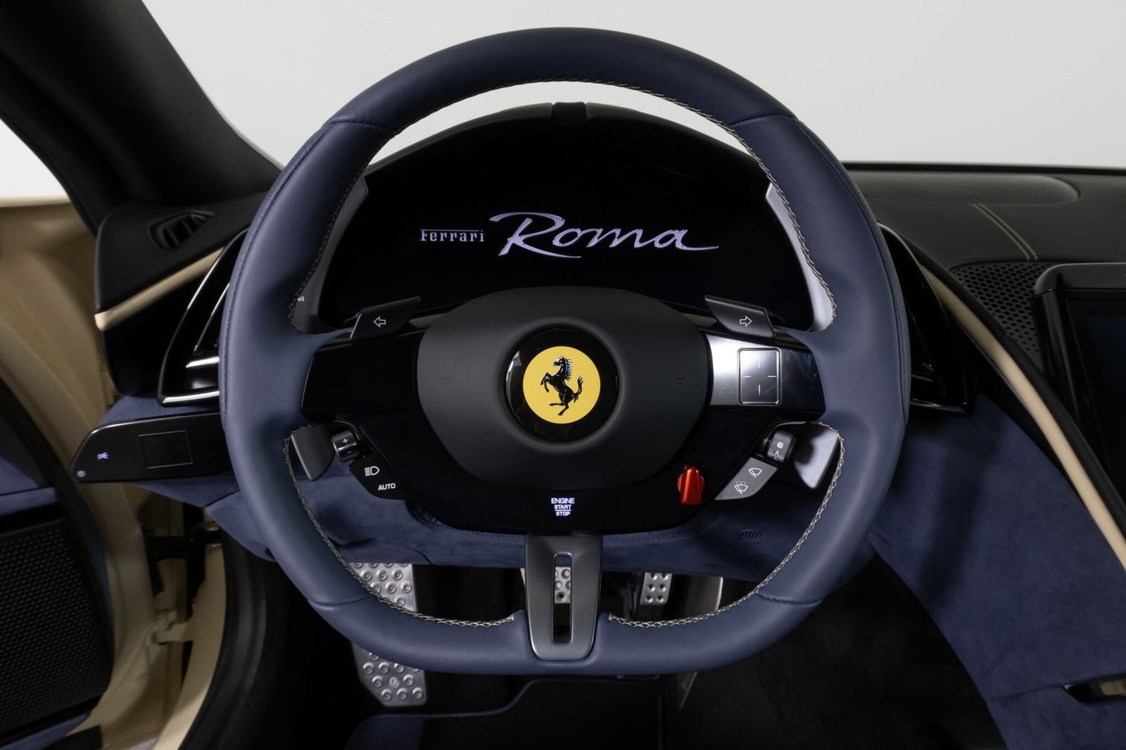 Ferrari South Bay is happy to bring to market this 1-owner 2023 Roma, finished in stunning Avorio (Ivory), with Carta de Zucchero (Blue) Leather accented with Light Beige Leather and Stitching with contrasting Light Blue leather and Alcantara accents. It's a gorgeous opportunity for you to experience Ferrari's "La Nuovo Dolce Vita" accompanied by the glorious song of a twin turbocharged Ferrari V8 in a very elegant Coupe that's sure to turn heads at the club or on the red carpet.The exterior Avorio finish is accented by Black Tailpipe Tips. Carbon Ceramic brakes with Glossy Black Calipers sit behind 20" Diamond-Polished Forged Wheels. Scuderia Ferrari Shields grace the front fenders. The 3.9 liter twin-turbo V8 produces 612 horsepower which is delivered through an 8-speed Dual Clutch transmission that will make short work of your favorite canyon, or provide a comfortable cruise to your favorite restaurant. The nose of the car has been covered in Paint Protective Film since new, ensuring your beautiful car remains stunning for years to come.Inside, you'll find gorgeous Carta da Zucchero (blue) Leather accented with Beige Chiarro (light beige) Leather and Alcantara Accents throughout the cabin. Beige Chiarro stitching is employed on all surfaces, including the Cavallinos embroidered on the headrests of the Fully Electric Seats. The Heated Steering Wheel is finished in Carta da Zucchero. An Aluminum Footrest helps your passenger brace for that blast down a set of twisties. The Advanced Front Driving Camea and Rear Radar help with tight maneuvers, while Blind Spot Detection assures safe lane-changes on the highway. The Folding Rear Seat Passthrough allows room for your skis on the way to the slopes, and the Wireless Smartphone Charger and Interface are welcome conveniences.This 2022 Ferrari Roma is offered with one key, and tools. As a Ferrari Certified Pre-Owned vehicle, it has passed Ferrari's rigorous 101- point inspection and carries the remainder of its Original Full Factory Warranty through May 25, 2026 (and the warranty is easily-extendable for up to two years at time of purchase). Ferrari's Genuine Maintenance Program will take care of all annual services through May 25, 2030. Please contact our knowledgeable sales staff if you'd like further information or to set up a time to stop in and take a look!