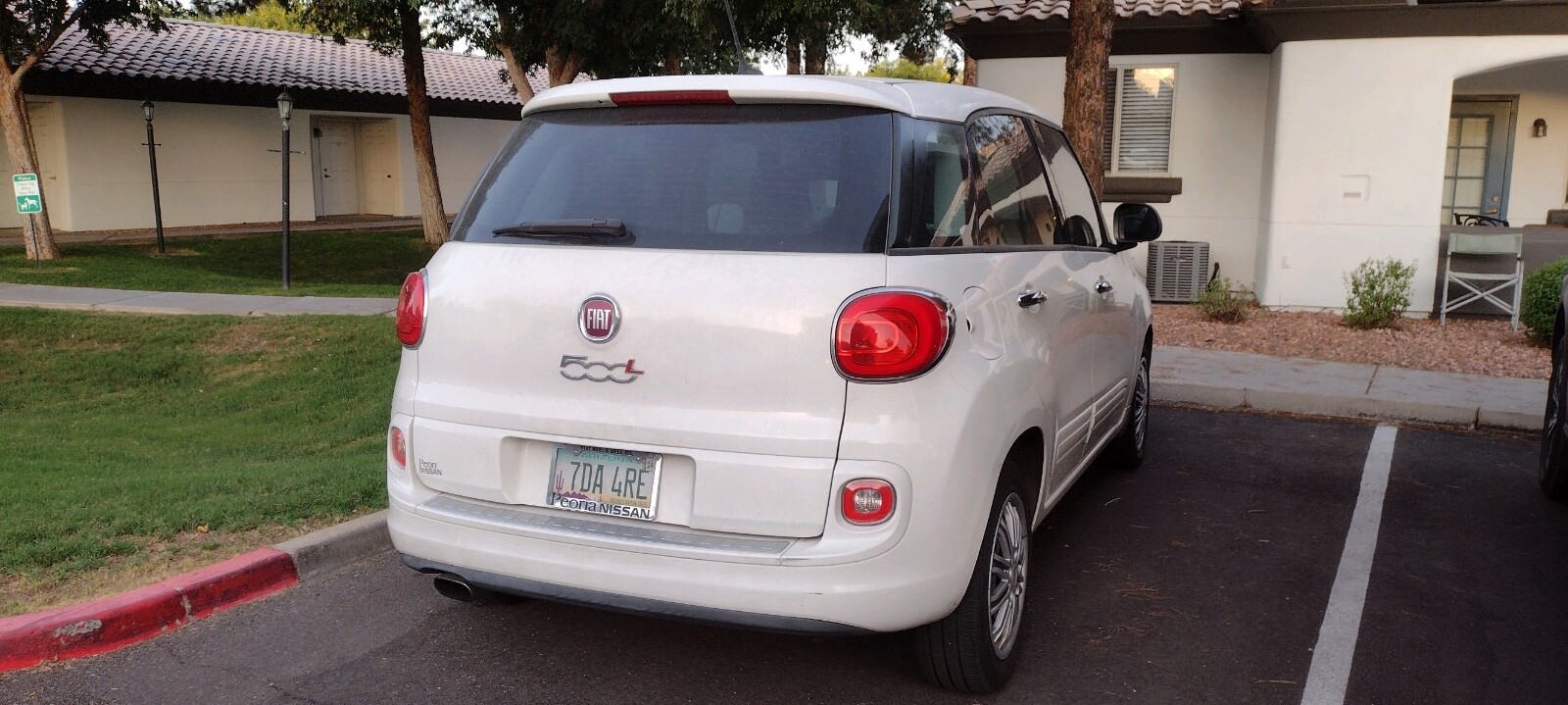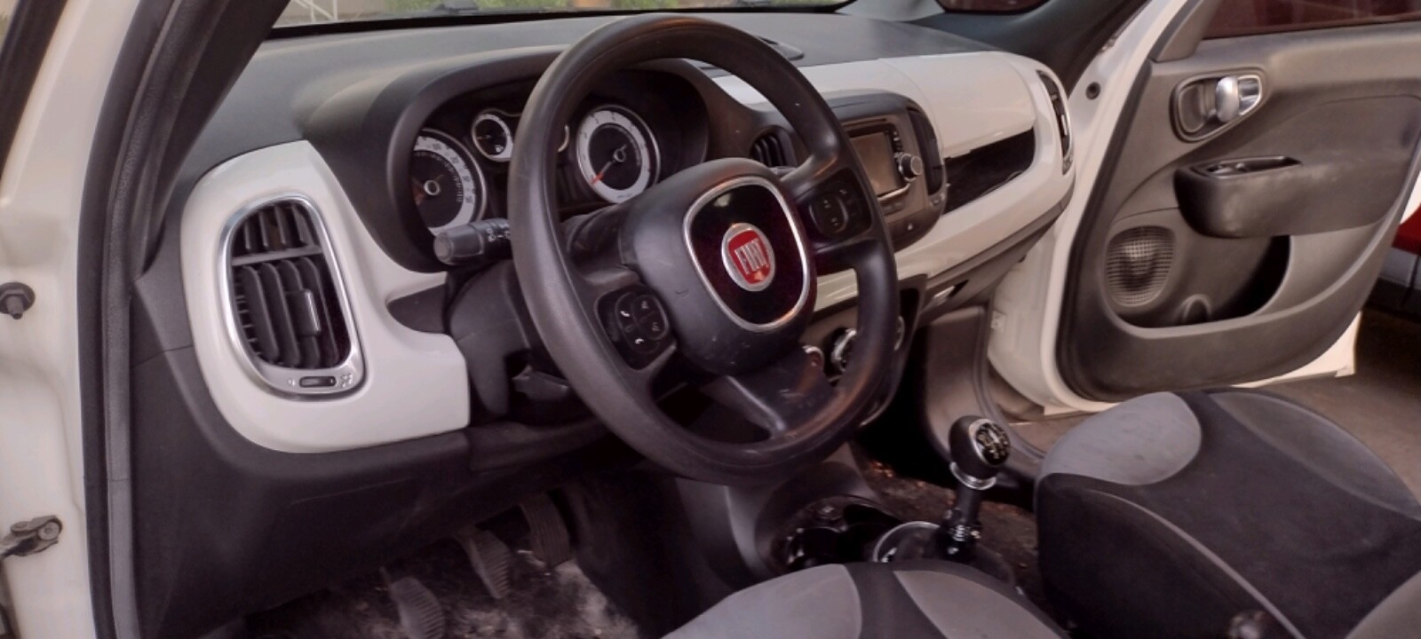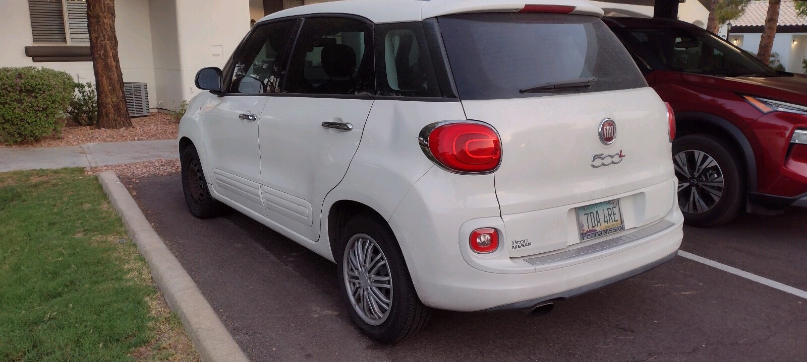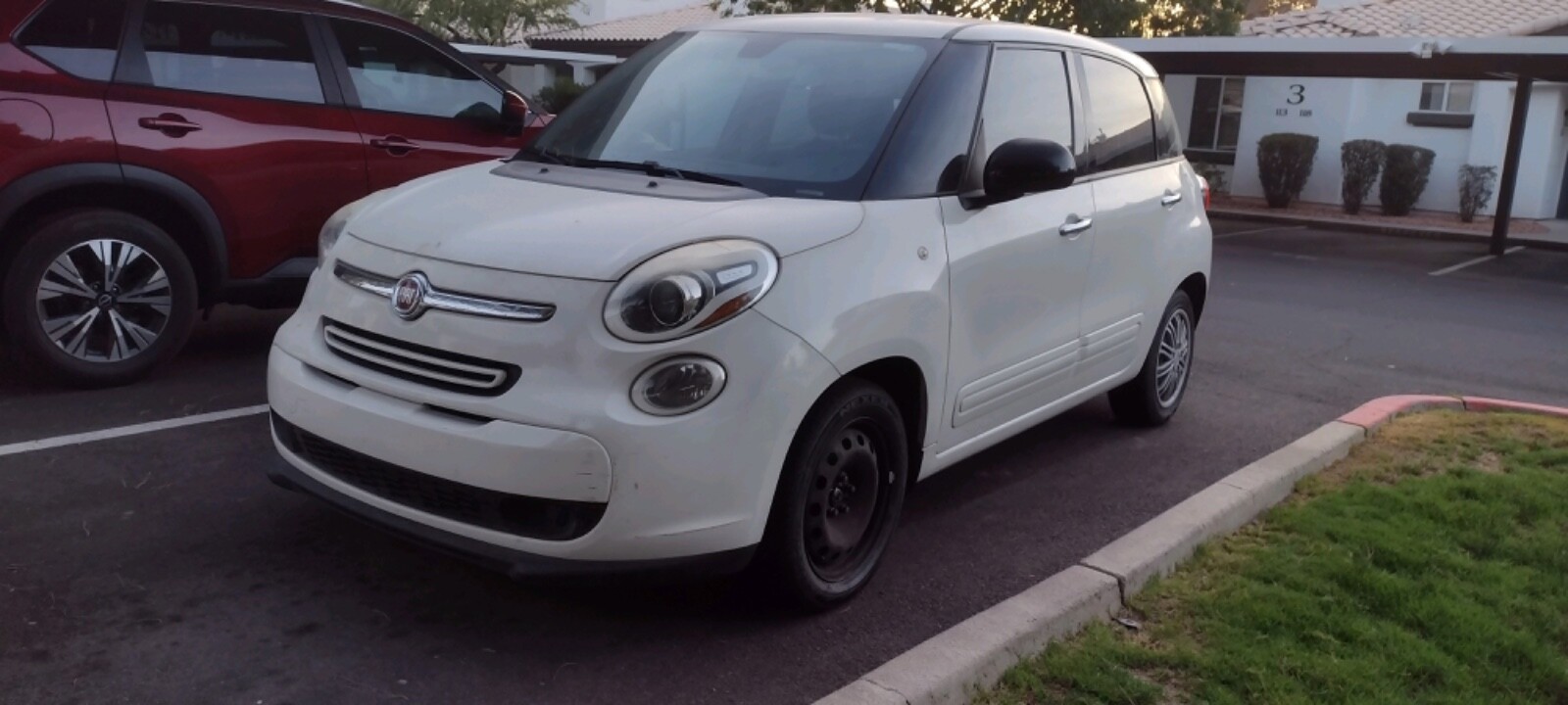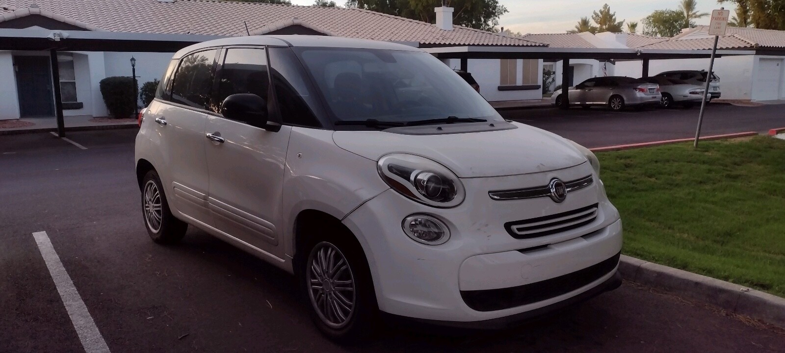 White 4-door hatchback 2014 Fiat 500L Pop. 6-speed manual transmission. Newly rebuilt clutch, but does not run.