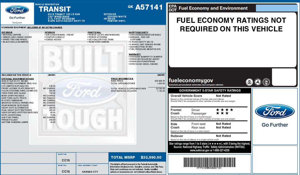 2016 Ford Transit 150|101,776 Miles|runs & Lot Drives |right Front Damage |all Airbags Deployed|3.7l V6|rwd |clean Title|check Rules And Regulations In Your State For Title Transfer|please Call Our Offices For More Details Or To Arrange A Purchase| $500 Non-refundable Deposit Required To Purchase Any Vehicle And Remove From All Advertising Sites. Balance To Be Paid Within 3 Business Days |vehicle Must Be Shipped Or Picked Up Via Trailer!|