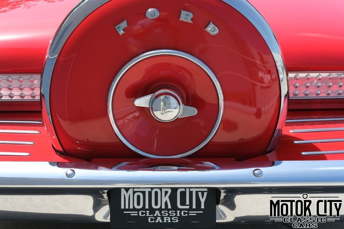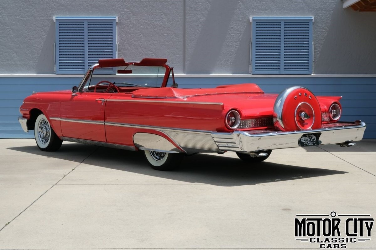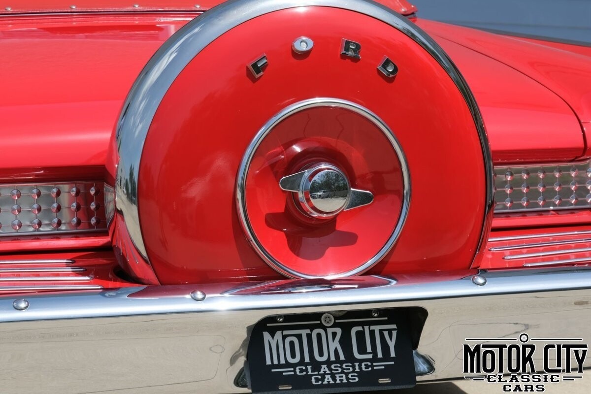 This 1961 Galaxie Sunliner is a true work of art and spent much of its life in an automotive museum. Previously identified as embodying a 'functional expression of classic beauty', this car is the entire package. Having undergone an extensive restoration; the Monte Carlo Red exterior is paired perfectly with the red leather interior. Power black convertible top; chrome wire wheels; wide whitewall tires; stainless fender skirts; dual exhaust and gorgeous continental kit round out the beauty of the exterior. The 352 cubic inch V8 is seamlessly paired to a Cruise-O-Matic automatic transmission; dismissing the size of this vehicle when pushing the gas. This Sunliner is undoubtedly one of the finest presentations of a Galaxie available today.