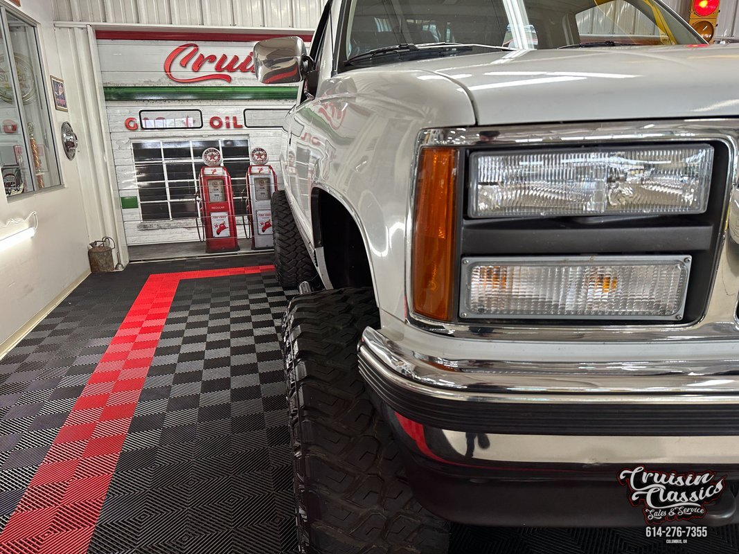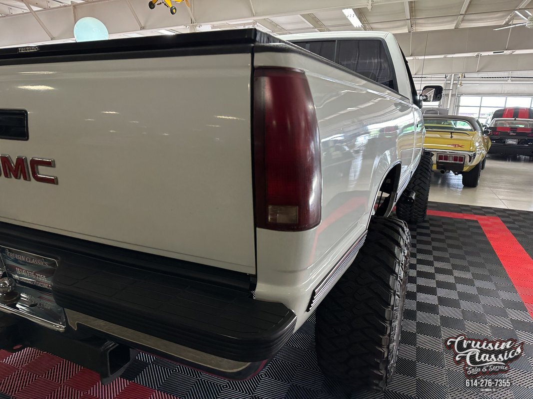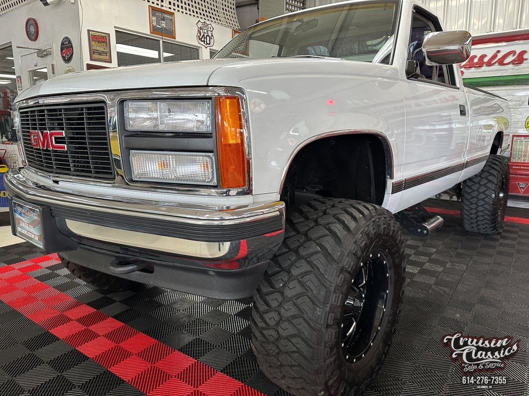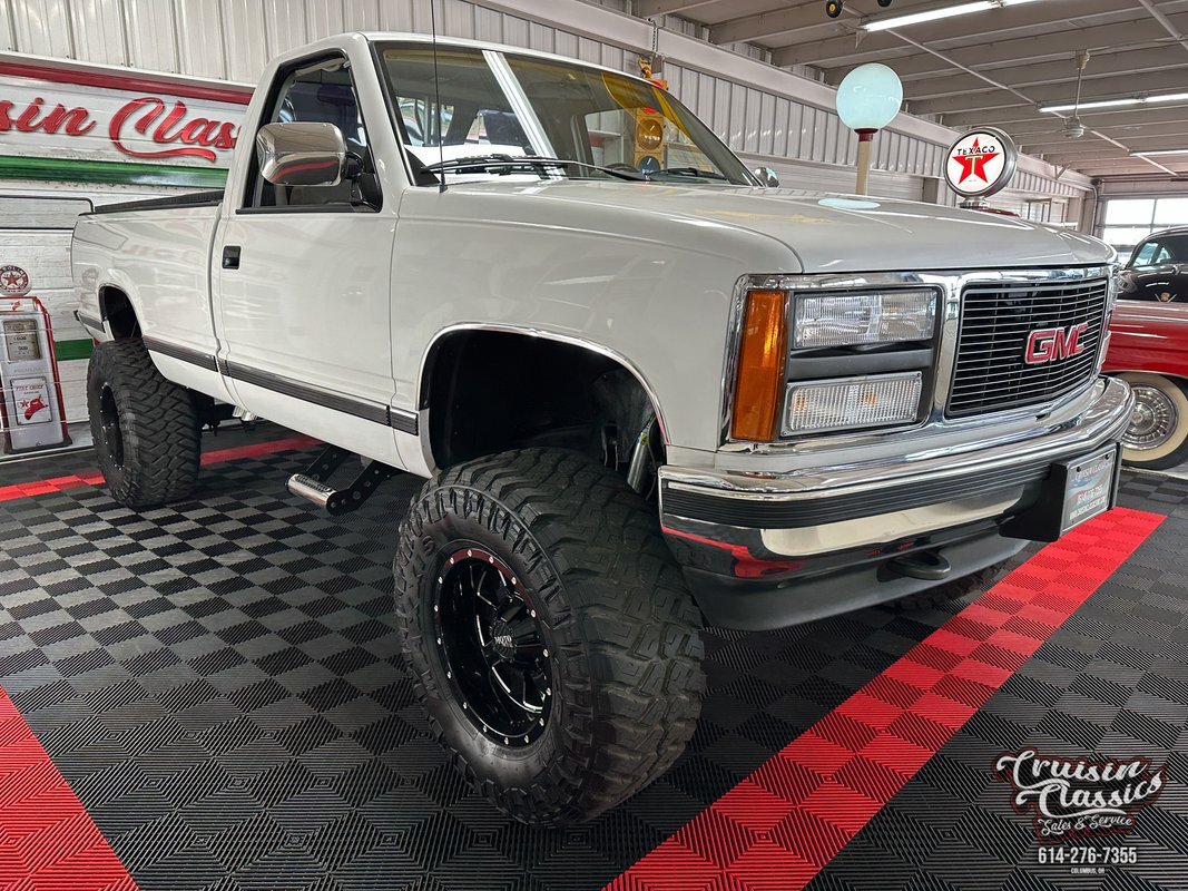 If you are looking for a great-looking, powerful, lifted, and well-optioned full-size 4-wheel drive truck then this 91 GMC Sierra will knock your socks off! This truck really does check all the boxes – strong V-8, overdrive transmission, cold A/C, killer stereo, beautiful interior, 4WD, lined bed, tonneau cover, awesome wheel & tire combo, and a towing package! This truck will surely not be with us for long, so call our friendly staff right away to make sure that you're the next owner!