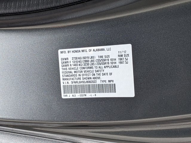 2018 Honda Odyssey Elite 84932 Miles Modern Steel Metallic Mini-van, Passenger R