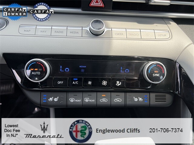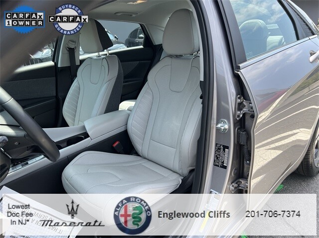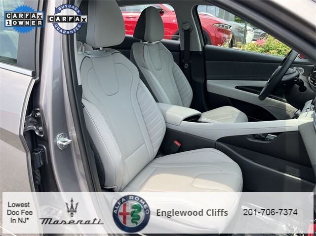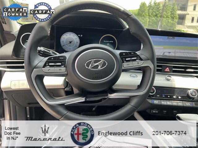 This Elantra Hybrid Limited is nicely equipped with Cargo Package (Cargo Block, Cargo Net, and Reversible Cargo Tray), Option Group 01, 1.6L I4 DGI Hybrid DOHC 16V, AppLink/Apple CarPlay and Android Auto, Auto High-beam Headlights, Auto-dimming Rear-View mirror, Automatic temperature control, Brake assist, Electronic Stability Control, Exterior Parking Camera Rear, Front dual zone A/C, Fully automatic headlights, Garage door transmitter: HomeLink, Heated & Ventilated Front Bucket Seats, Heated door mirrors, Illuminated entry, Memory seat, Navigation System, Outside temperature display, Overhead console, Panic alarm, Power door mirrors, Power driver seat, Power moonroof, Power steering, Power windows, Radio: AM/FM/HD/SiriusXM Display Audio, Rear window defroster, Remote keyless entry, Security system, Speed control, Speed-sensing steering, Steering wheel mounted audio controls, Traction control, Turn signal indicator mirrors, 17 x 7.0J Alloy Wheels, 4-Wheel Disc Brakes, 8 Speakers, ABS brakes, Air Conditioning, Alloy wheels, AM/FM radio: SiriusXM, Bumpers: body-color, Carpeted Floor Mats, Delay-off headlights, Driver door bin, Driver vanity mirror, Dual front impact airbags, Dual front side impact airbags, Emergency communication system: Blue Link Connected Car Service (3-year complimentary subscription), First Aid Kit, Front anti-roll bar, Front Bucket Seats, Front Center Armrest, Front reading lights, Front wheel independent suspension, Heated front seats, Leather Seating Surfaces, Leather Shift Knob, Low tire pressure warning, Occupant sensing airbag, Overhead airbag, Passenger door bin, Passenger vanity mirror, Rear seat center armrest, Split folding rear seat, Tachometer, Telescoping steering wheel, Tilt steering wheel, Trip computer, Variably intermittent wipers, and Ventilated front seats.