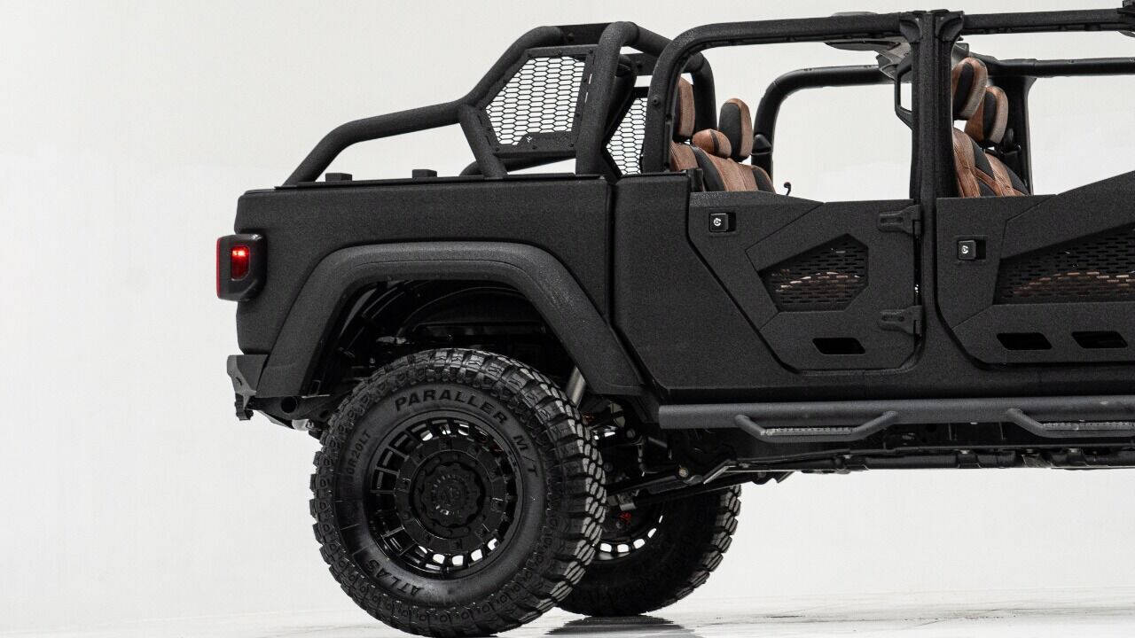 BOBBED BED GLADIATOR YEAR: 2023 COLOR: Off Road Armor Coated Black TRIM: SoFlo Special LIFT: 4” TIRES: 38 Atlas RIMS: 20 Militia HOOD: Looking Glass GRILL: Bumper with Winch SIDESTEPS: Steel HEADLIGHTS: 9” Halo SPECIAL FEATURES: Modified Pick Up Bed WEATHERPROOF INTERIOR: Cowboy Saddle WHAT MAKES THIS TRUCK SPECIAL: Only ever bobbed bed produced SoFlo Customs pickup. This short bed Gladiator is really an eye-widener. The operation of bobbing loses 14” of the original factor pickup bed. CALL US OR COME SEE THESE CUSTOM TRUCKS IN PERSON Location 1: 1430 W Broward, BLVD Fort Lauderdale, FL 33312 855-873-7632 Location 2: 2720 Okeechobee BLVD West Palm Beach, FL 33406 855-873-7632 NEW E-PURCHASE SYSTEM - Customers never have to leave the comfort of their home couch to purchase a SoFlo Jeeps or Apocalypse 6x6 truck. We offer online payment, financing and video walkarounds. We ship our trucks worldwide to any and every location. Have a trade-in? Not a problem at all, as WE ACCEPT TRADE-INS NATIONWIDE AND YOU NEVER PAY TO SHIP IT. We make buying and receiving your dream truck beyond simple. ****ALL PIPE DOORS ARE EXTRA AND NOT INCLUDED IN PRICE OF THE TRUCK****