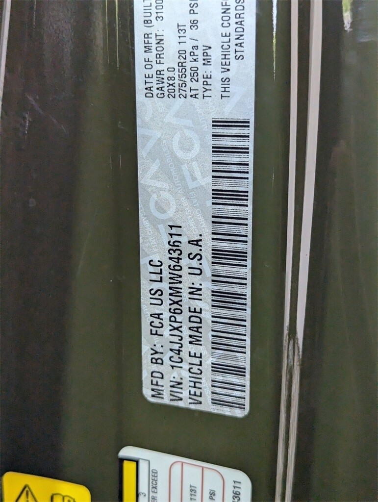 NEED DIRECT AND QUICKER ASSISTANCE? DIAL 561.454.1848 TO SPEAK TO A LIVE SALES CONSULTANT. Ready For Immediate Delivery, Passed Dealer Inspection, Vehicle Detailed, Fresh Oil Change, 2.0L I4 DOHC, 3.73 Rear Axle Ratio, 4-Wheel Disc Brakes, 9 Speakers, ABS brakes, Air Conditioning, Alloy wheels, AM/FM radio, Apple CarPlay/Android Auto, Auto-dimming Rear-View mirror, Automatic temperature control, Brake assist, Compass, Delay-off headlights, Driver door bin, Driver vanity mirror, Dual front impact airbags, Dual front side impact airbags, Electronic Stability Control, Emergency communication system: SiriusXM Guardian, Front anti-roll bar, Front Bucket Seats, Front Center Armrest w/Storage, Front dual zone A/C, Front fog lights, Front reading lights, Fully automatic headlights, Garage door transmitter, Heated door mirrors, Illuminated entry, Integrated roll-over protection, Leather Shift Knob, Leather steering wheel, Leather Trimmed Seats w/Sahara Logo, Leather Wrapped Park Brake Handle, Low tire pressure warning, Occupant sensing airbag, Outside temperature display, Panic alarm, ParkView Rear Back-Up Camera, Passenger door bin, Passenger vanity mirror, Power door mirrors, Power steering, Power windows, Radio data system, Radio: Uconnect 4C Nav w/8.4 Display, Rear anti-roll bar, Rear reading lights, Rear seat center armrest, Remote keyless entry, Security system, Speed control, Split folding rear seat, Sport Suspension, Steering wheel mounted audio controls, Tachometer, Telescoping steering wheel, Tilt steering wheel, Traction control, Trip computer, Variably intermittent wipers, Voltmeter, Wheels: 20 x 8 Fully Painted Aluminum. 2.0L I4 DOHC 8-Speed Automatic