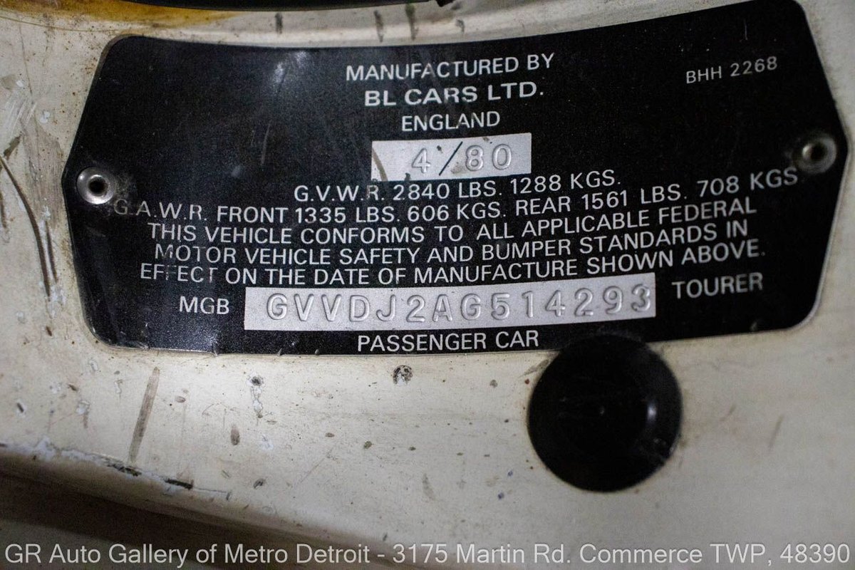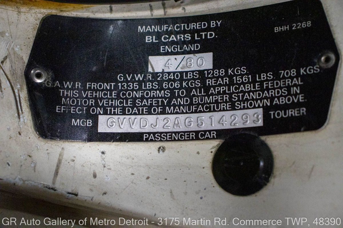 GR Auto Gallery is pleased to present this original & unrestored, one-owner, 38k original mile, 1980 MG MGB for your consideration. This MG comes in a stunning Glacier White exterior over a sleek Black interior. Powering this beauty is a 1798 cubic centimeters inline 4 engine, paired with a 4-speed manual transmission. With only 38,858 original miles on the odometer, this MGB has been well maintained by its one owner since new. All original and always garage kept, this MG MGB features a mahogany steering wheel, fresh tune-up, carburetor rebuild, replaced brakes and master cylinder, new exhaust system, tires, cooling fan, fuel pump, and more. Drive this one out of our showroom or have us assist with shipping it to you anywhere in the United States! Don't hesitate to call us with any questions or for more information.