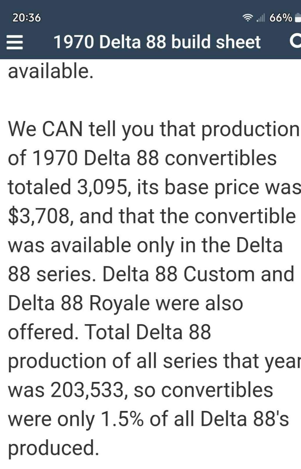 This 1970 Oldsmobile Delta 88 is an original. The owner has had it for 5 years. The vehicle is drivable and is mainly used for parades and weddingsSeller's Notes