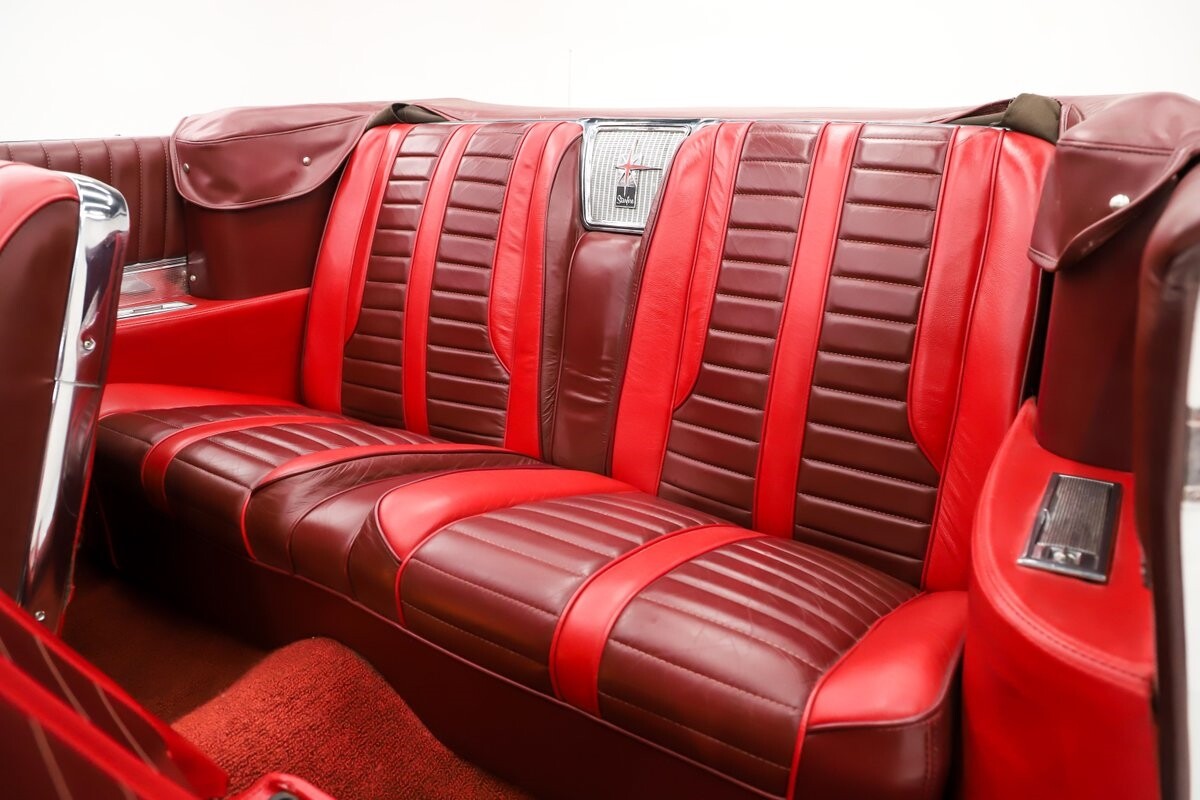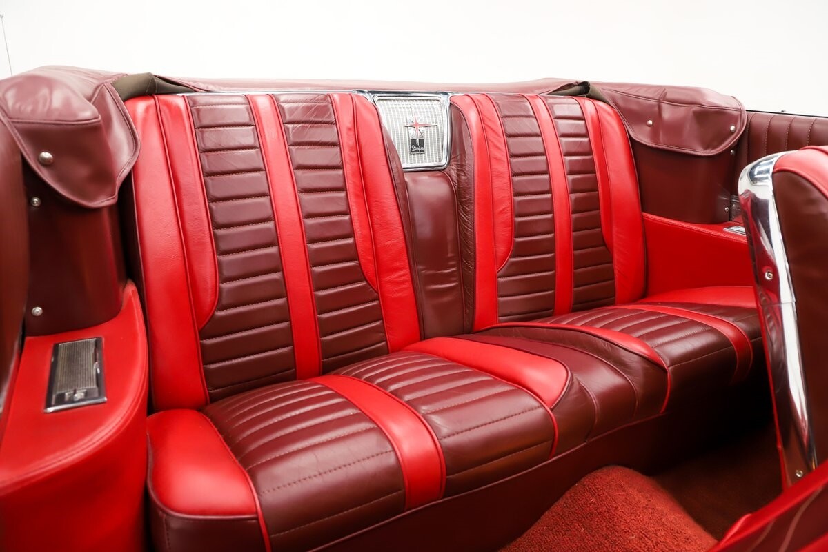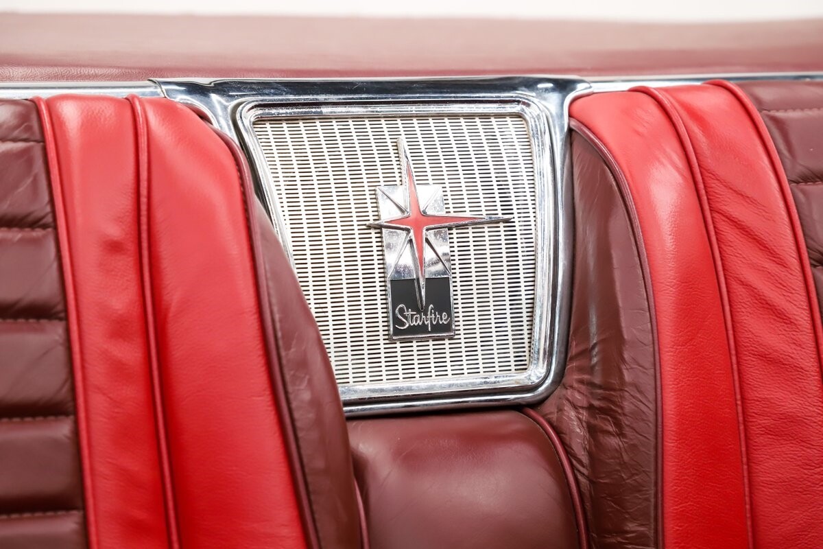 INTERIOR: Best part of the car. Someone spent some coin on genuine leather upholstery! The door panels are really stylish, upper panels are new leather. The seats are really cool too; buckets in front and the back is shaped like buckets too. All leather seats including the sides. The dash is also very cool with lots of trim, shapes and check out the clear plastic over the glove box and the cool steering wheel! Even the pedals have style. There is a modern stereo hidden in the glove box. Features include a console with a tachometer, power windows and seat, wonderbar radio, front seat belts and speed warning indicator.
