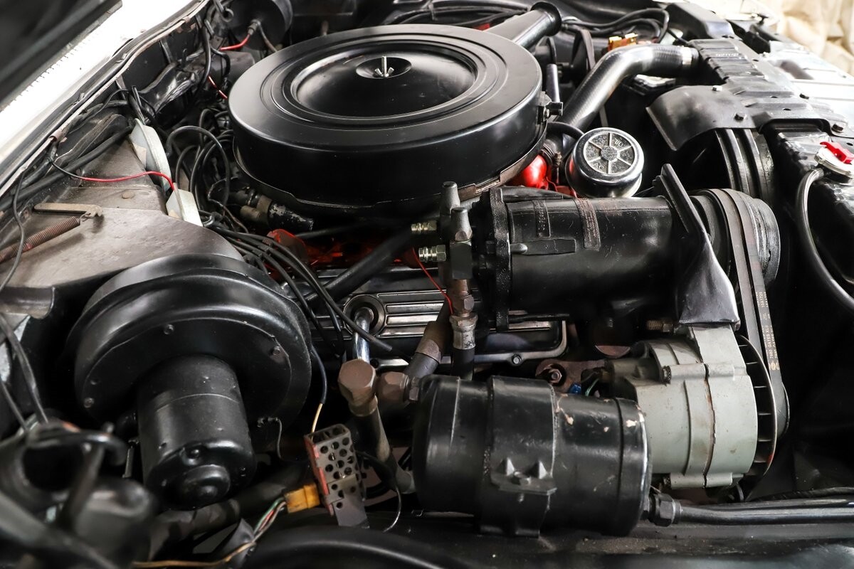 ENGINE COMPARTMENT: It has a powerful 394 motor making 345 horsepower. Everything looks stock, complete and proper. Features include factory air conditioning, power steering and power brakes.