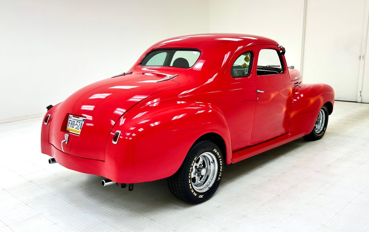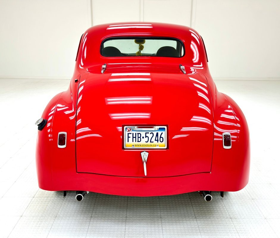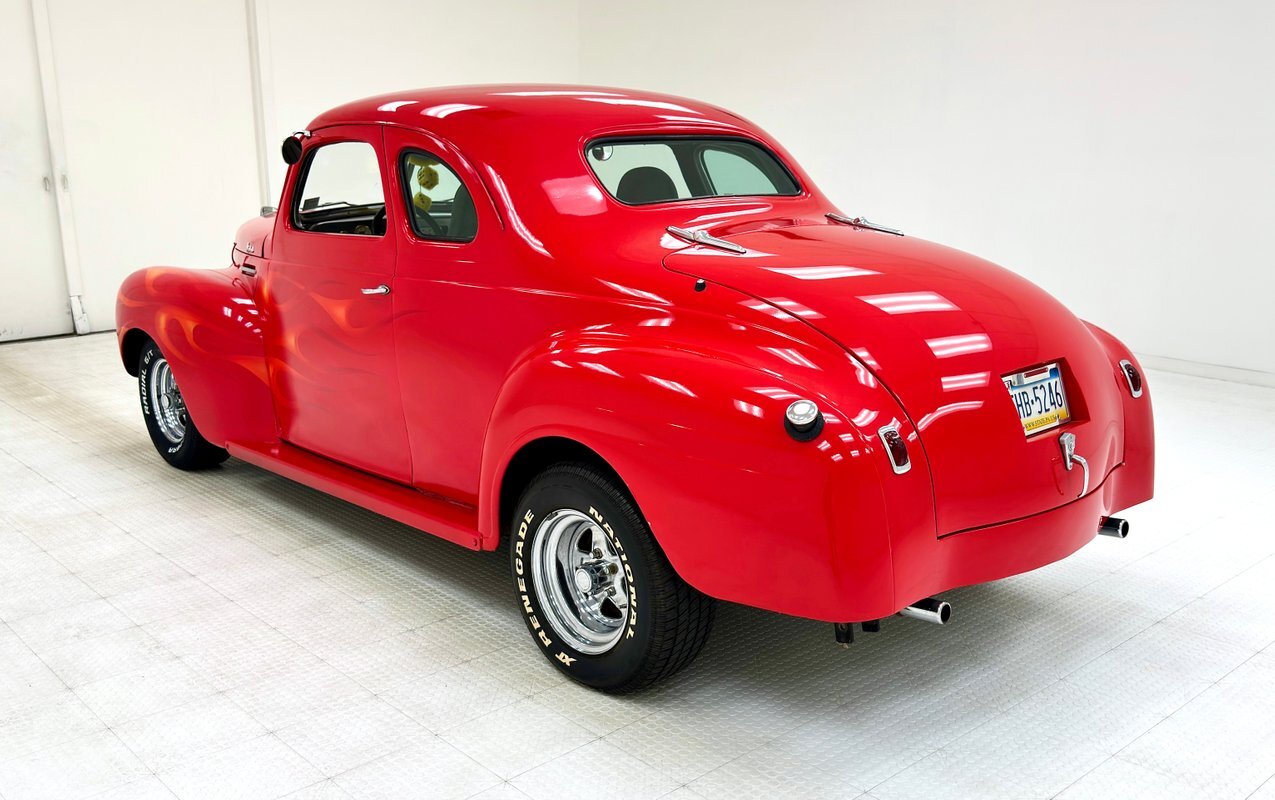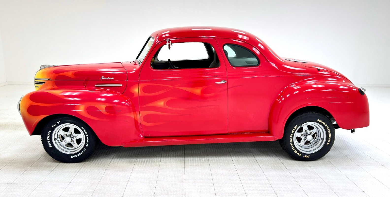 For consignment, a 1940 Plymouth Deluxe P10 Business Coupe, long retired from the sales workforce and now a textbook street rod with all the desirable ingredients. Flames on red paint? Check. Chrome wheels? Yep. A 350ci under the hood? Absolutely. It's been carefully maintained over the past 20 years and is ready for a new caretaker.