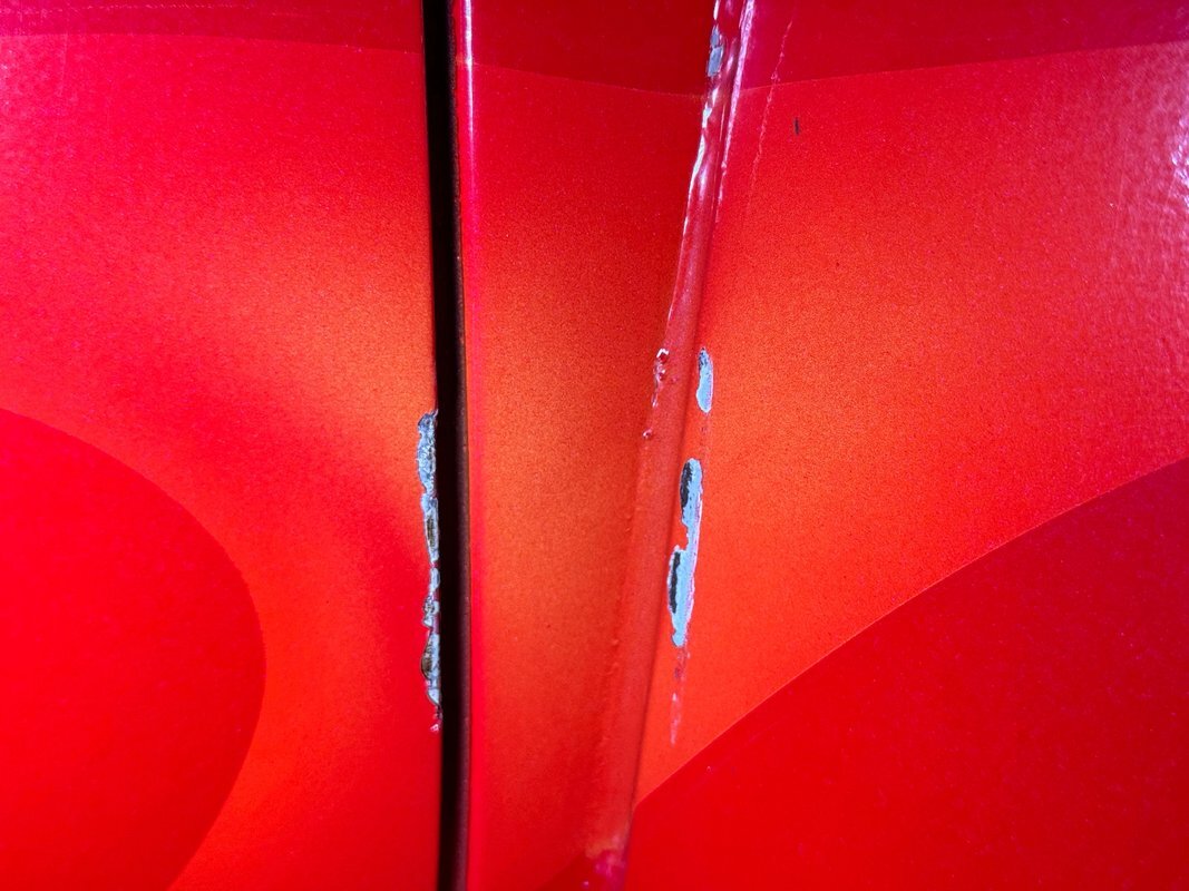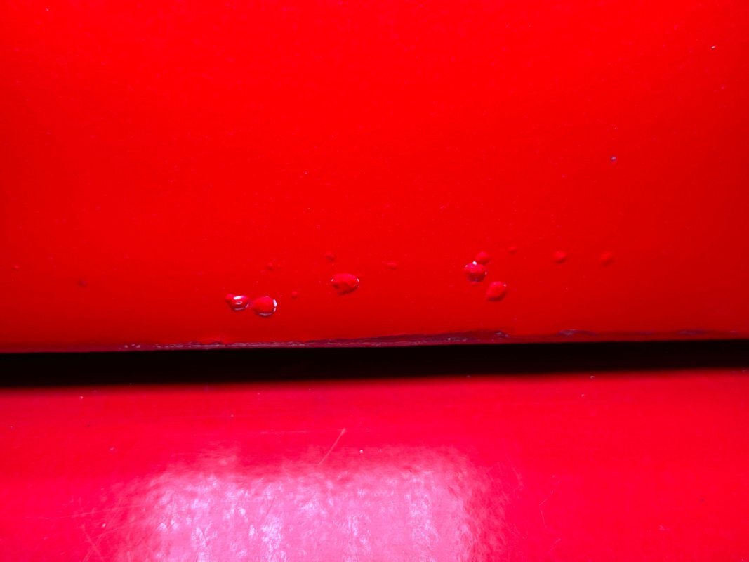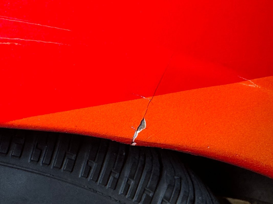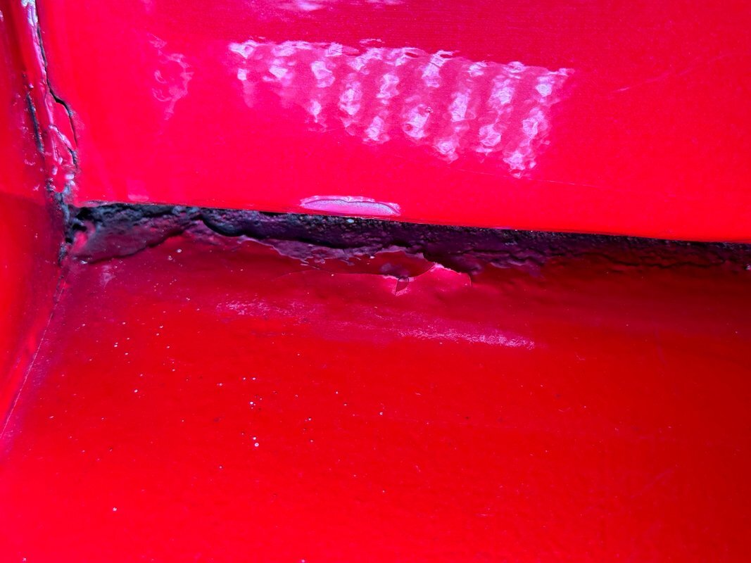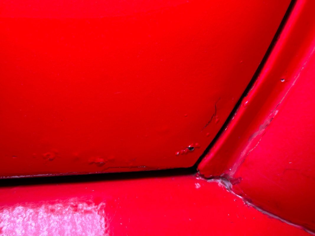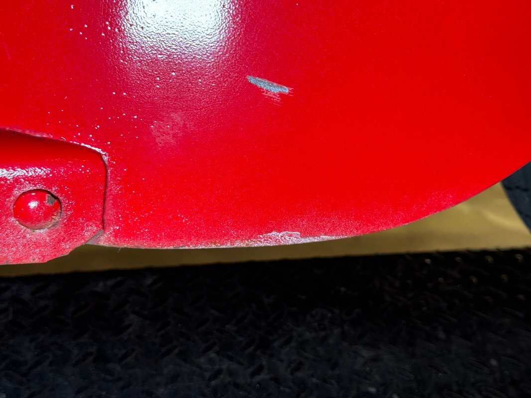 Based in Bright Red, the front of the car is on fire with painted flames that realistically flow from the bookend grilles and flow back over the wide front fenders and pointed nose, licking across the entire hood. The scripted Streetrod emblem on the hood is a nice touch and is underlined by the detail trim of the side vents. The enormous butt of this car is characteristic of business coupes and provides a large trunk lid and easy access to contents, all between the articulated fenders wearing simple taillights and no bumper. The red out back is briefly broken by the small rear window and is accented by the twin exhaust tips protruding from the bottom. The profile of the car indicates forward momentum as the entire car appears to lean forward and its raked stance enhances this street rod attitude. Staggered Jegs Sport Star wheels carry staggered size tires, a must for the consummate hot rod. Imperfections include some pitting of the door handles and hood ornament, bubbling in paint down low, some rust on the running board and nearby seam, scuffs, scratches, and chipped paint.