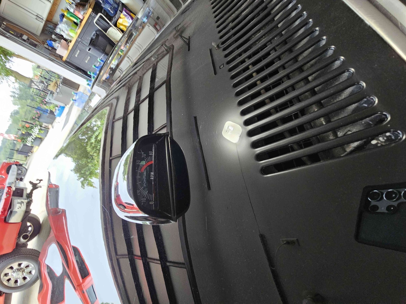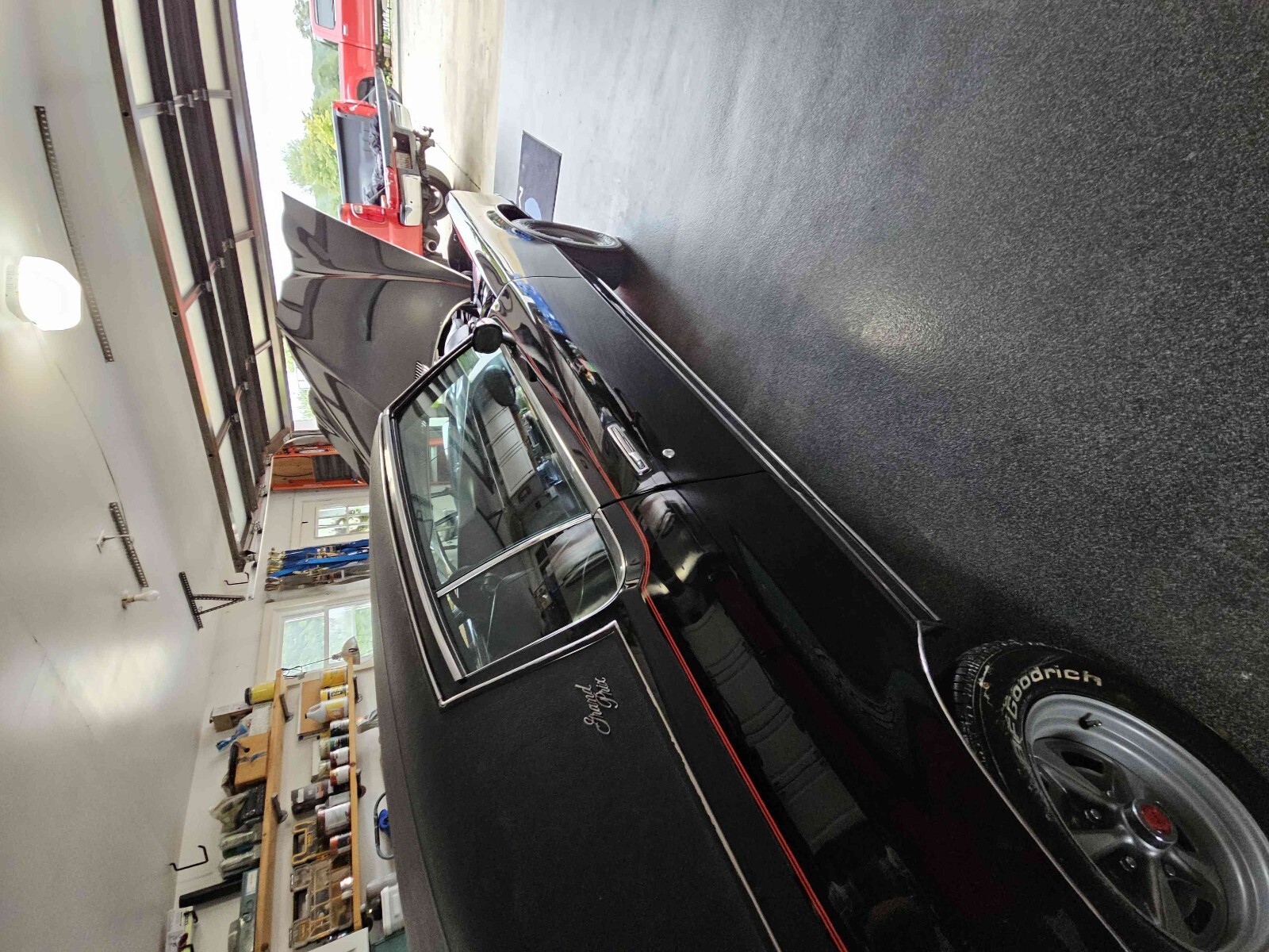The body on the Grand Prix is straight, the black paint job show no wave in the body work . There are 3 small little bubbles on the hood corner. The interior is newer with red carpet, The sale comes with a black carpet kit. No cracks in the dash , interior is excellent shape