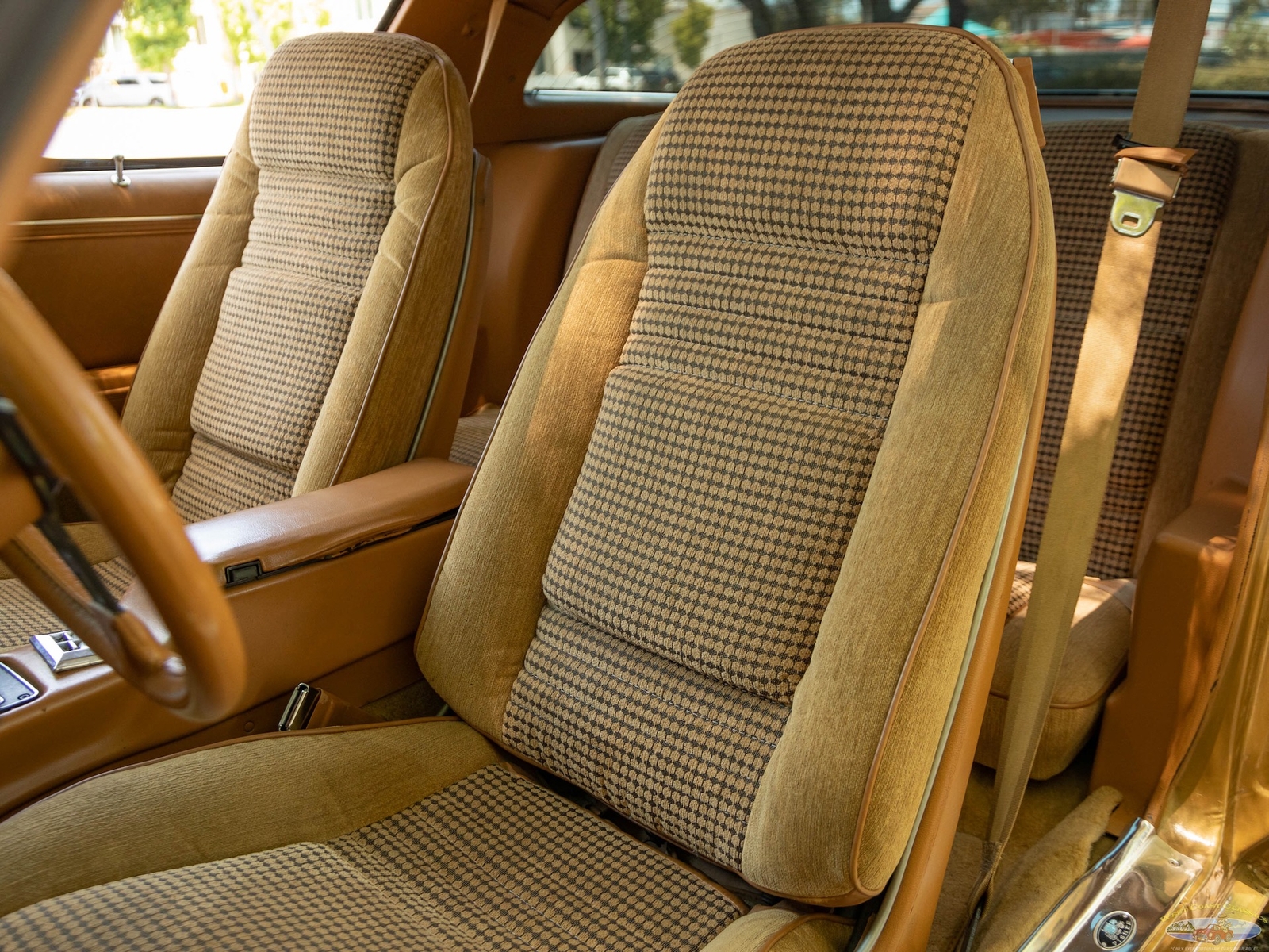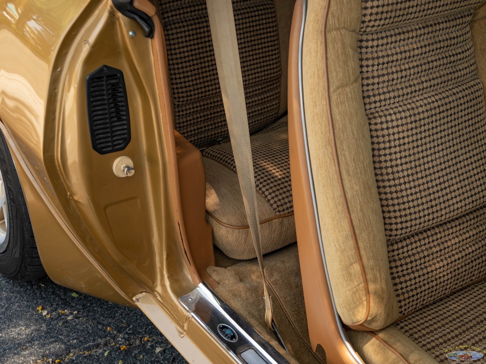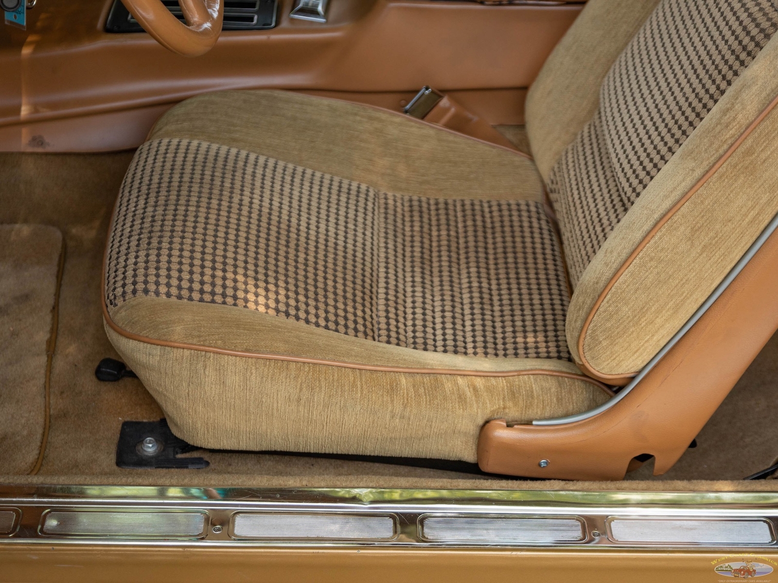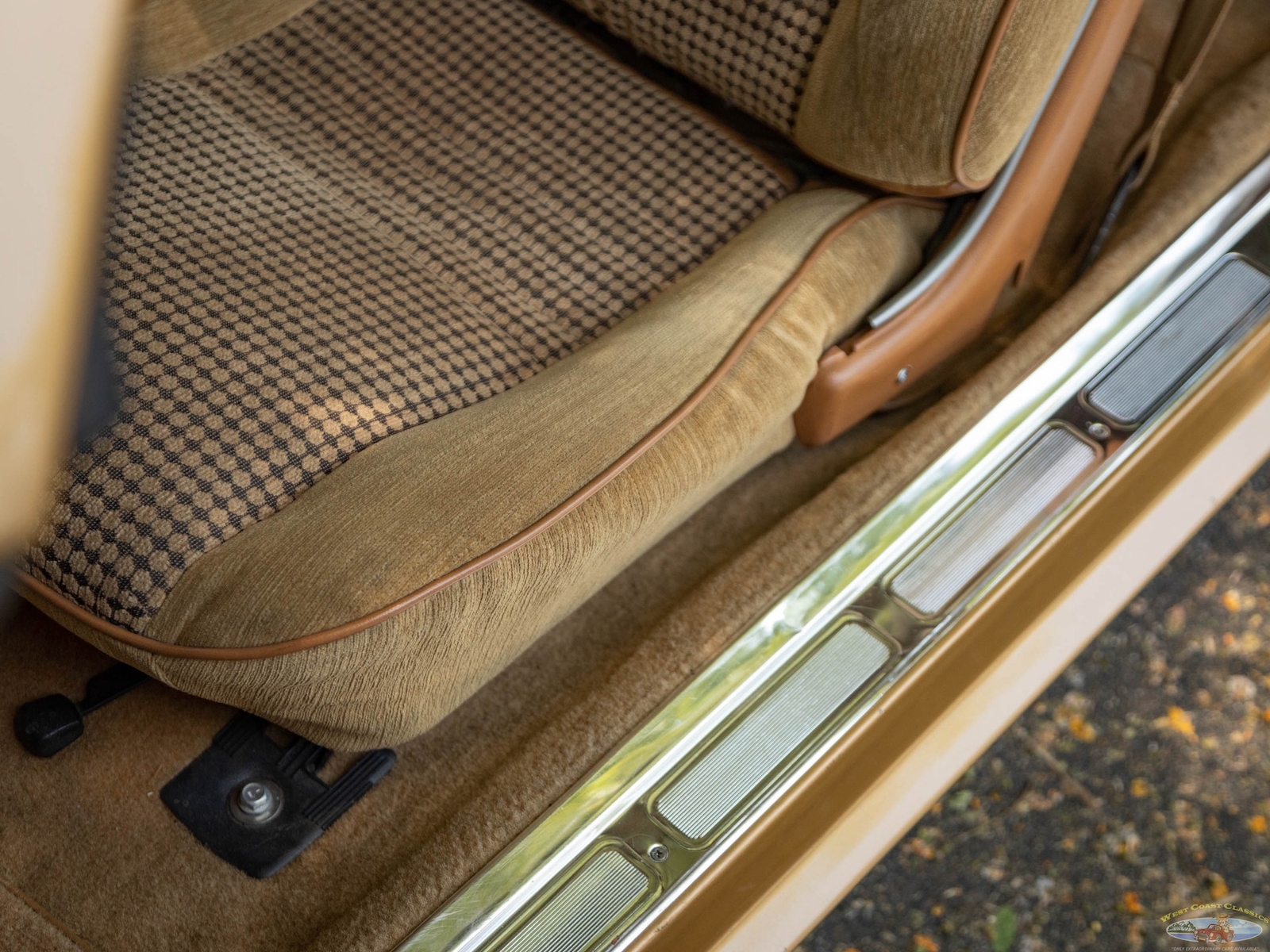 This particular car still boasts its original 'Solar Gold Metallic' factory color paint and 'Camel Tan' interior and it is still virtually flawless since its frame off restoration with no history of any accidents or paintwork and no rust anywhere! The original factory 'Solar Gold' color paint is in exceptional and still as new condition throughout and the 'Camel Tan' cloth seats are also still as when new with no signs of wear and every option is working as it should including the Vintage A/C.