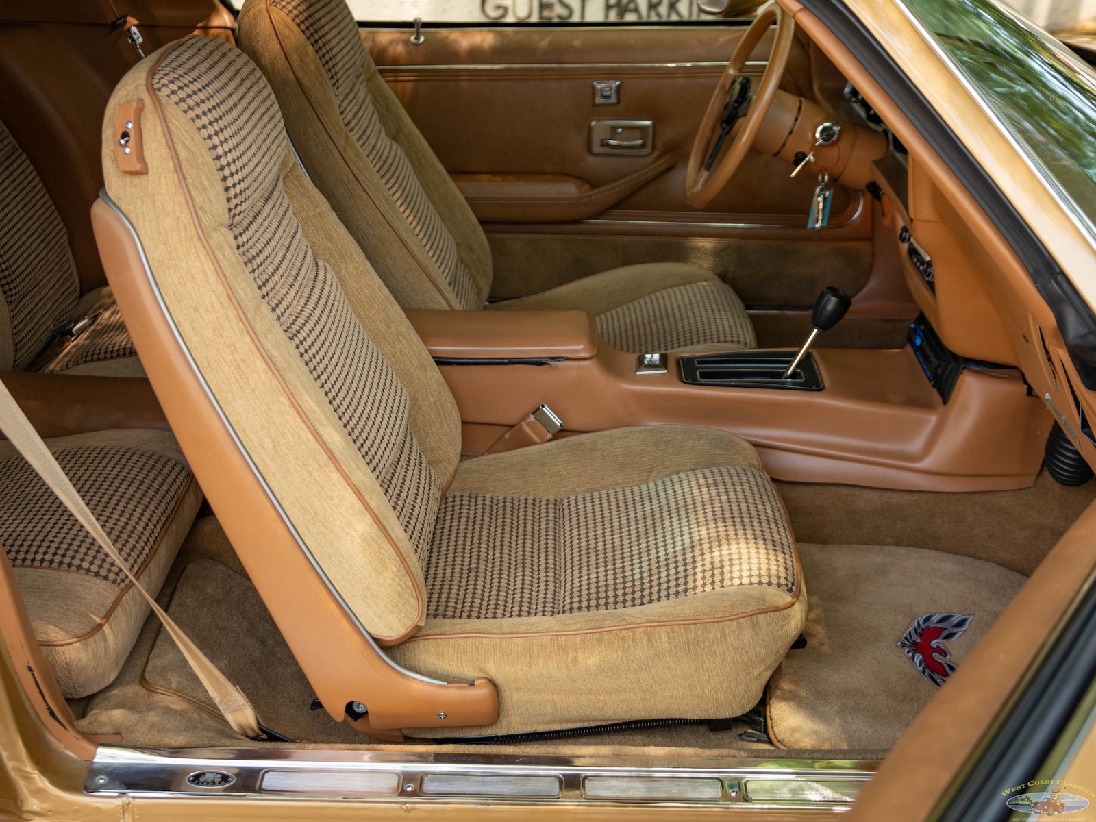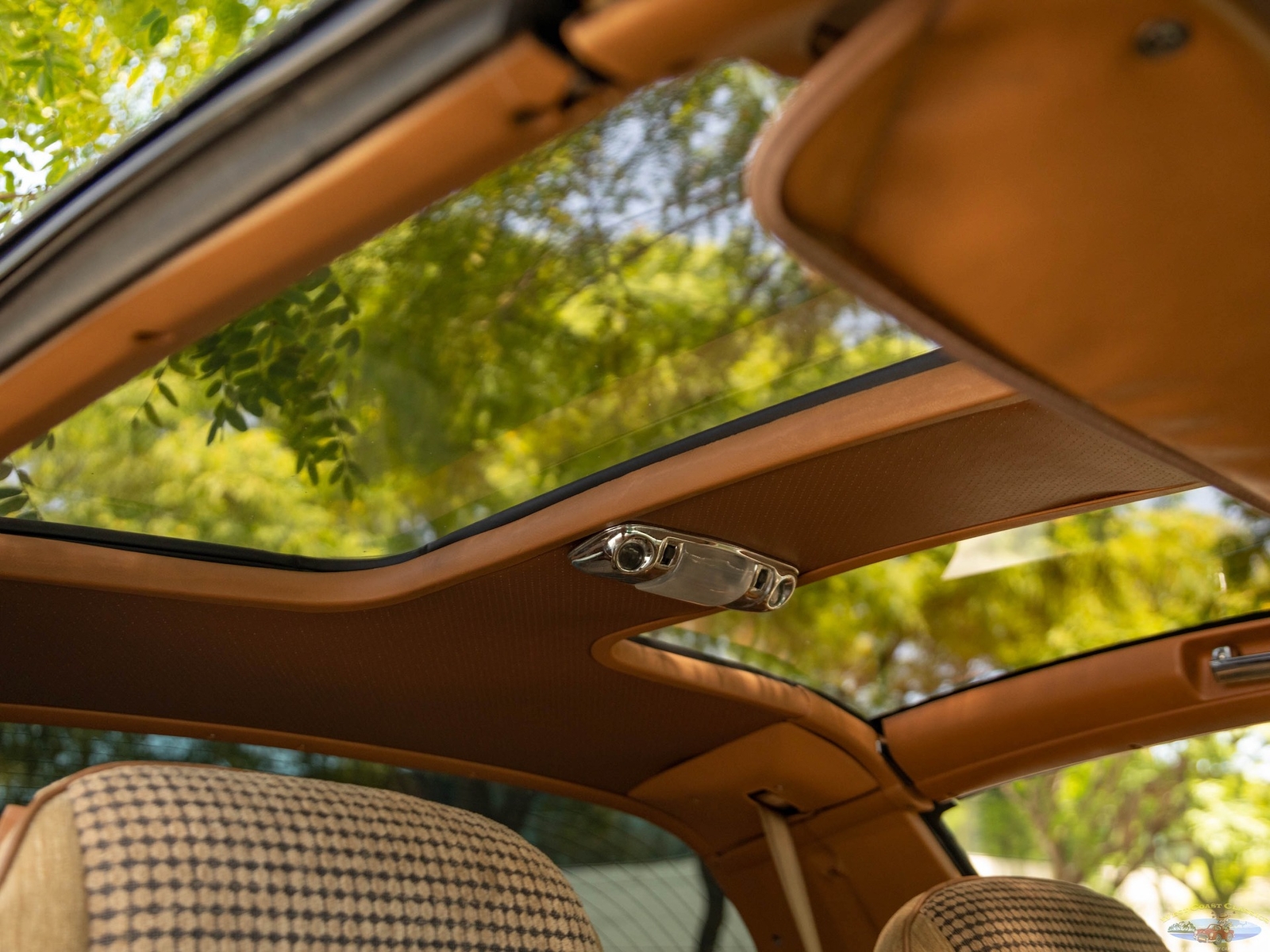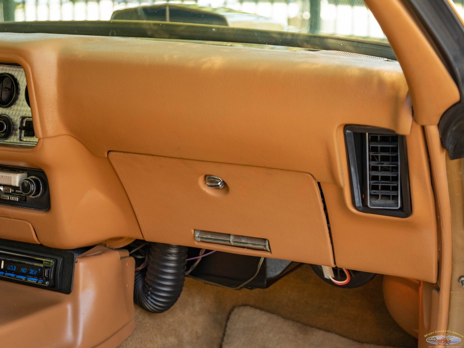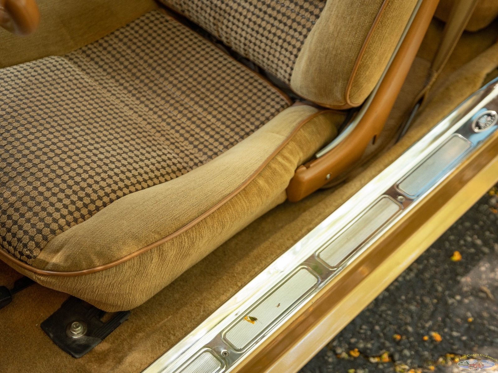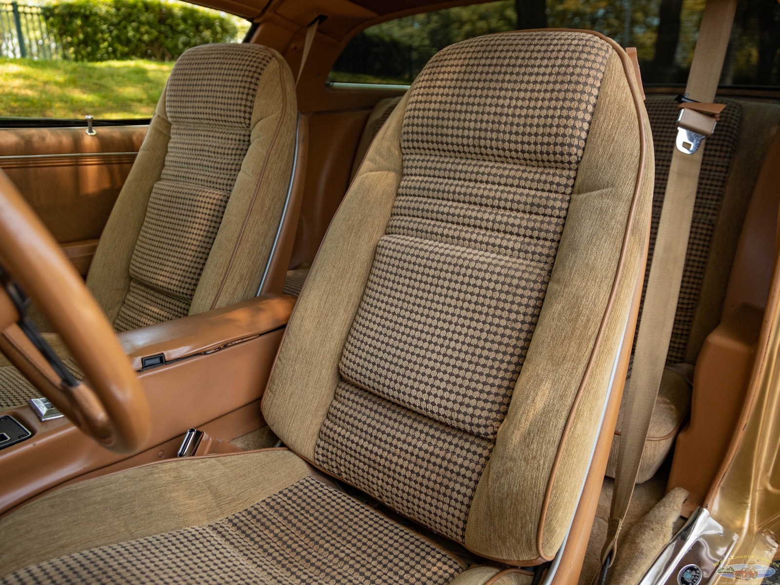 This particular car still boasts its original 'Solar Gold Metallic' factory color paint and 'Camel Tan' interior and it is still virtually flawless since its frame off restoration with no history of any accidents or paintwork and no rust anywhere! The original factory 'Solar Gold' color paint is in exceptional and still as new condition throughout and the 'Camel Tan' cloth seats are also still as when new with no signs of wear and every option is working as it should including the Vintage A/C.