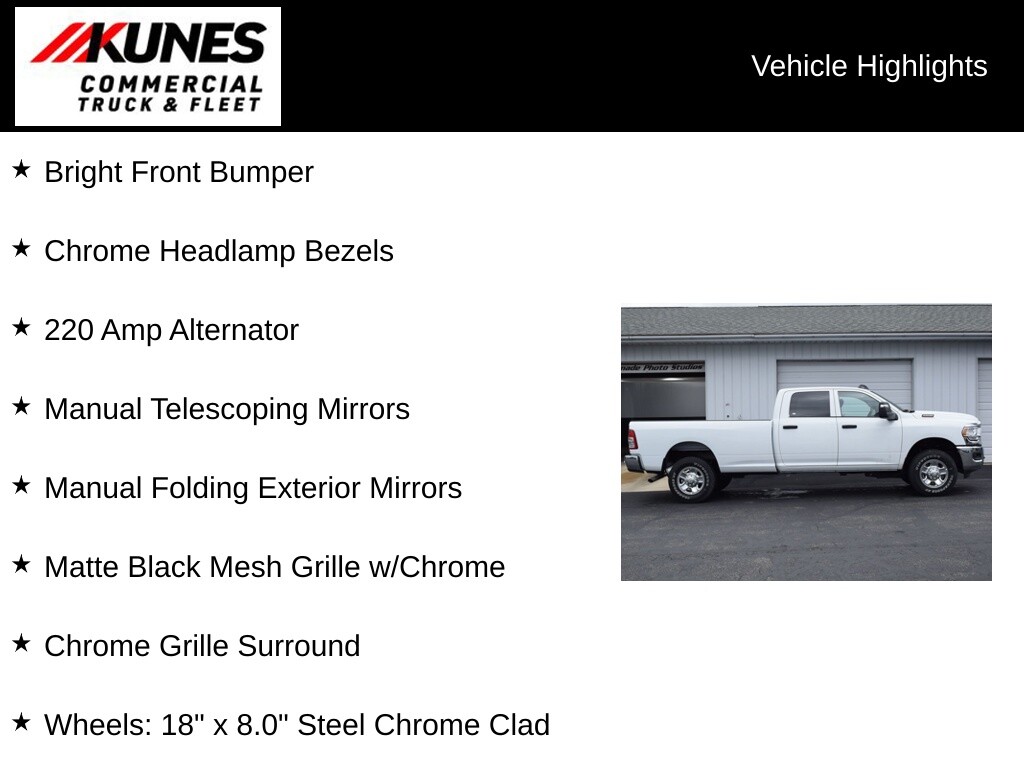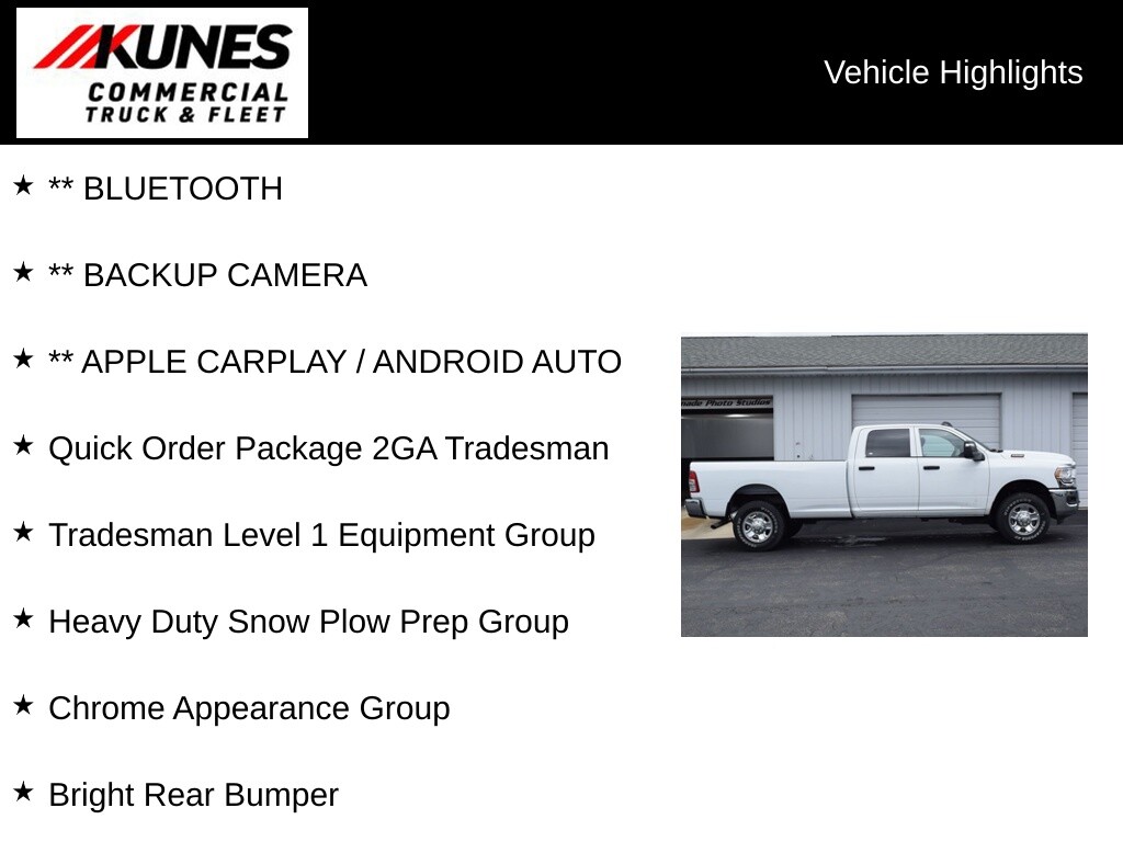 This 2024 2500 will do the work you need. Our commerical truck experts have over 30 years combined experience, here to provide the knowledge to get you the right truck for your needs. We pride ourselves on honesty and integrity, but please note that mistakes or misprints due to human error are possible. Find out why our dealerships have won DEALER OF THE YEAR a whopping 10 TIMES! Call, email, or live chat with one of our friendly sales professionals now to schedule your test drive! Price does not include tax, title, registration, and service fees. Price includes: $1250 - 2024 Midwest BC Bonus Cash. Exp. 07/31/2024 Price may not include dealer added accessories. Please call dealer for more info