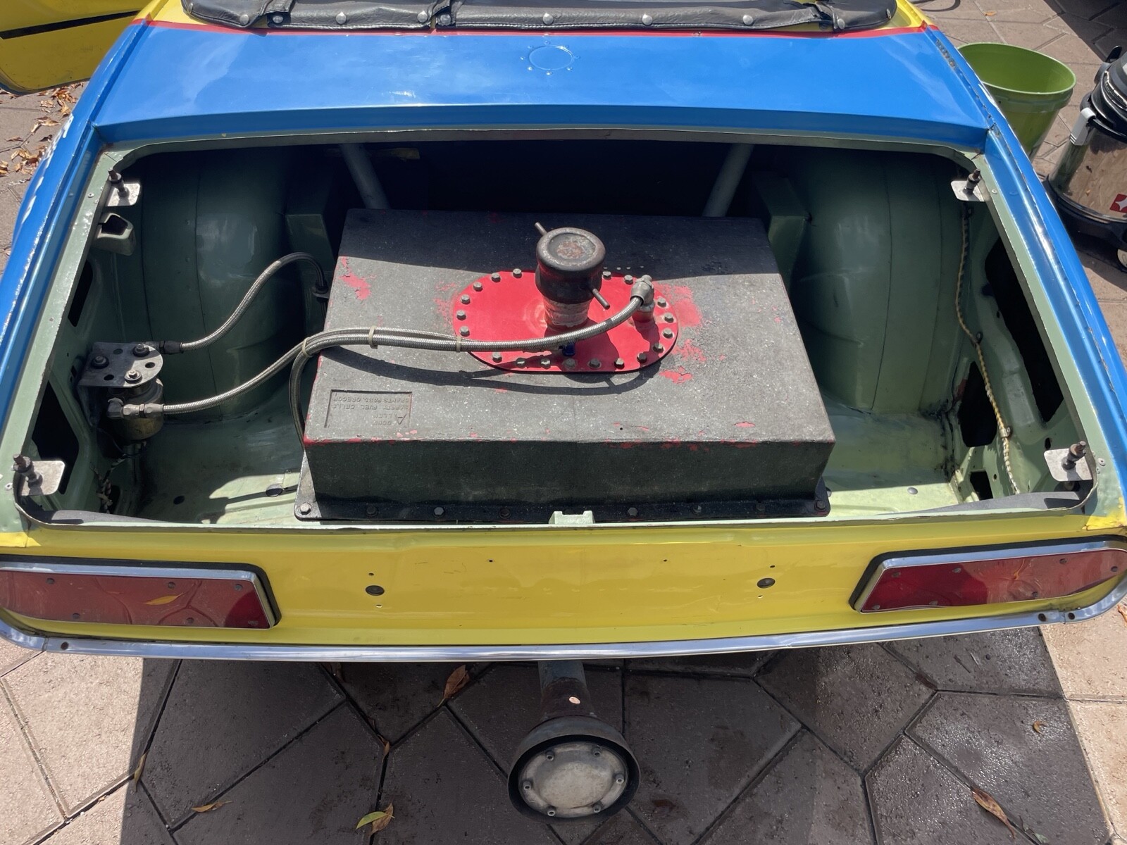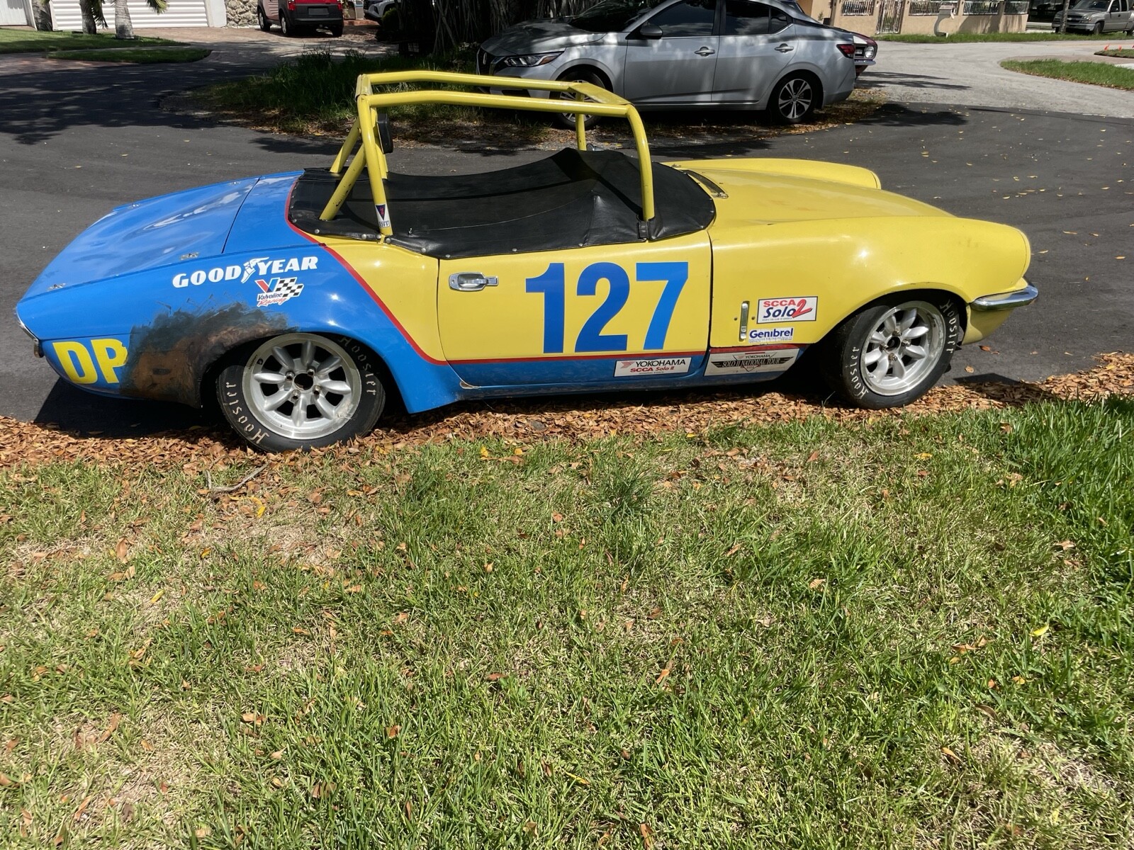 The car runs, shifts, drives and stops. I got it a few years ago but really don’t know much about it. I have a binder full of hand written notes, specs, and log books from the person that use to race it. I have never raced the car. Battery is not included. Hood and rear deck lid are fiberglass.
