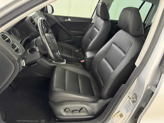 Inside the cabin, the Tiguan Wolfsburg Edition offers a spacious and comfortable environment with high-quality materials and premium finishes. The Wolfsburg Edition trim level includes features such as leatherette upholstery, heated front seats, a panoramic sunroof, and a touchscreen infotainment system with smartphone integration.