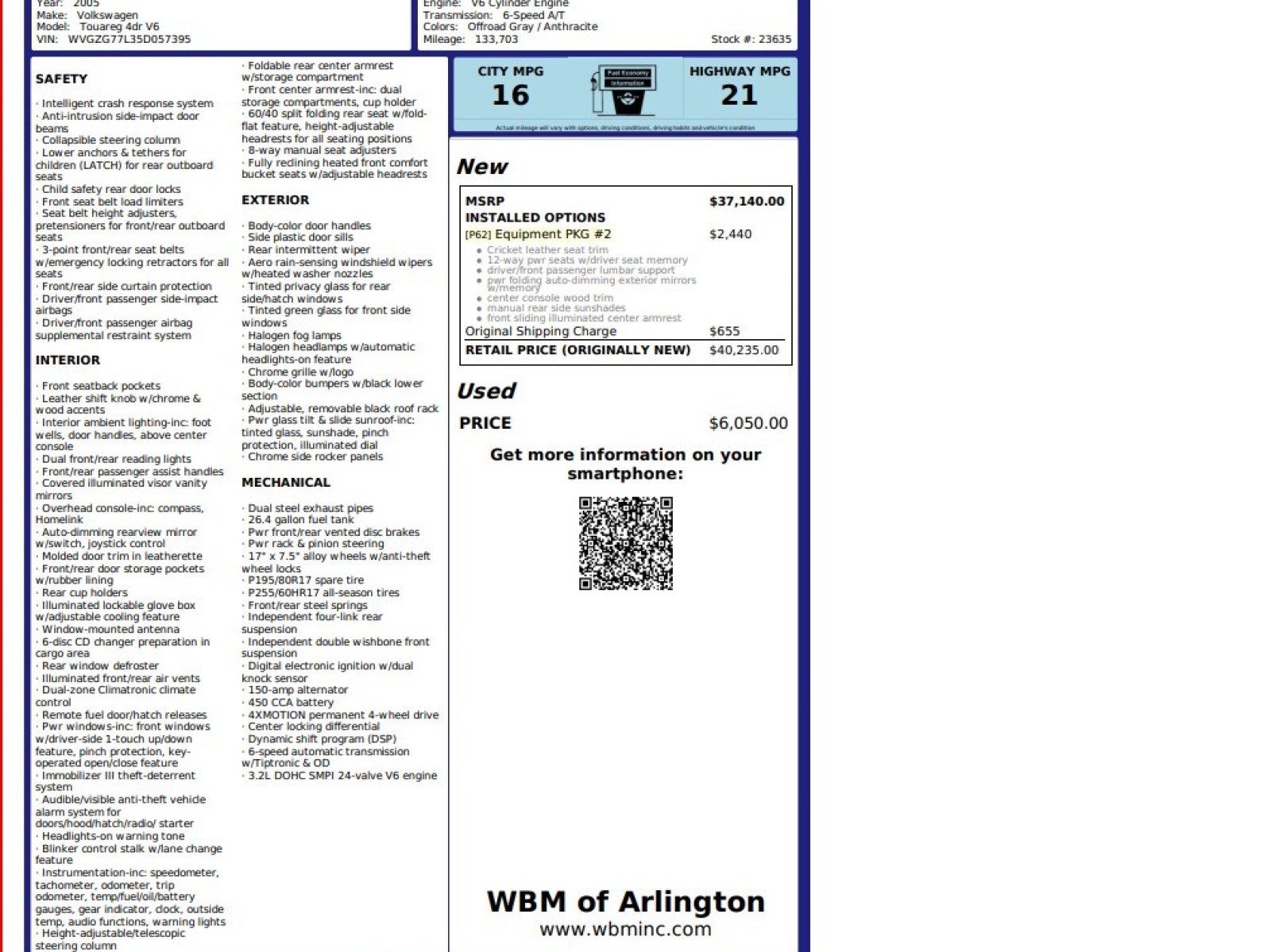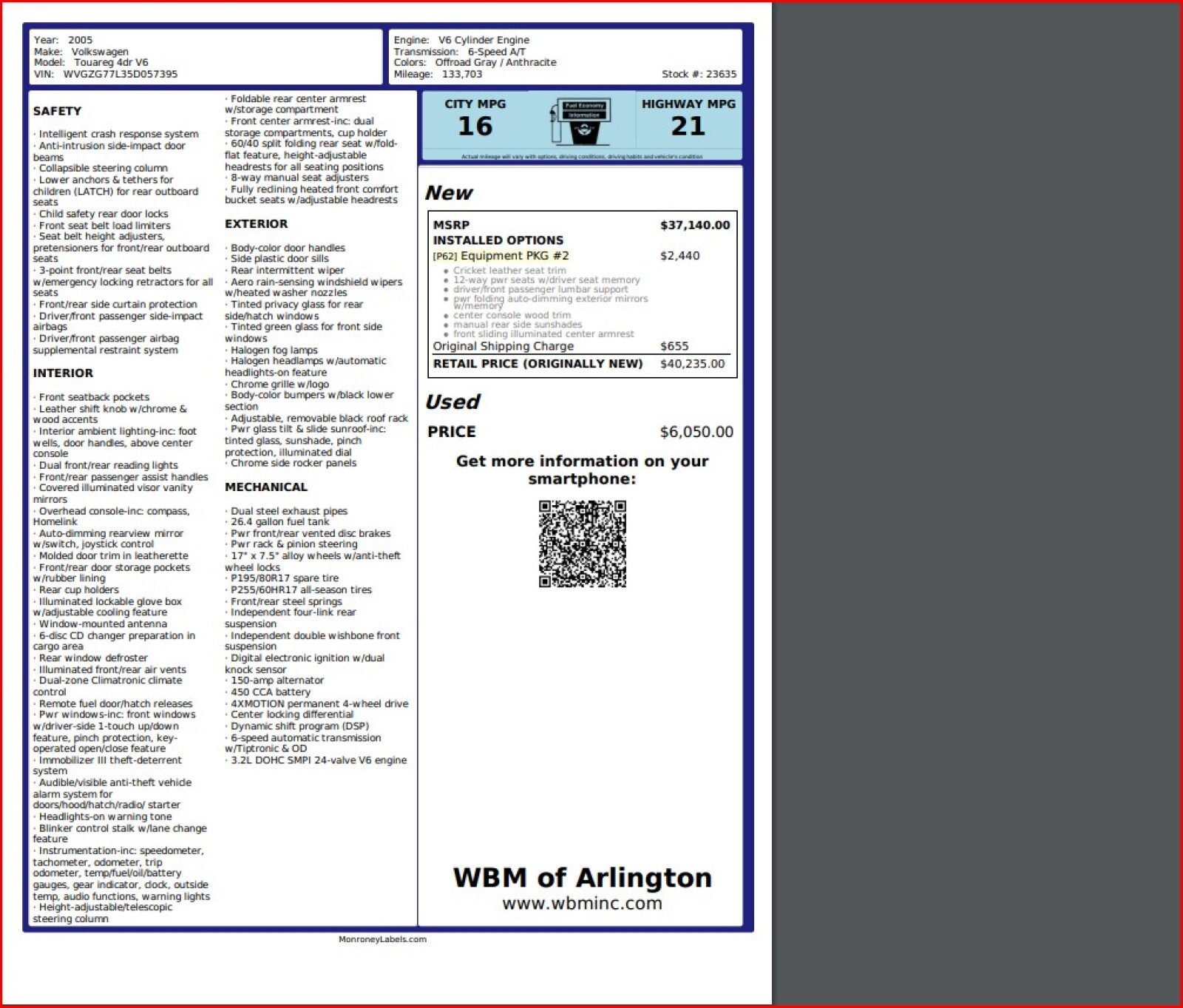 4. Every vehicle sold by WBM of Arlington goes through an 88 point mechanical and a 32 point cosmetic quality control inspection by our team of experts.