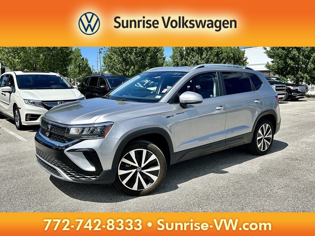 2023 Volkswagen Taos 4D Sport Utility Silver 8-Speed Automatic with Tiptronic 1.5T SE Clean CARFAX. Odometer is 2890 miles below market average! FWD 1.5L I4 Turbocharged DOHC 16V LEV3-SULEV30 158hp
