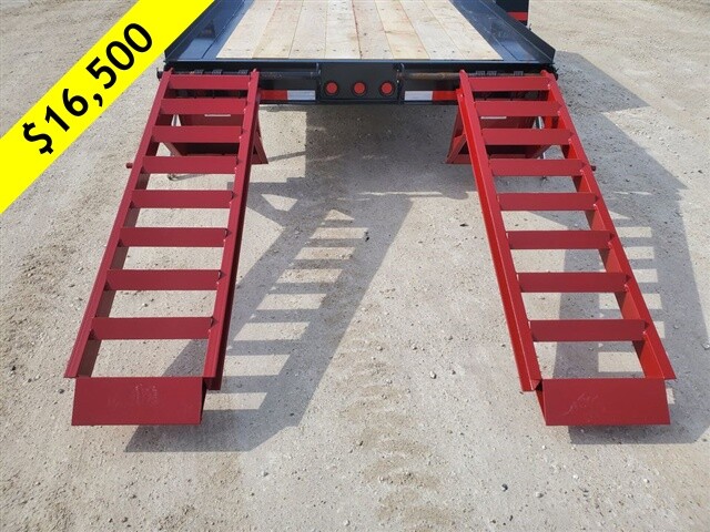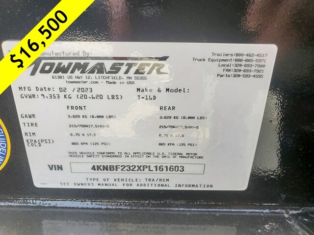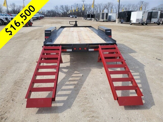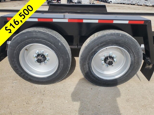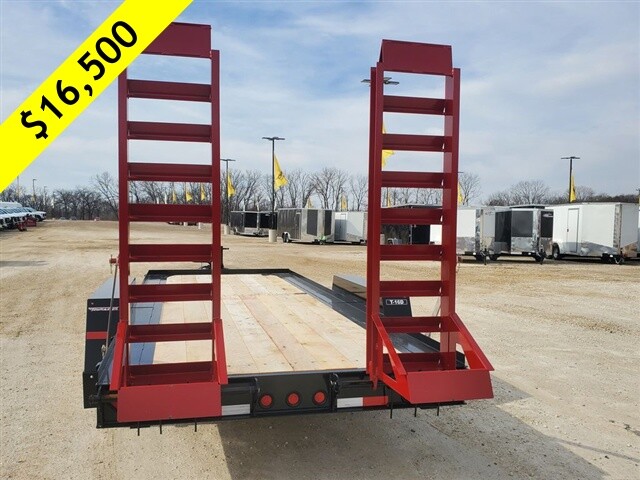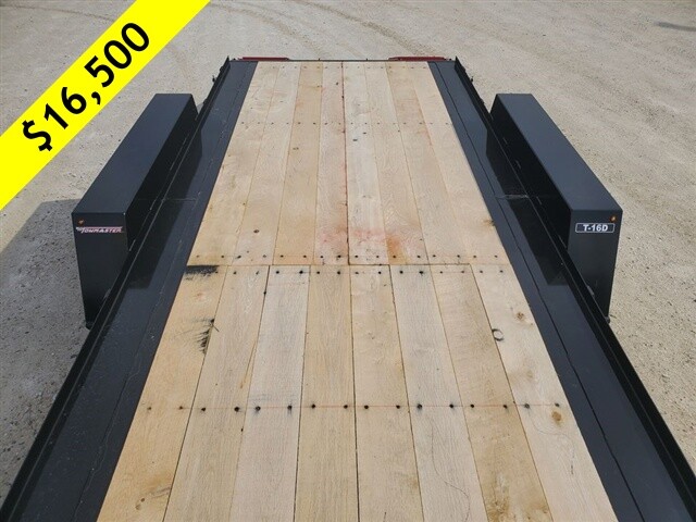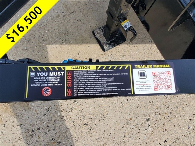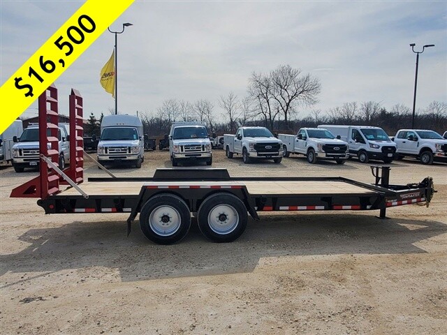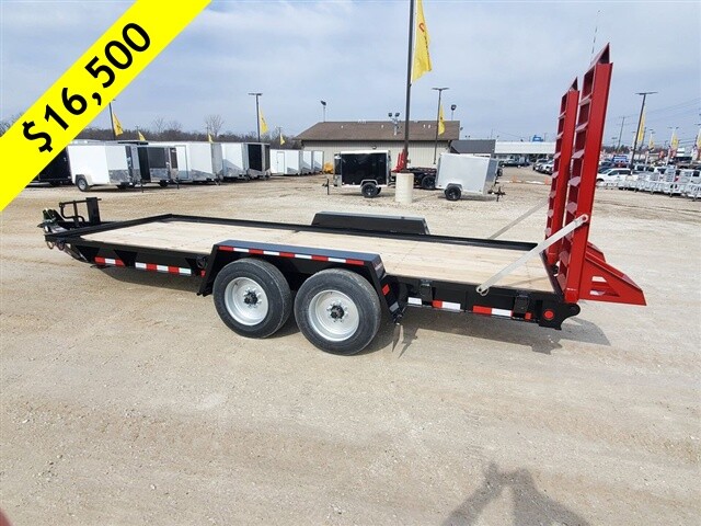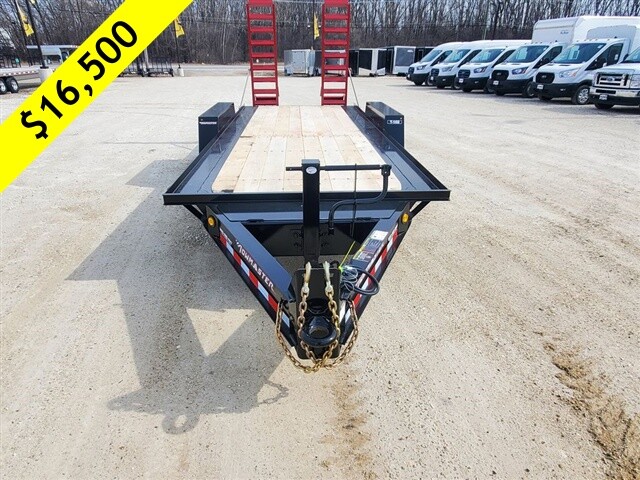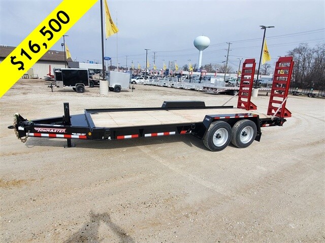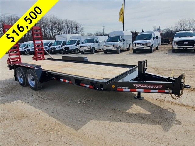 2023 Towmaster T-16D 18' Length. 16,000lb payload. GVWR 20,600lbs. 24'4 overall length. The Towmaster T-series large drop-deck trailer is designed for hauling mid-sized to large equipment. This model is built on a stout cold-formed I-beam tongue and main frame and features a 3-inch lip around the deck. The oak wood deck is supported by 3-inch I-beam crossmembers and Dexter Torflex rubber torsion axles provide a smooth tow. This trailer includes a bolt-on parking jack, LED lights, sealed wiring harness, spring assist ramps, and a solid bar ramp hold-up. Adjustable hitch height. RV electrical plug. Weather resistant sealed modular wiring. Grommet mounted LED lights. Registration holder. Rust inhibiting primer. Durable, rust inhibiting top coat. Die-cut UV resistant vinyl decals. D.O.T. approved conspicuity tape. Mud flaps. Adjustable ramp width spacing. Trailer color: Equipment black. Ramp color: Equipment red.