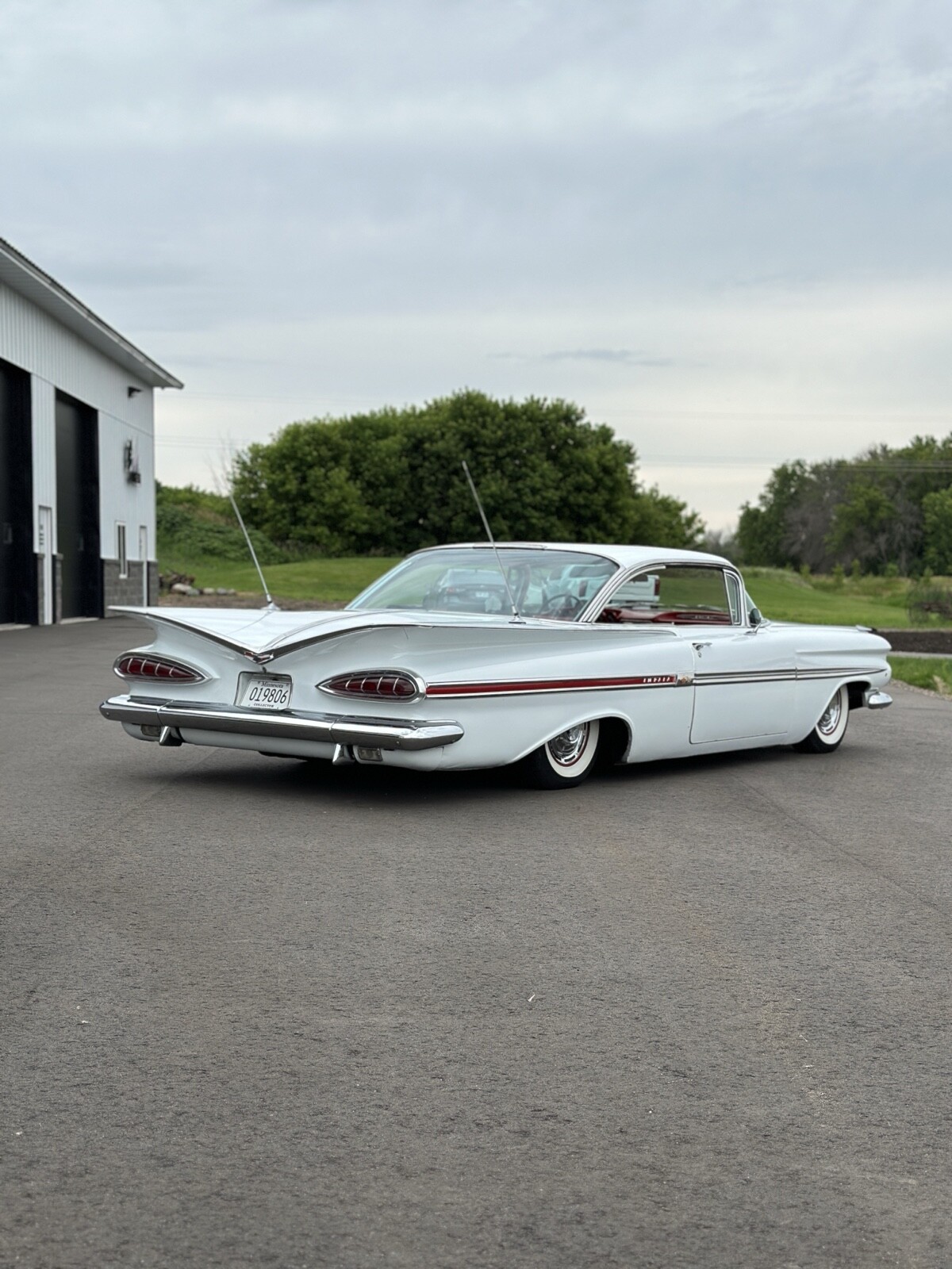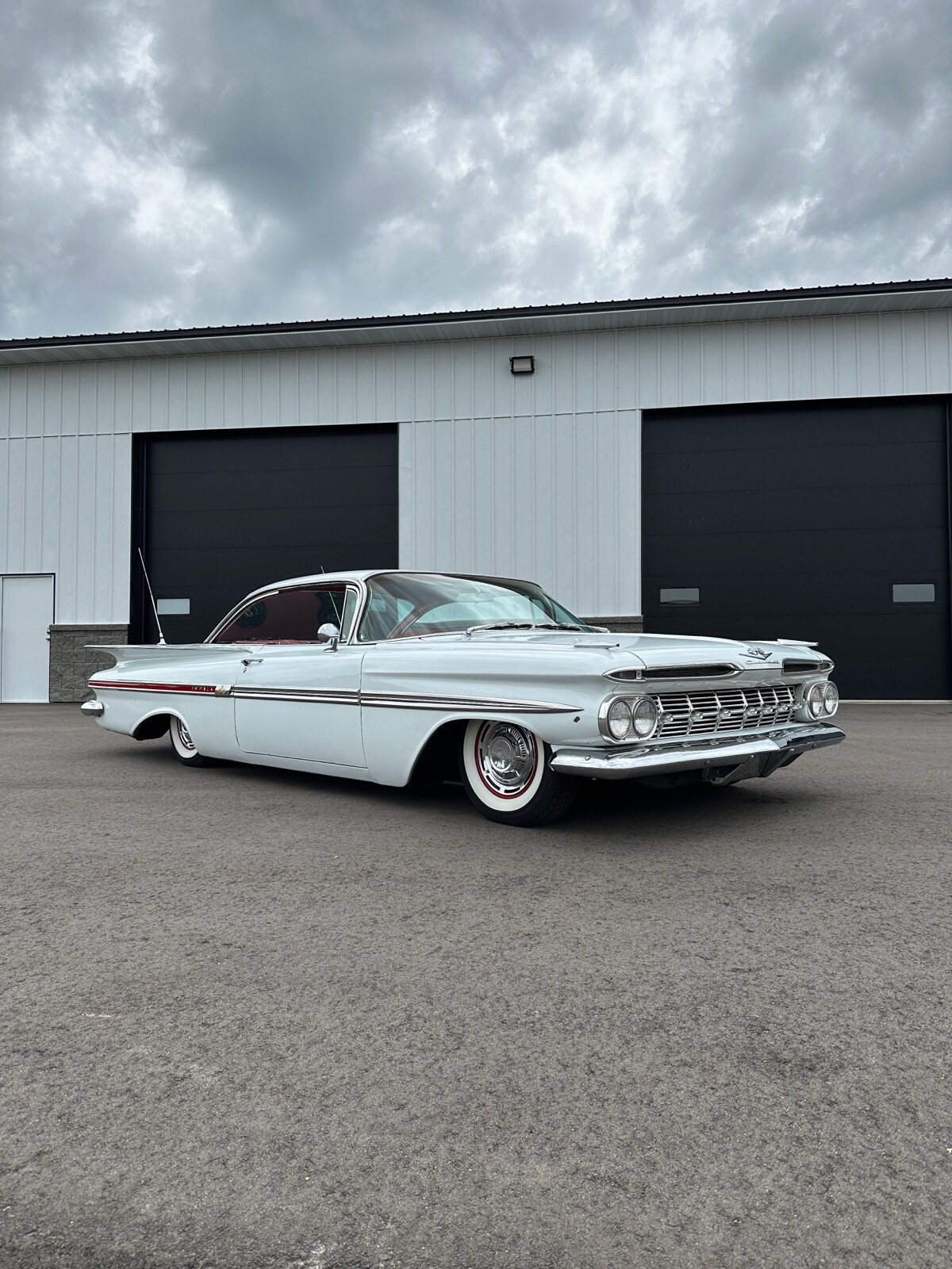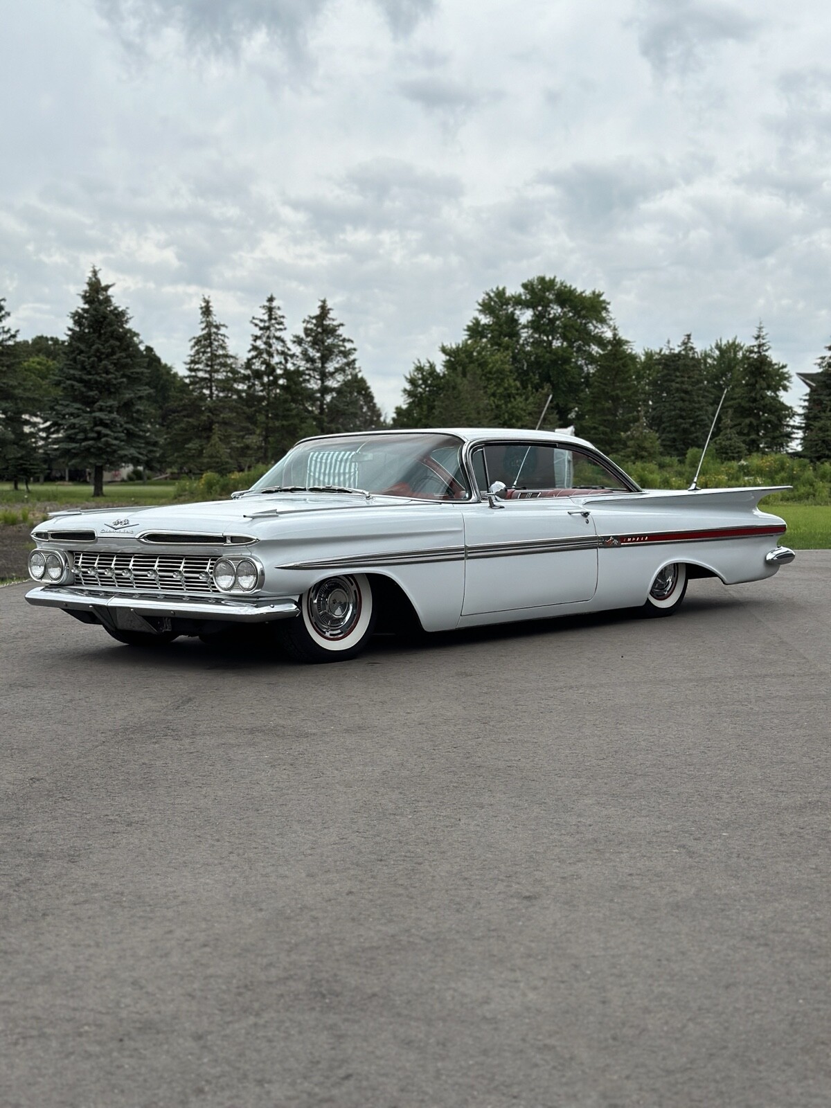 1959 Chevrolet Impala 2 door hardtop. GM performance 350, turbo 350 transmission, power steering, new brakes, new 4 corner air ride, new Coker wide whites. Beautiful interior, older re spray driver quality paint, beautiful stainless, chrome and glass.