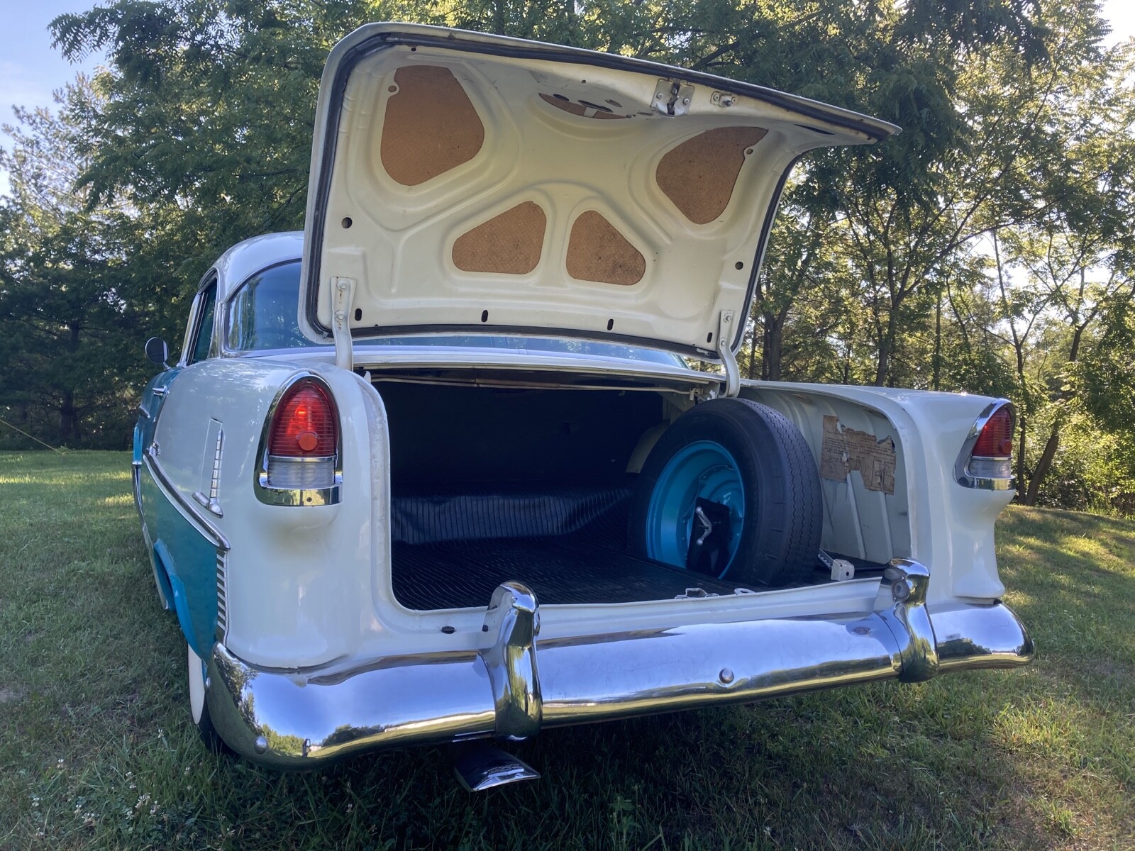 235 6cyl one rebuild, and powerglide. One repaint, original interior with plastic seat covers. Spent 47 years with one family in California. Power steering and brakes. Runs, drives. Nice clean original 55. Buyer is responsible for all shipping and pickup fees. Cashiers check only Must clear my bank before pickup. Non refundable $500 deposit in 24 hours. In as is condition
