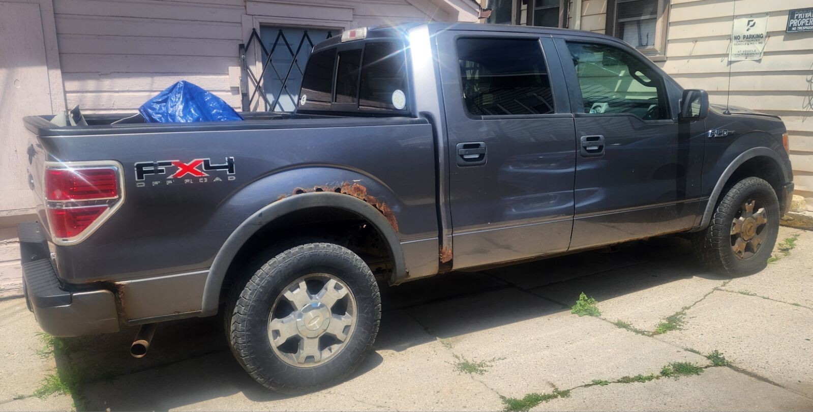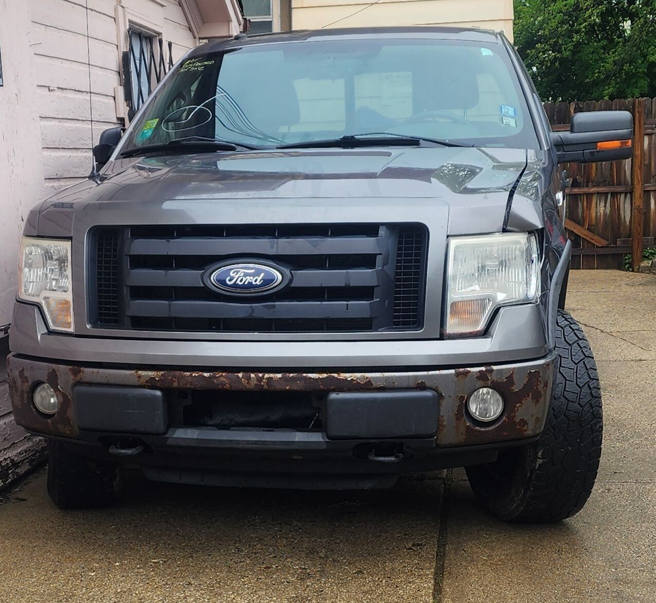 I have a 2010 Ford F-150 grey exterior and black interior. It does have some rust around the wheel wells and it does have some mechanical issues. It runs a bit rough but the spark plugs, ignition coils, timing chain, and oil has been changed. Overall the body is decent and it needs a little bit of work.