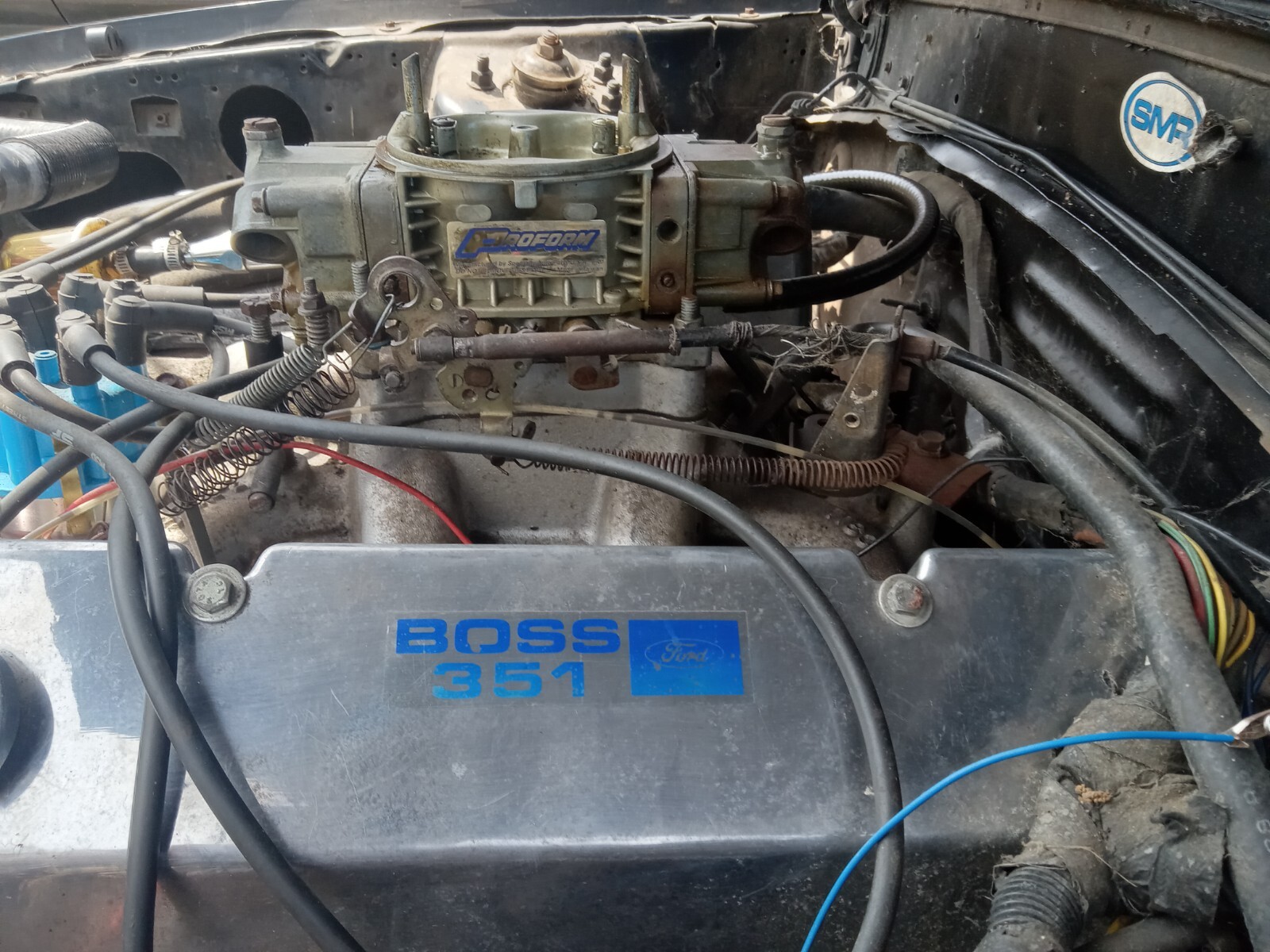 Someone was turning this car into a drag car when I bought this rolling chassis. It has sub frame connectors and a newer 8.8 rearend. The interior is stock and good shape.The stock seat belts on dr side are cut,but racing belts go with the car. The body is in good shape for 36 years old. See pics. The Boss 351 clevor motor has 5k . It started with 351w heavy duty truck block(85) bored .030 over. Manley forged 10 to 1 pistons . Lunati Voodoo Camshaft kit. Hydraulic cam 262/268 and 499/522 on 108/112 lobe center street/strip. Harland Sharp 1.7 roller rockers on 71 Cleveland heads, Manley 2.19 intake and 1.65 exhaust. Transmission is a World Class 5 speed with a new (0 miles) Hays clutch and pressure plate and flywheel. Stock exhaust manifolds are the only exhaust on the car,but 2 sets of cleveland headers go with the car.This mustang has set in the barn for last 2 years. Do to heath conditions , I am selling it. The car runs good and quick, but I have only taken it up and down the street. The car will have to be trailered