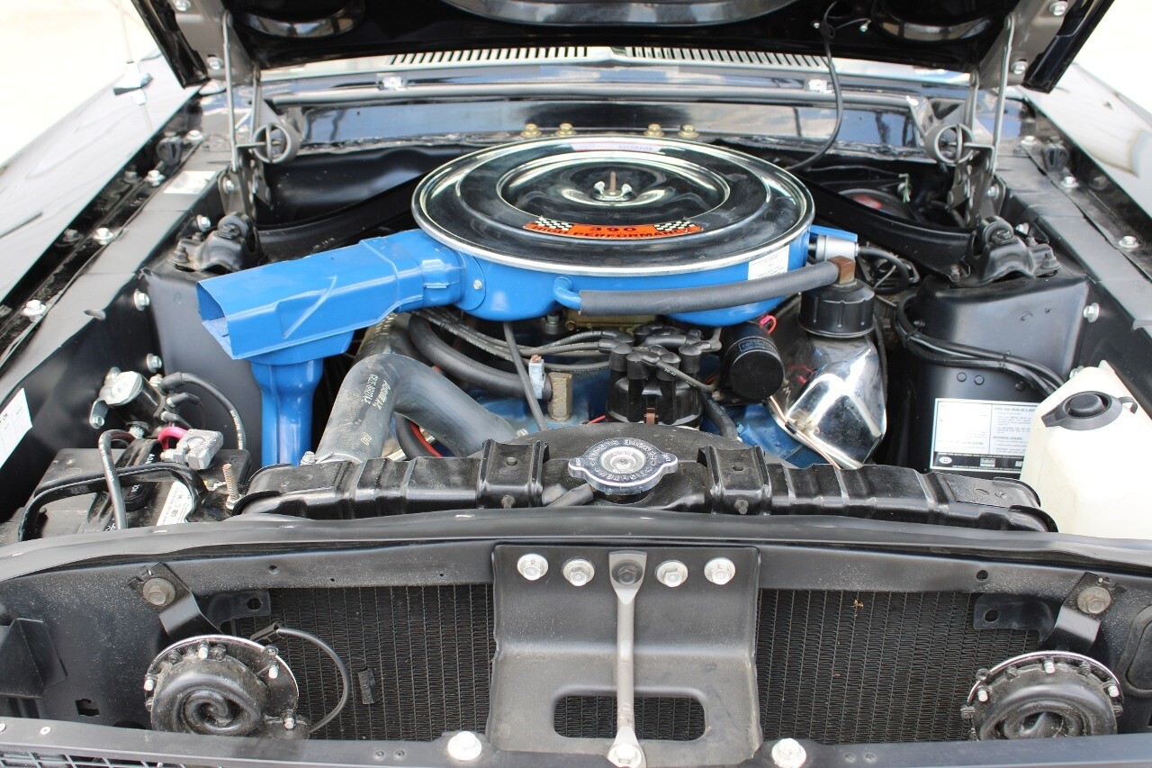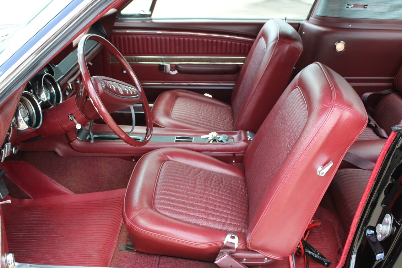 This stunning vehicle is presented in a sleek A Color Code, Raven Black exterior, nicely complemented by a vibrant Red vinyl interior, making it a true head-turner both on the road and at car shows. At the heart of this Mustang is the robust 390 CID V8 engine, paired with a smooth 3 Speed automatic transmission. This powerful combination ensures that the Mustang delivers an exhilarating driving experience, whether cruising down the highway or accelerating from a standstill. The inclusion of power brakes provides enhanced stopping power, adding a layer of confidence and control to your driving experience.