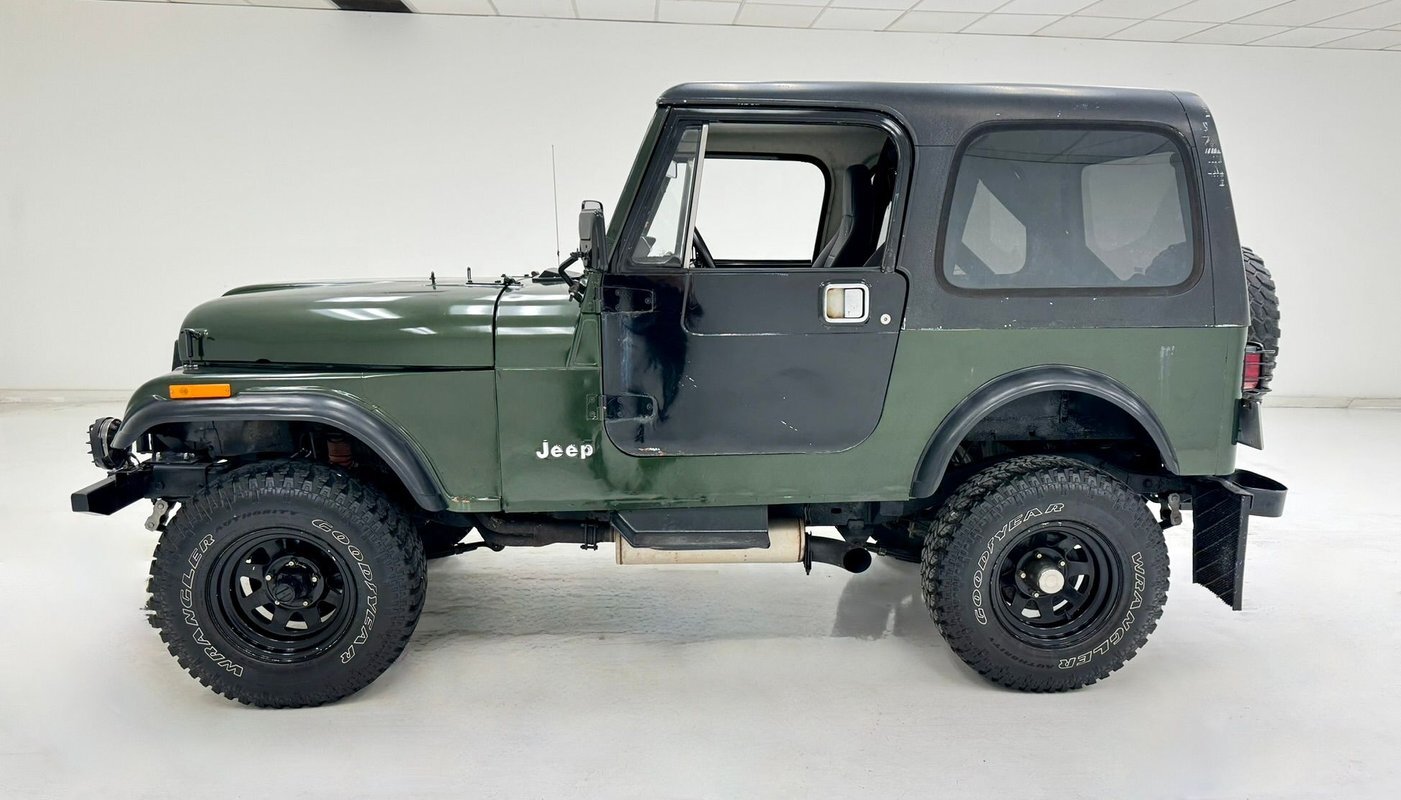 For consignment, a CJ, (Civilian Jeep), version 7 from 1983. This green meanie has a hankering for some real off-roading and is fully equipped to do so with add ons to immerse yourself into. Here we go! Climb every mountain... Let's get a little mud on the tires.