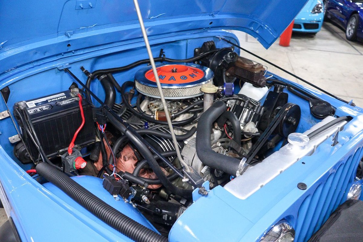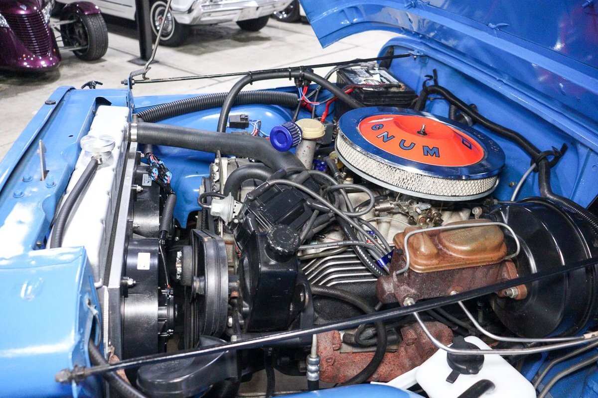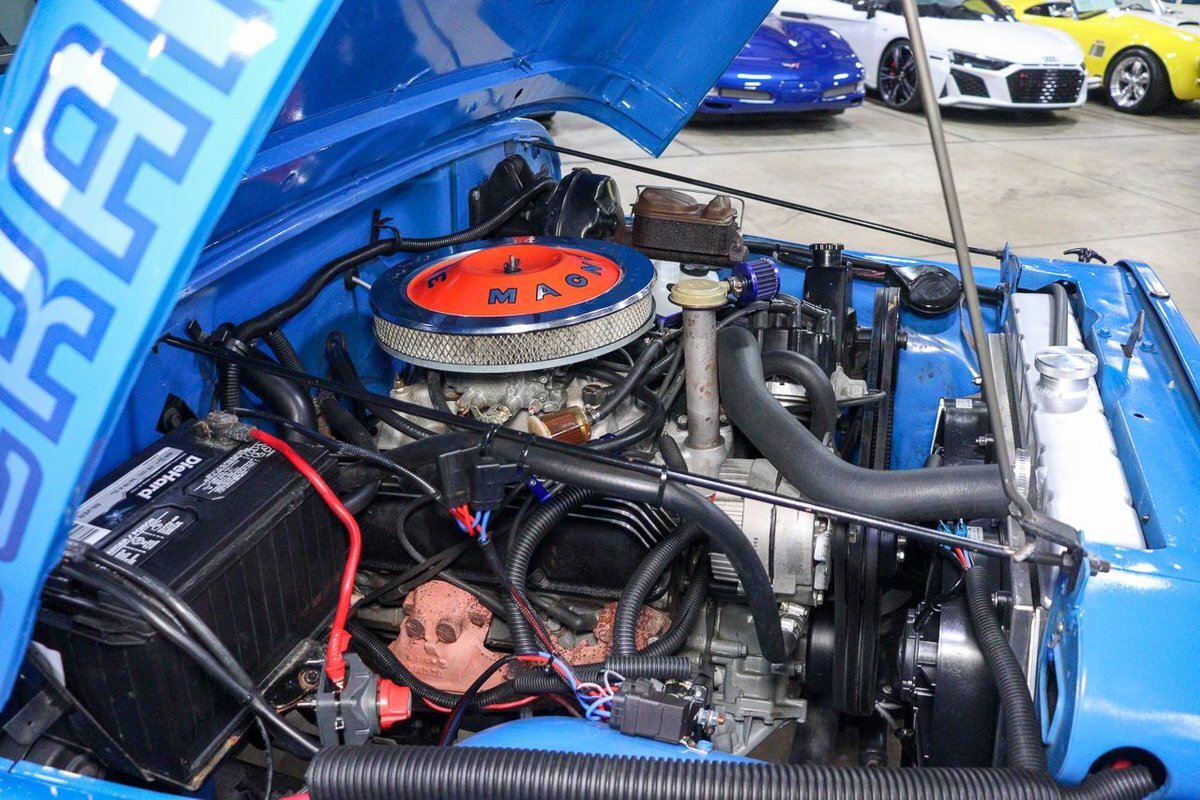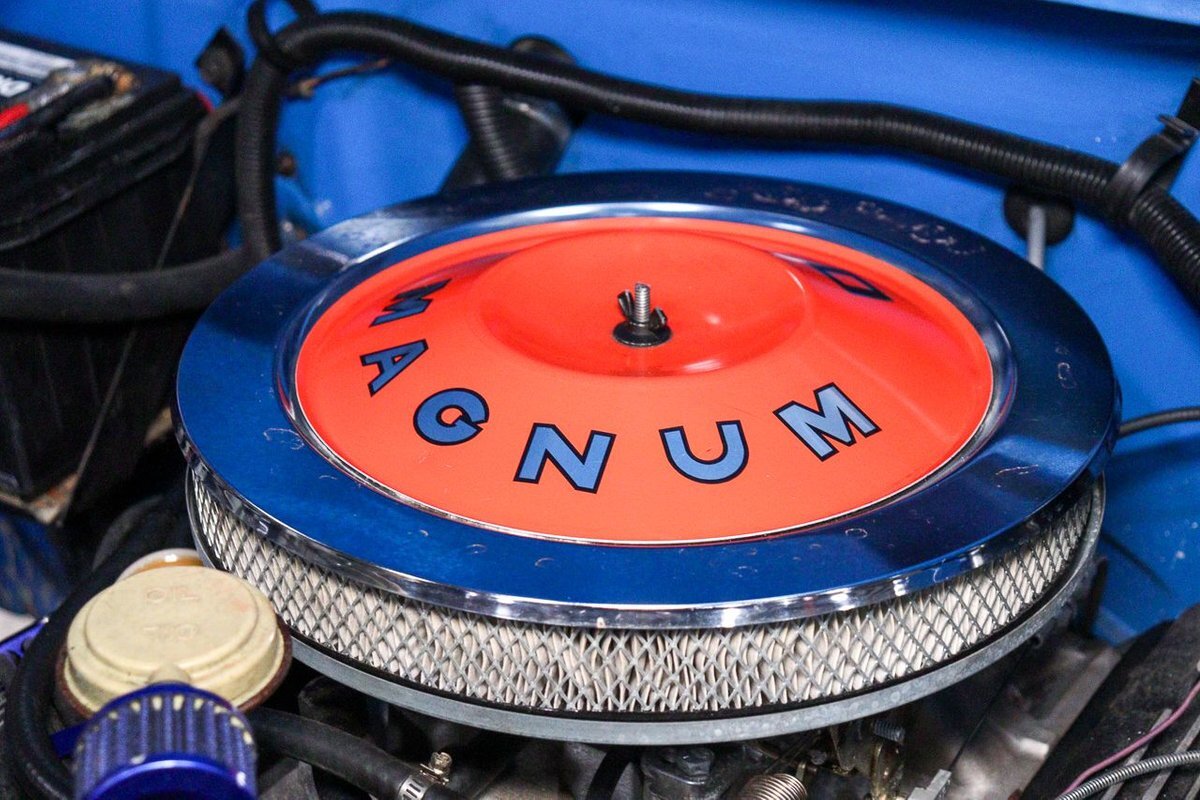 finished in Montana Blue over Charcoal Grey interior. It is powered by a 360 cubic
