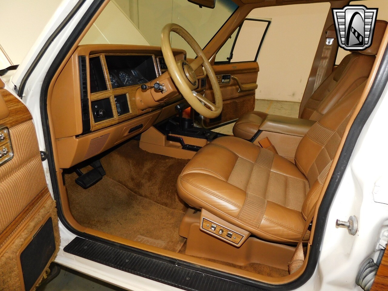 The tan leather interior not only adds a touch of luxury to the vehicle but also offers durability and comfort. The 1986 Jeep Wagoneer is a great blend of style, performance, and convenience, making it a great choice for anyone looking for a classic SUV.