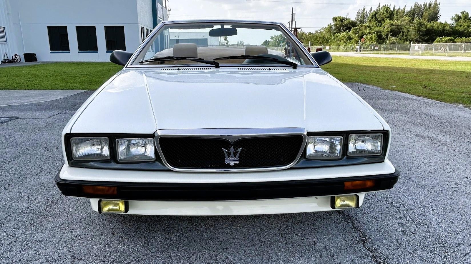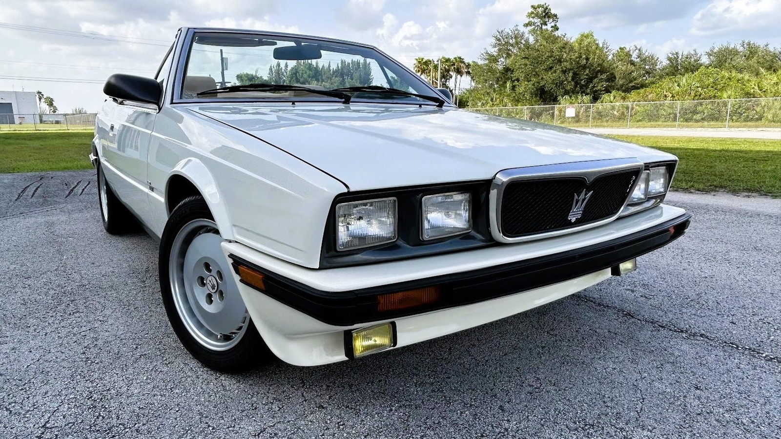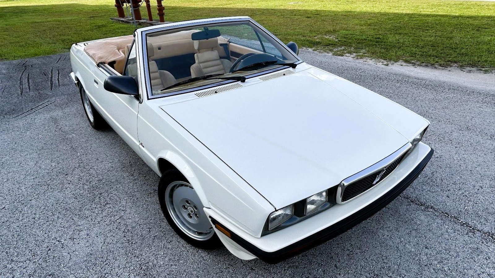 Up for sale is a super rare 7k mile original 1989 Maserati Biturbo Spyder owned by the same owner for 22 years in his privat car collection! Powered by a twin-turbocharged 2.8-liter V6 mated to a five-speed ZF manual transmission. It is finished in Swan White over beige leather upholstery and is equipped with a convertible soft top, fog lights with amber lenses, 15” alloy wheels, power windows, and air conditioning. This Biturbo Spyder shows 7k miles and is offered with manufacturer’s literature, a tool kit, a clean Carfax report, and a clean Florida title! Equipped with a convertible soft top, a beige top boot, a front spoiler, fog lights, Zagato badging, and quad exhaust outlets. The front bumper cover is said to have been repainted. Call me 305-542-5662 Rare opportunity!