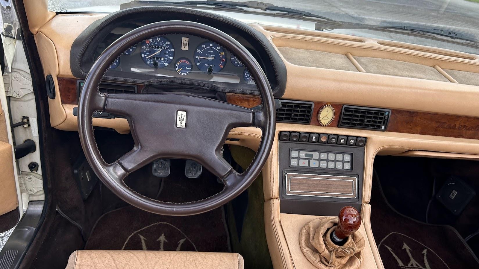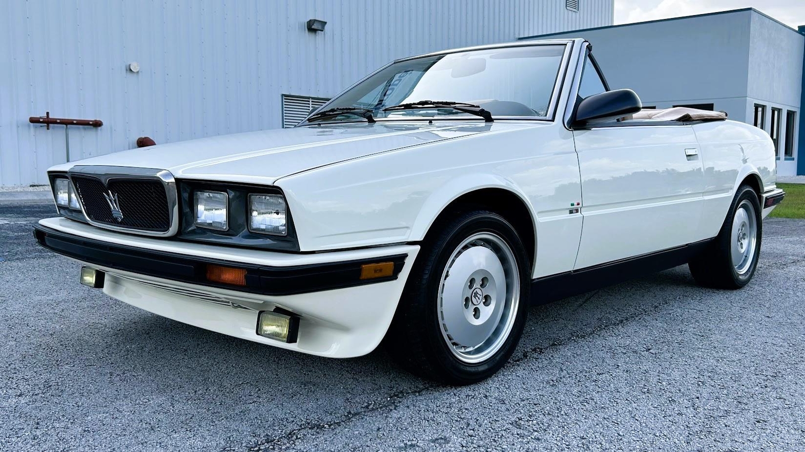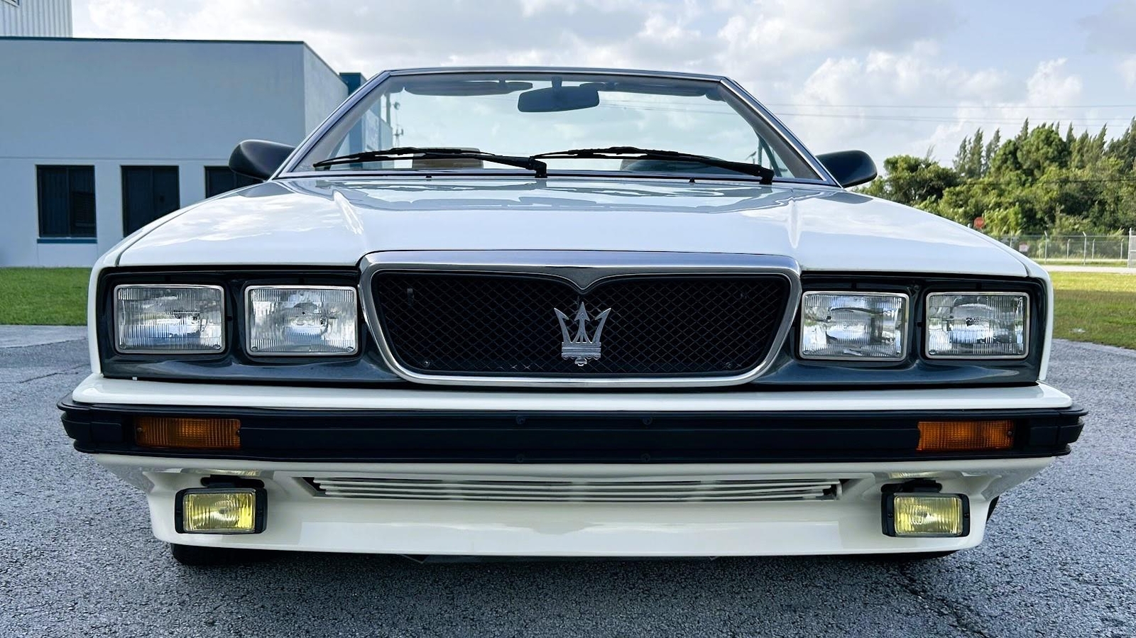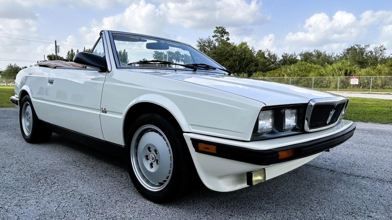 Up for sale is a super rare 7k mile original 1989 Maserati Biturbo Spyder owned by the same owner for 22 years in his privat car collection! Powered by a twin-turbocharged 2.8-liter V6 mated to a five-speed ZF manual transmission. It is finished in Swan White over beige leather upholstery and is equipped with a convertible soft top, fog lights with amber lenses, 15” alloy wheels, power windows, and air conditioning. This Biturbo Spyder shows 7k miles and is offered with manufacturer’s literature, a tool kit, a clean Carfax report, and a clean Florida title! Equipped with a convertible soft top, a beige top boot, a front spoiler, fog lights, Zagato badging, and quad exhaust outlets. The front bumper cover is said to have been repainted. Call me 305-542-5662 Rare opportunity!