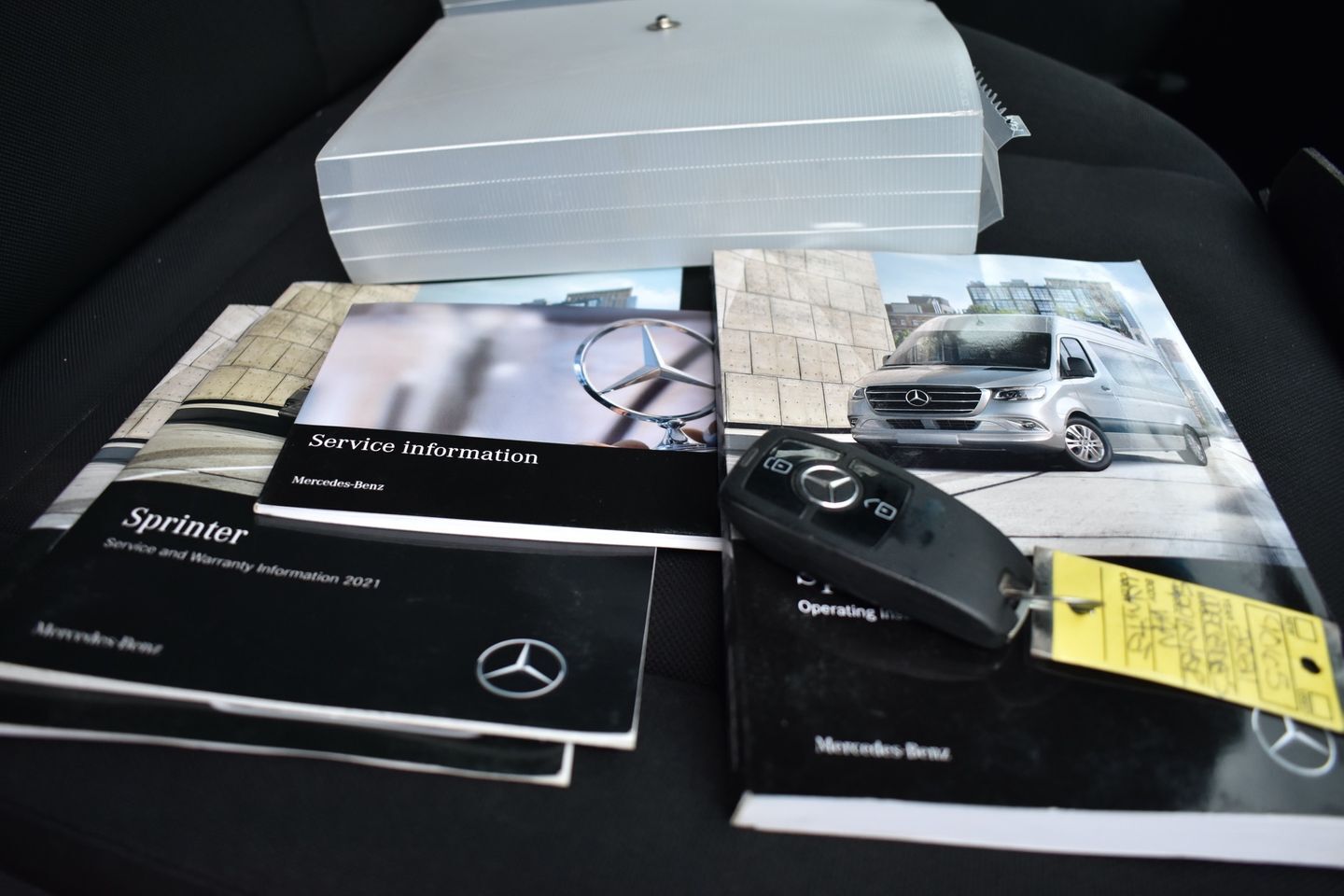 You are looking at a 2021 Mercedes Sprinter Crew Van . It is powered with a 2.0L I-4 and automatic transmission. It is equipped with tilt, cruise, power windows, power locks, power mirrors, am/fm radio, and other basic options. Also included are the owner's manuals and one key.