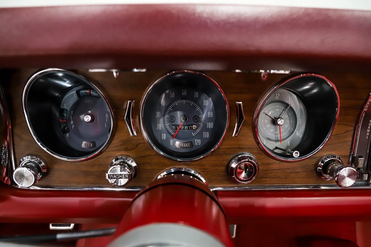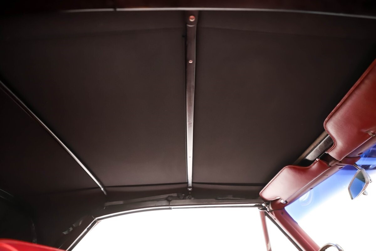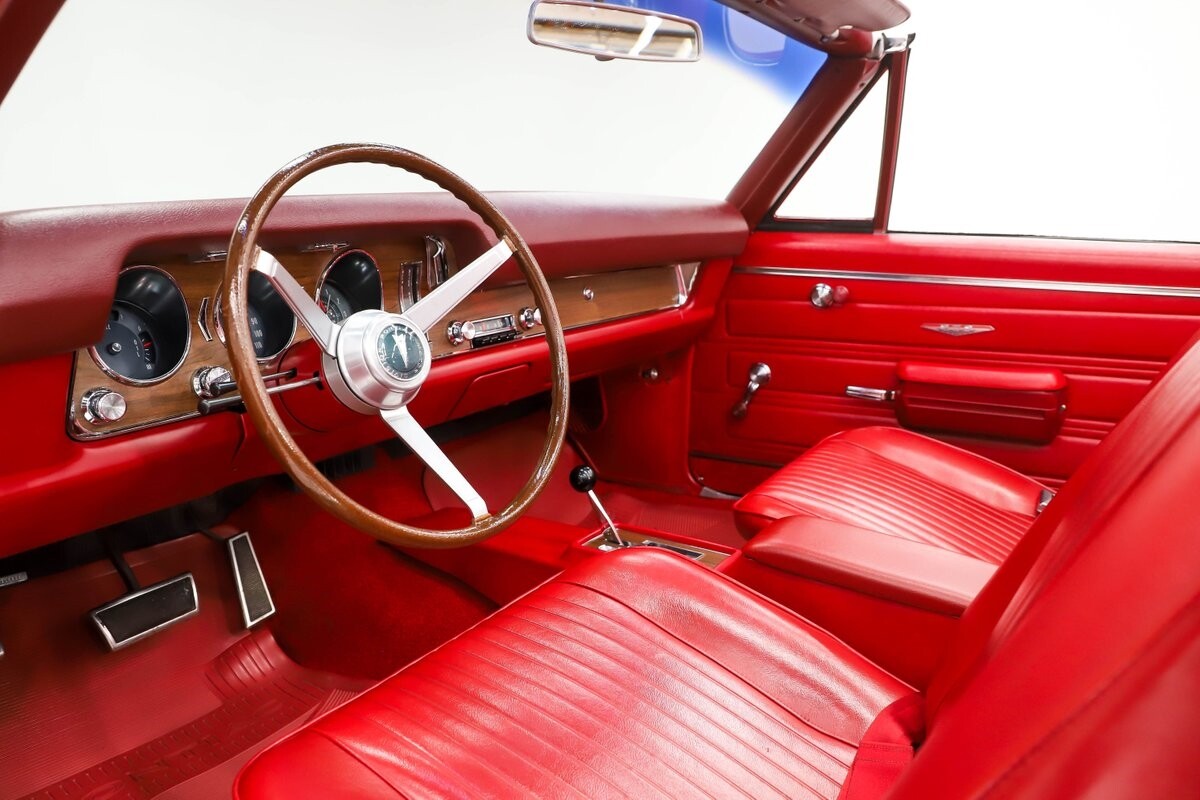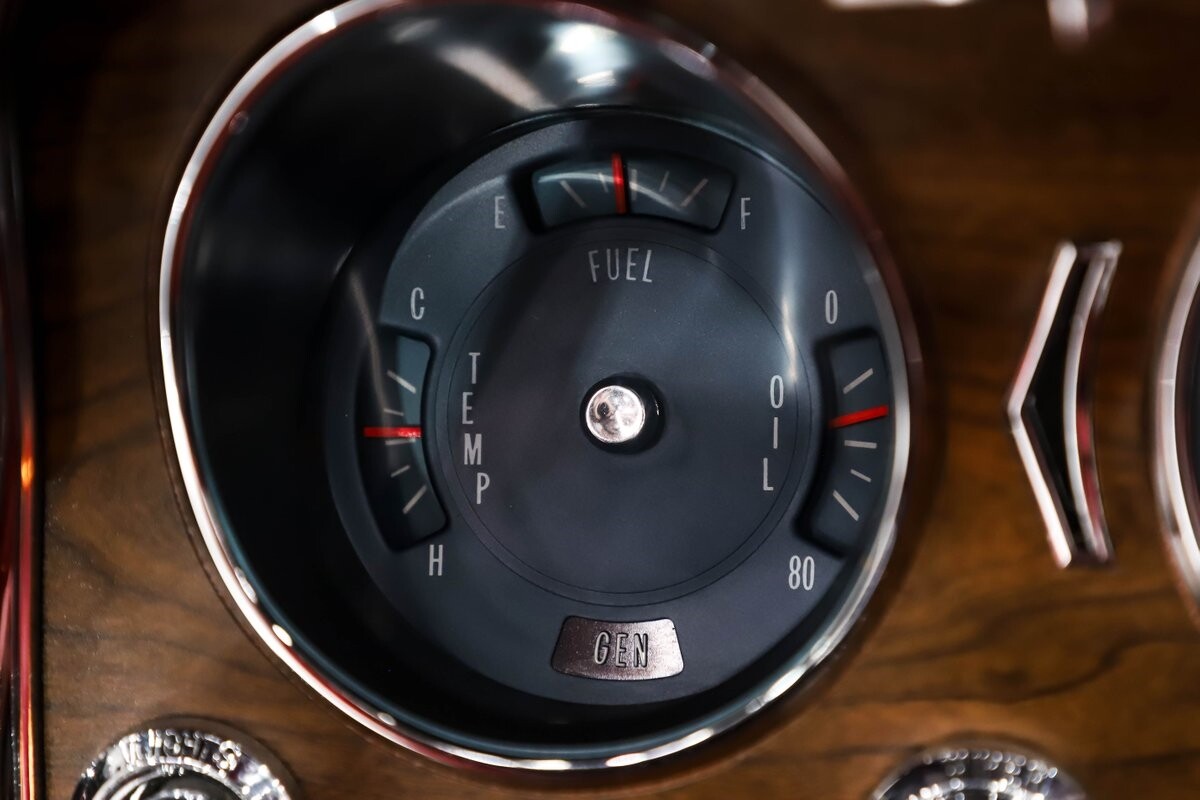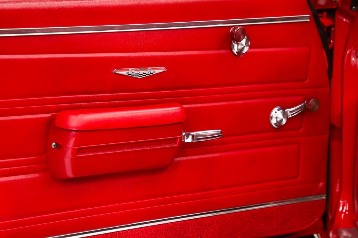 INTERIOR: Is red your favorite color? Inside the jams are painted slick just like the exterior and the door panels have been replaced. The front bucket seats have been reupholstered and look great. It has a center console and Hurst dual gate shifter that are in good shape and appear to be original. The sun visors and review mirror look original as well. All the interior lights are working including the glove box light. The dash pad has been replaced and all the gauges are original. The factory clock is working. The original radio has been professionally rebuilt and has Bluetooth capabilities with an auxiliary cable to plug in your devices that is hidden in the ashtray. The original tilt steering column and steering wheel are in great shape. The rear seat has been reupholstered to match the front. All the carpeting has been replaced and it has rubber floor mats.