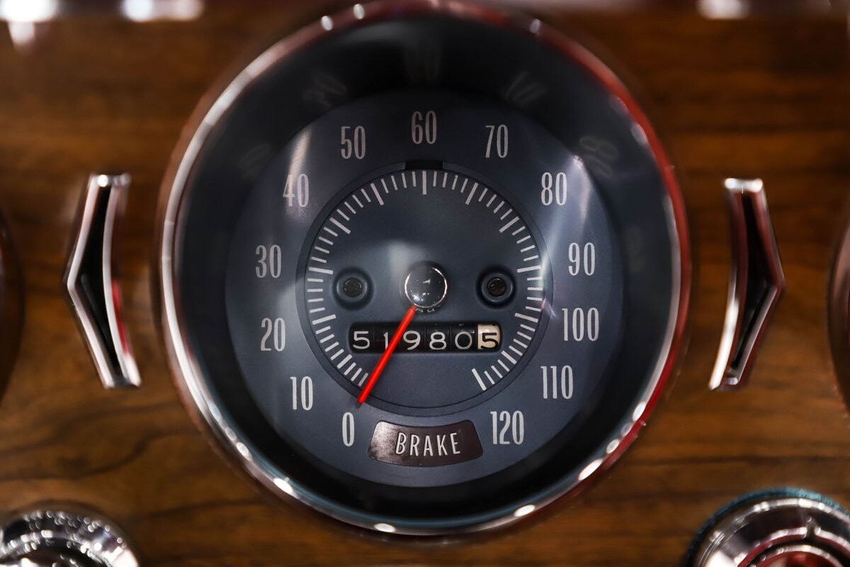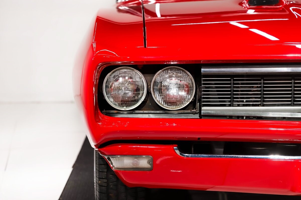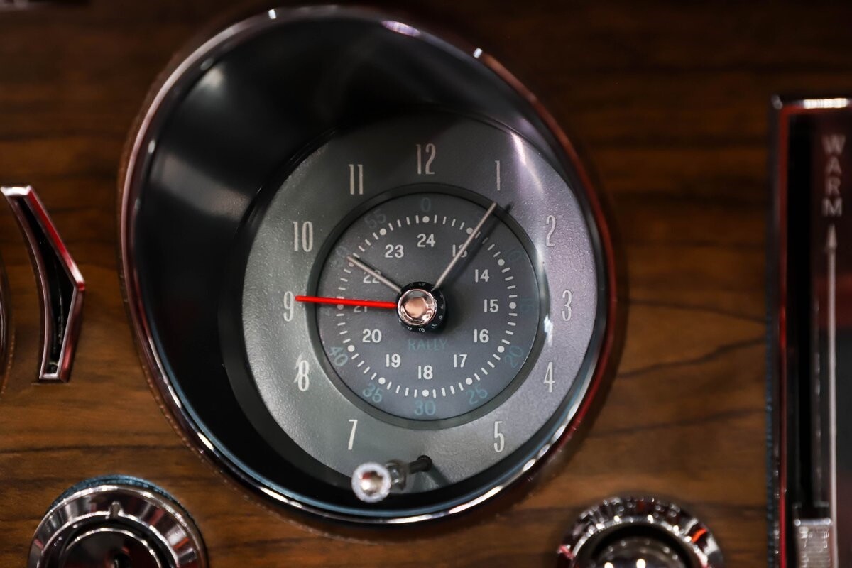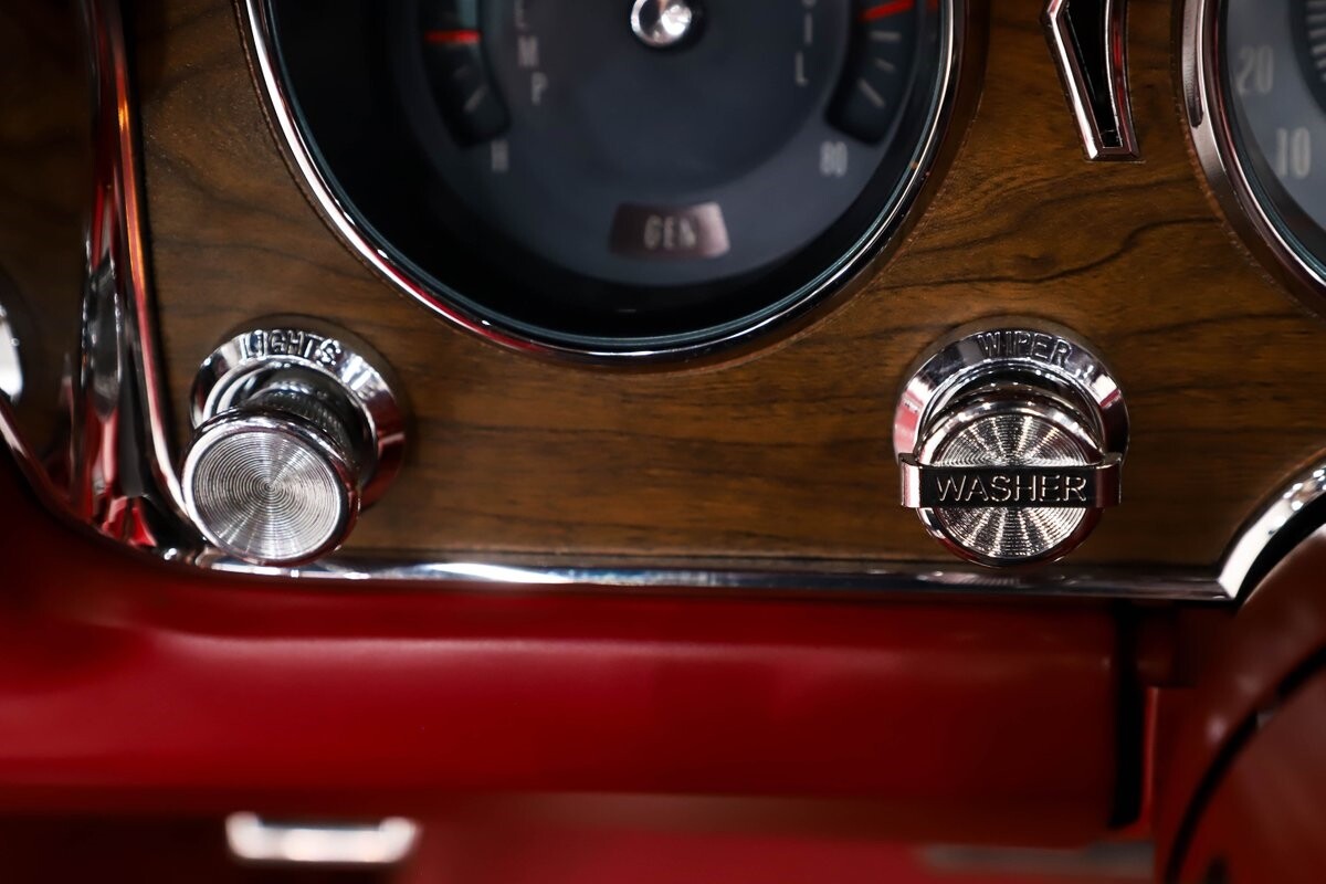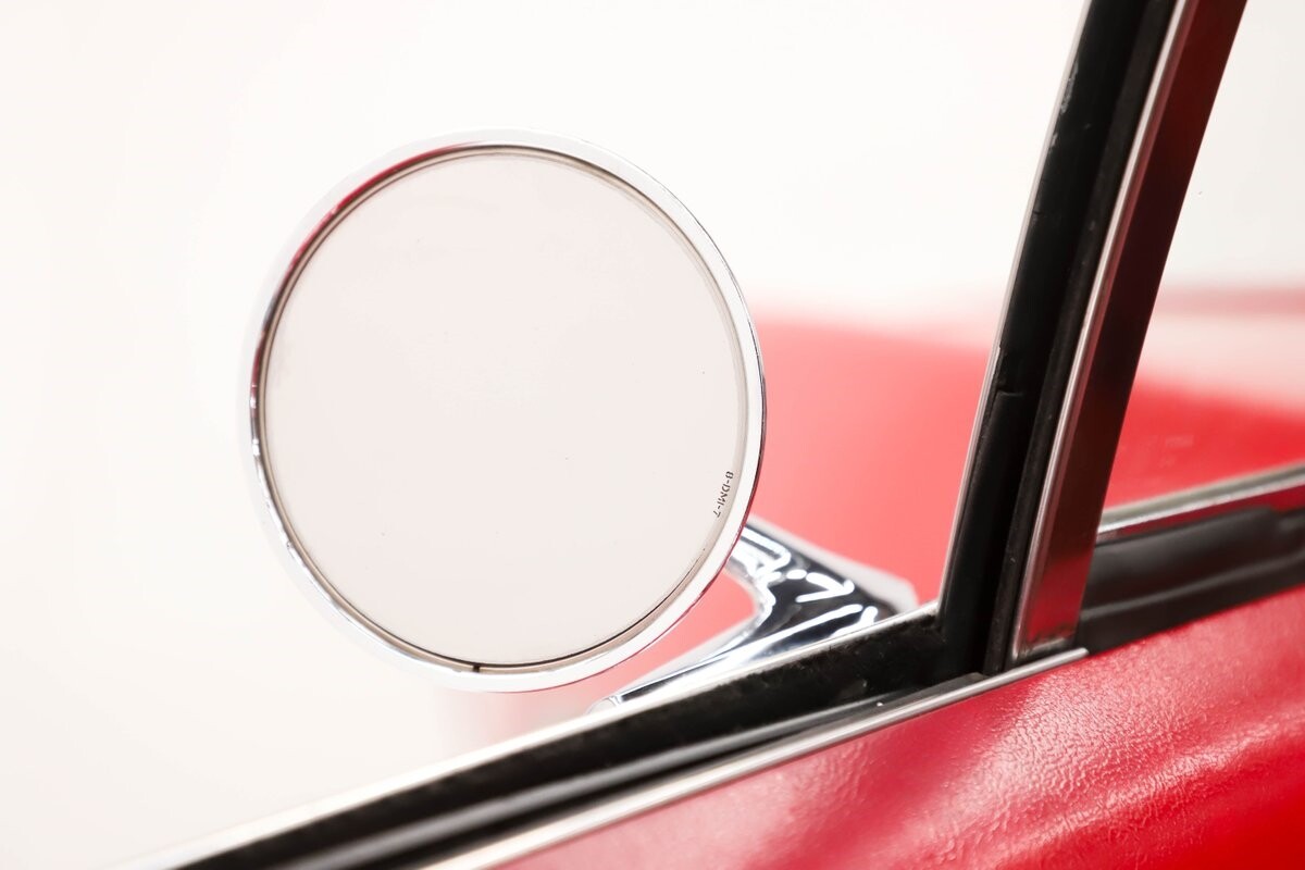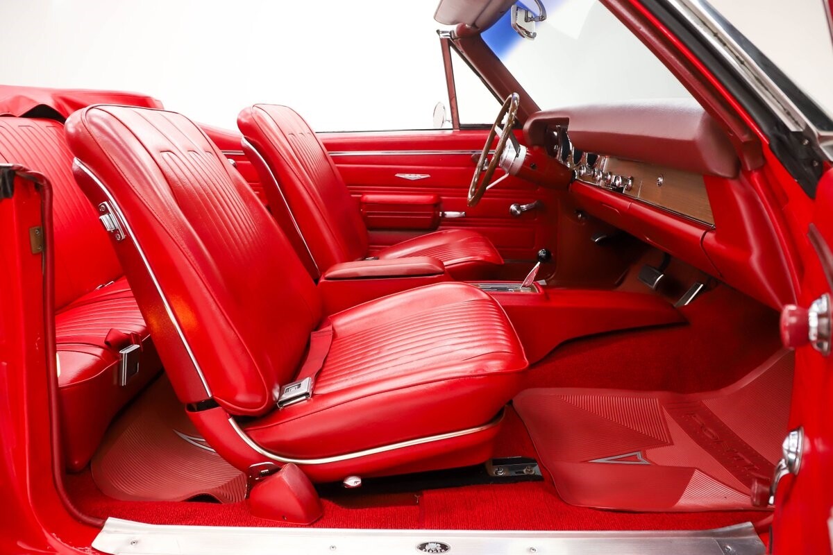 INTERIOR: Is red your favorite color? Inside the jams are painted slick just like the exterior and the door panels have been replaced. The front bucket seats have been reupholstered and look great. It has a center console and Hurst dual gate shifter that are in good shape and appear to be original. The sun visors and review mirror look original as well. All the interior lights are working including the glove box light. The dash pad has been replaced and all the gauges are original. The factory clock is working. The original radio has been professionally rebuilt and has Bluetooth capabilities with an auxiliary cable to plug in your devices that is hidden in the ashtray. The original tilt steering column and steering wheel are in great shape. The rear seat has been reupholstered to match the front. All the carpeting has been replaced and it has rubber floor mats.