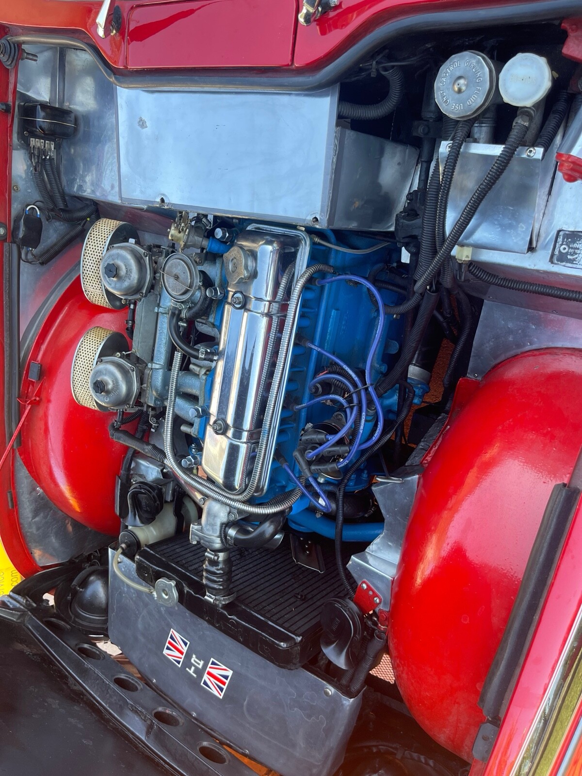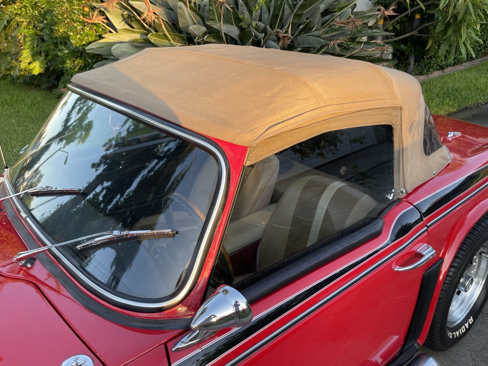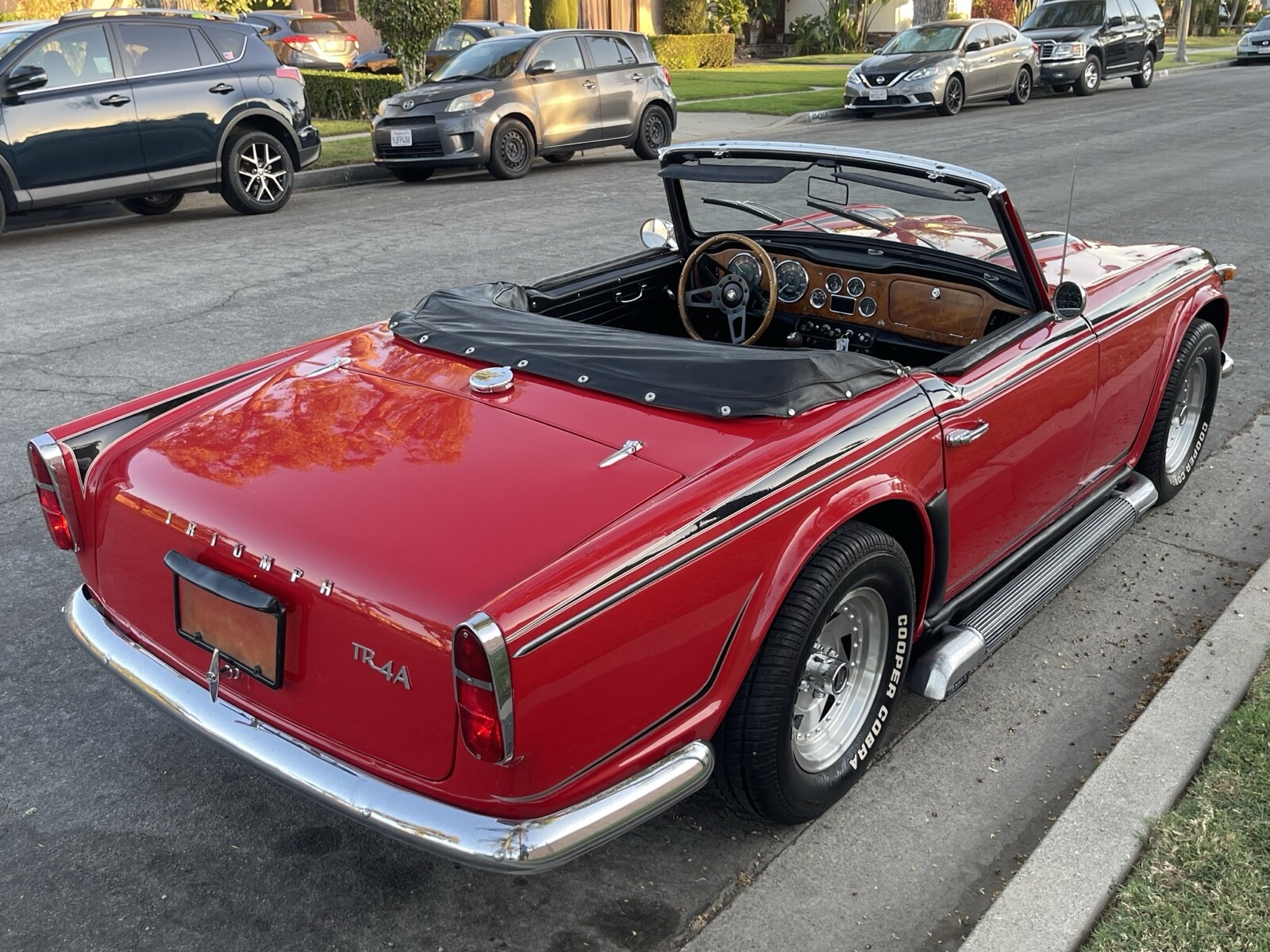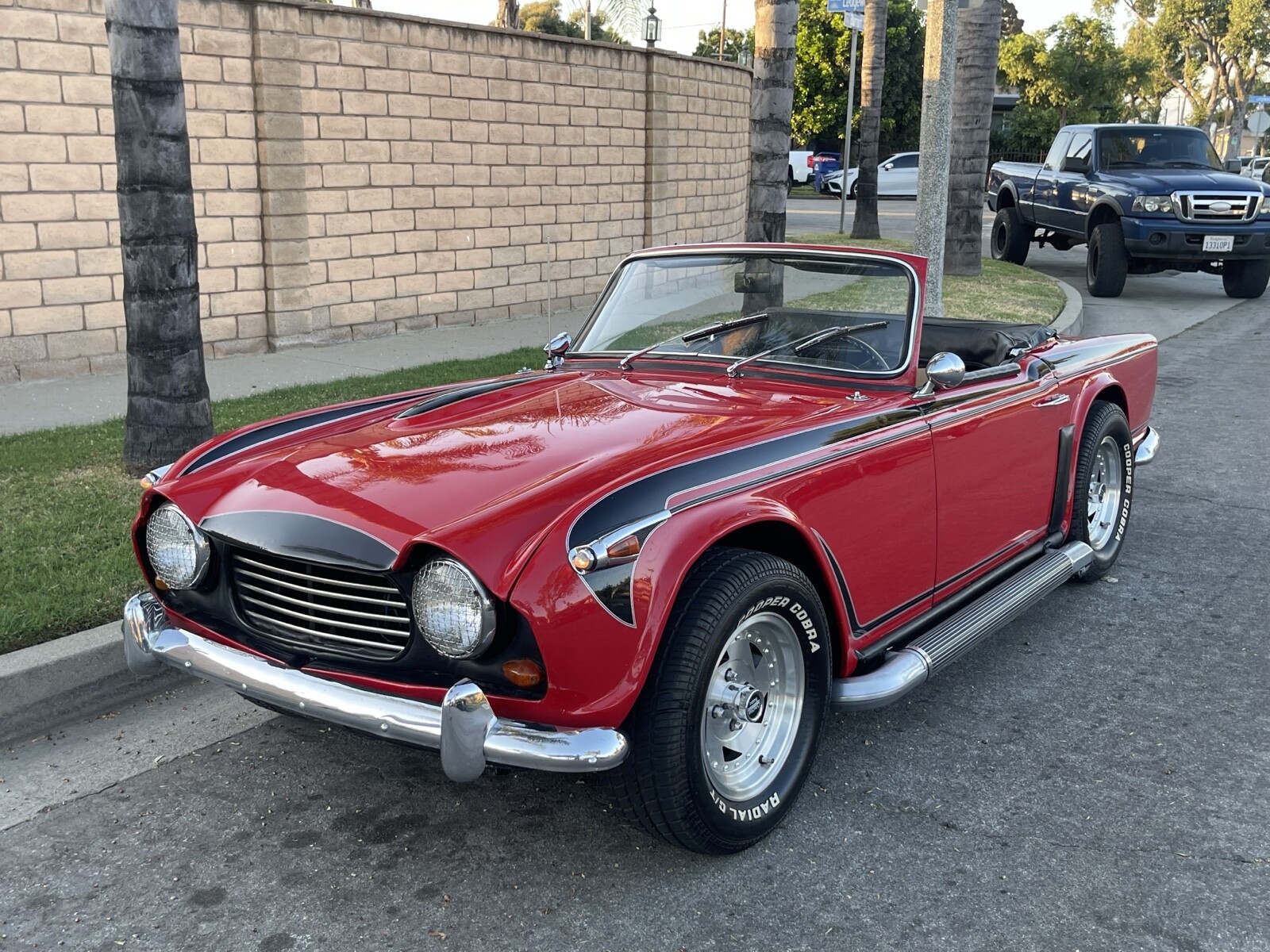 Up for sale is my 1967 Triumph TR4A. It’s a very nice example featured in a two-toned red with black exterior and black interior. Riding on American Racing wheels and Cooper Cobra tires. 4 Cylinder engine paired to a pair of Zenith Stromberg carburetors, and a manual transmission. Has a very nice Thrush side exhaust pipe set up. Runs and drives good. It comes with a car cover, owners repair handbook, a spare wheel and a jack. This is a very beautiful example that has been tastefully built.