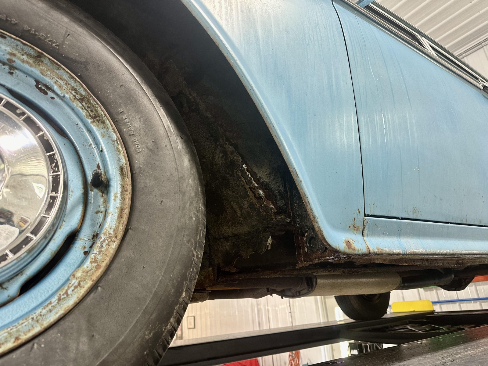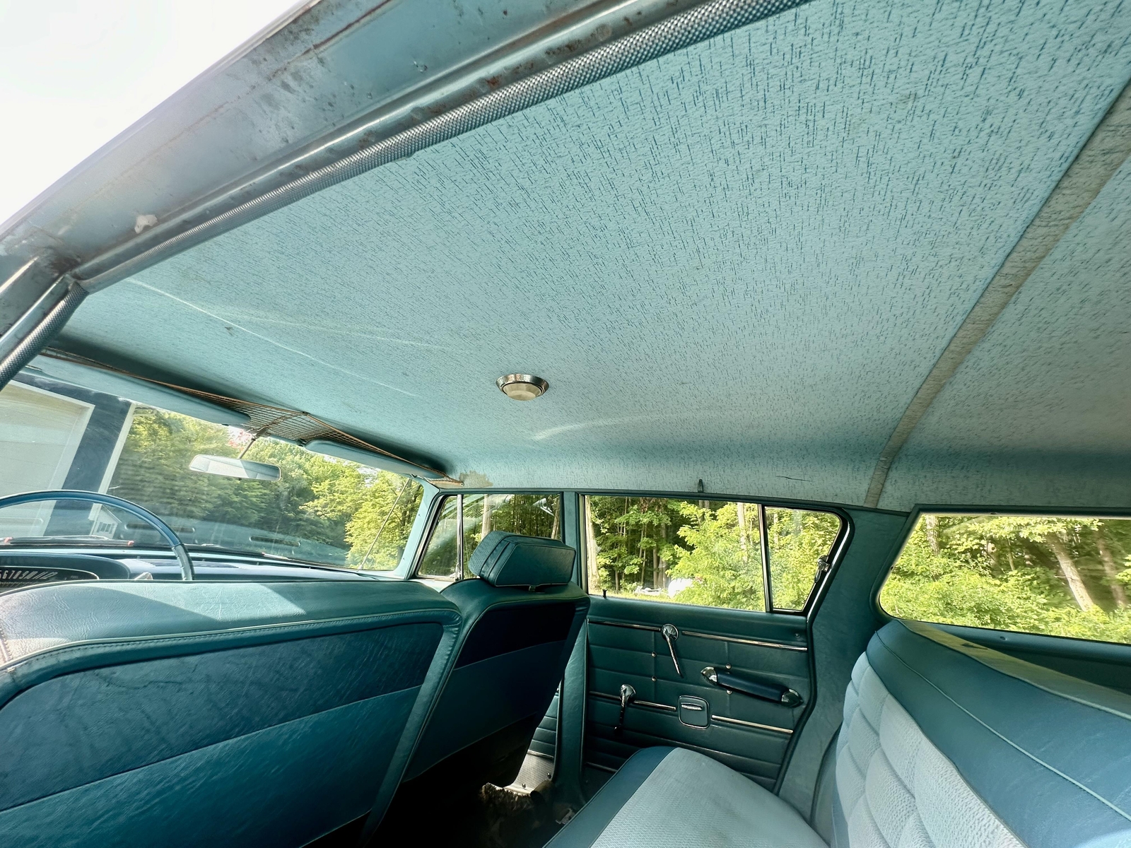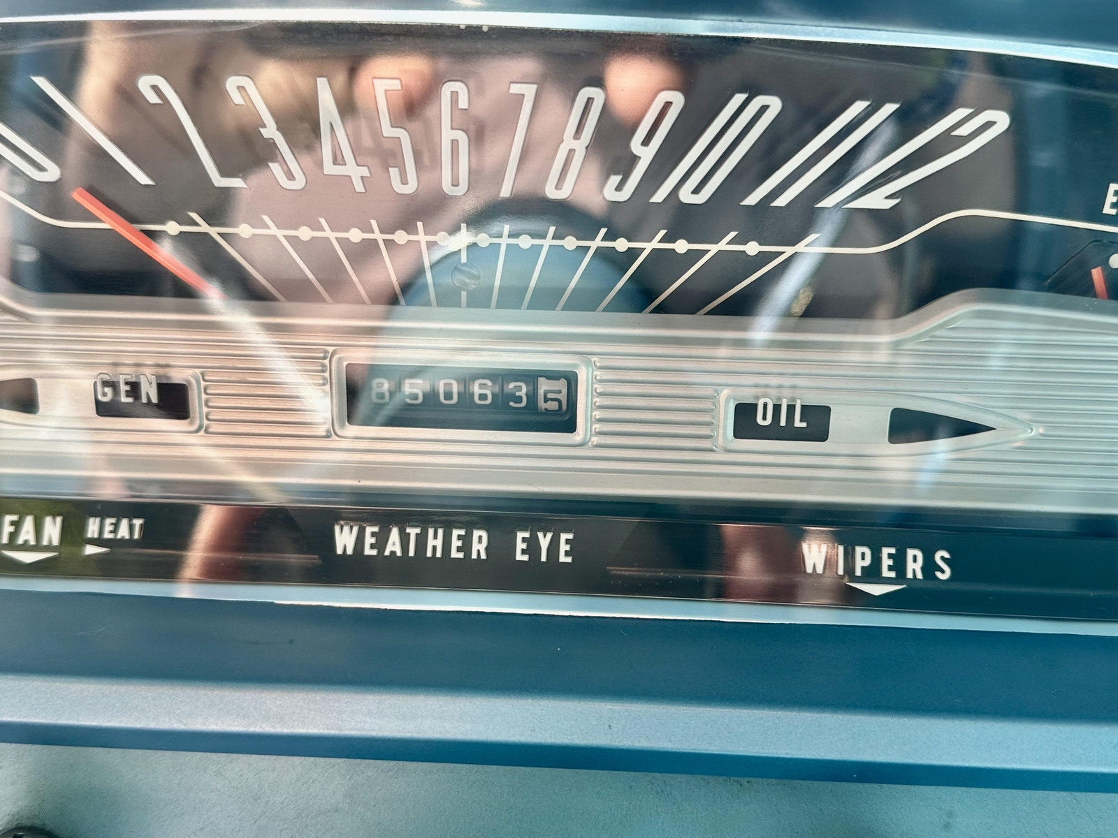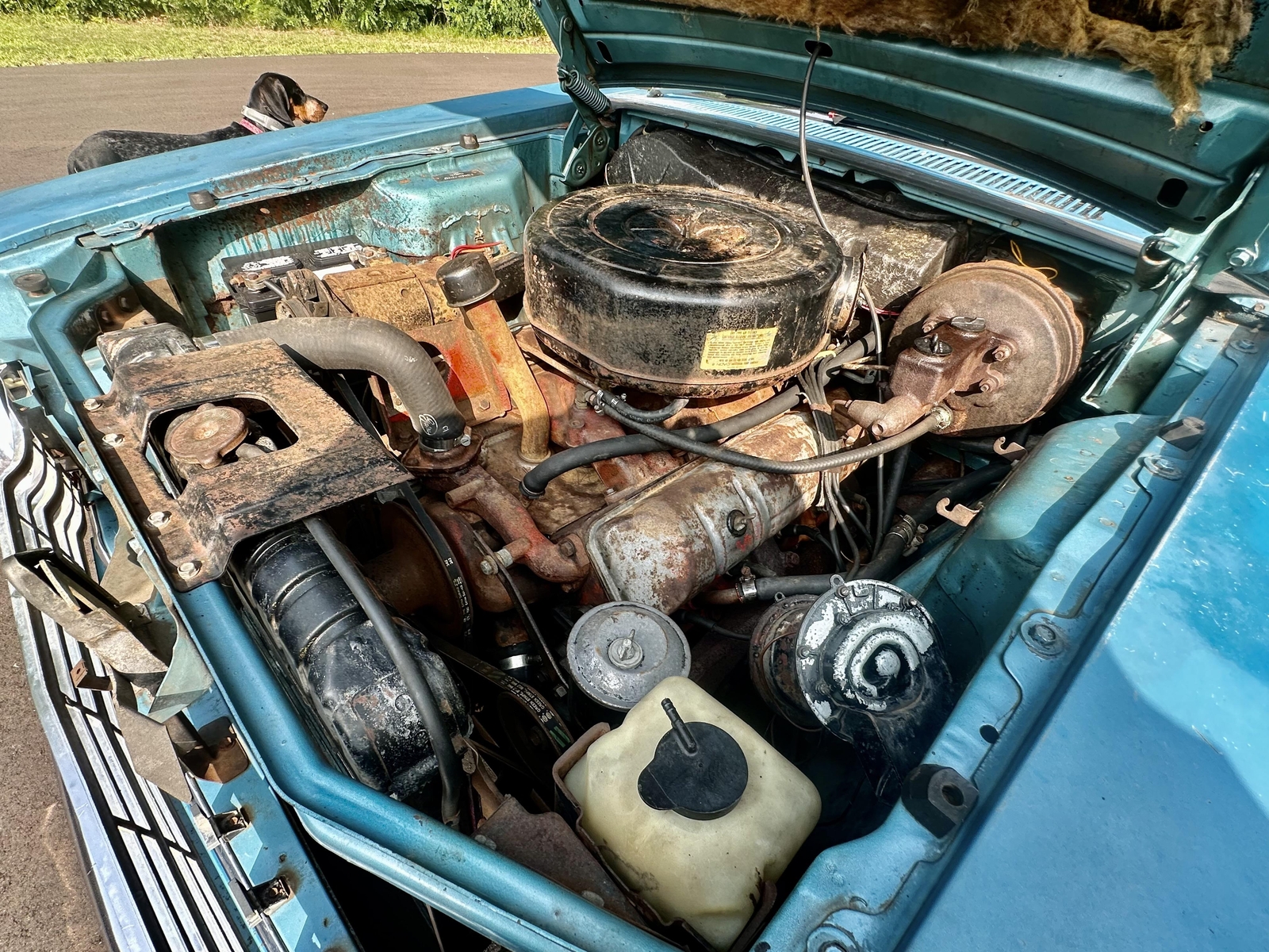 The original Blue Cloth Interior is well-preserved and full of potential. The dash, gauges, switches, and lenses are all in excellent condition. Seatbelts are intact, and the seats are fully functional. The headliner is in great shape throughout. The back seat appears unused, and the rear area is clean with a dry spare tire bay. Although the original shag carpet has been cleaned, it needs replacement. Factory floor mats are included, and all switches, including the wipers, lights, and horn, function properly.