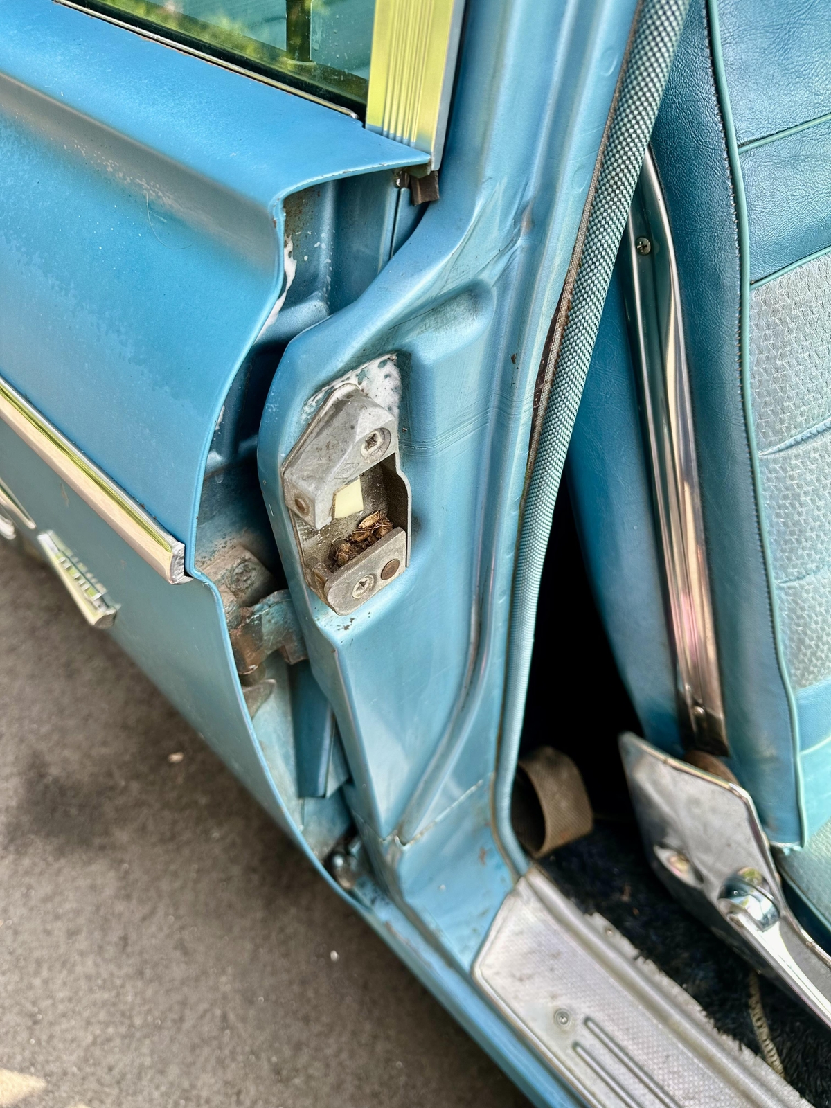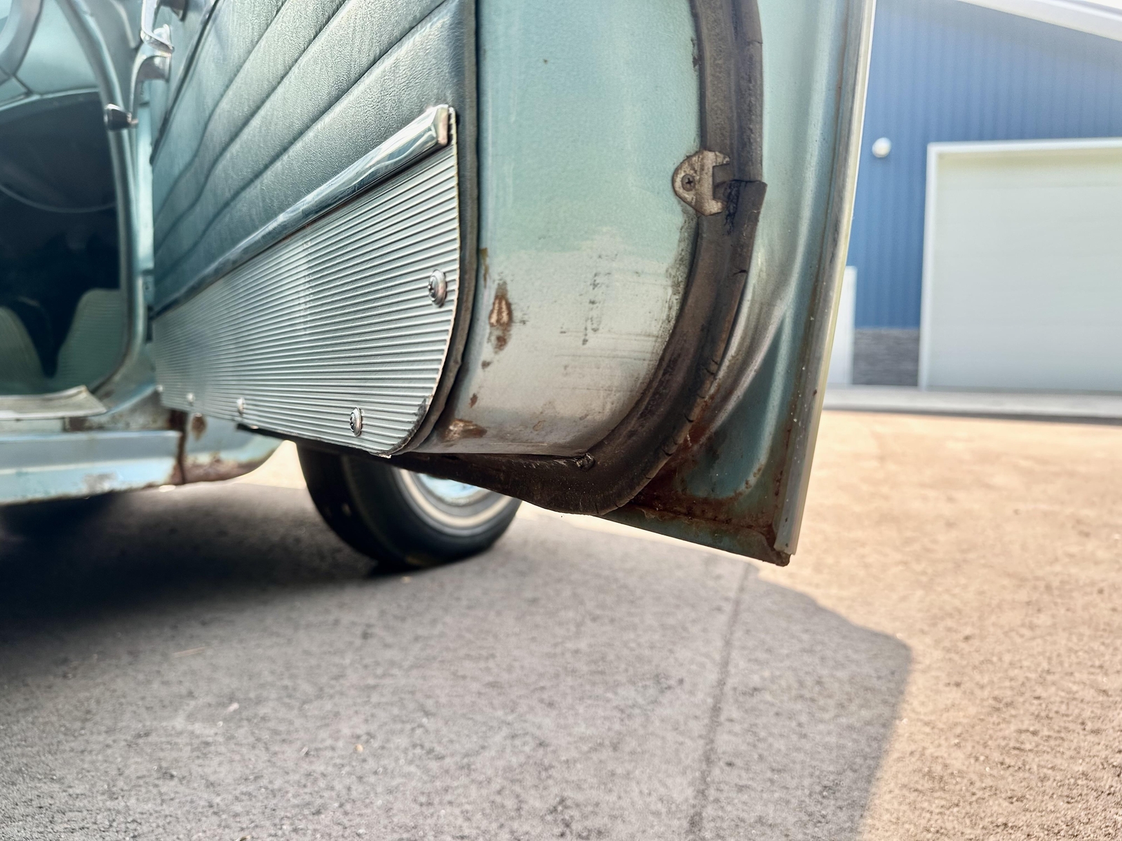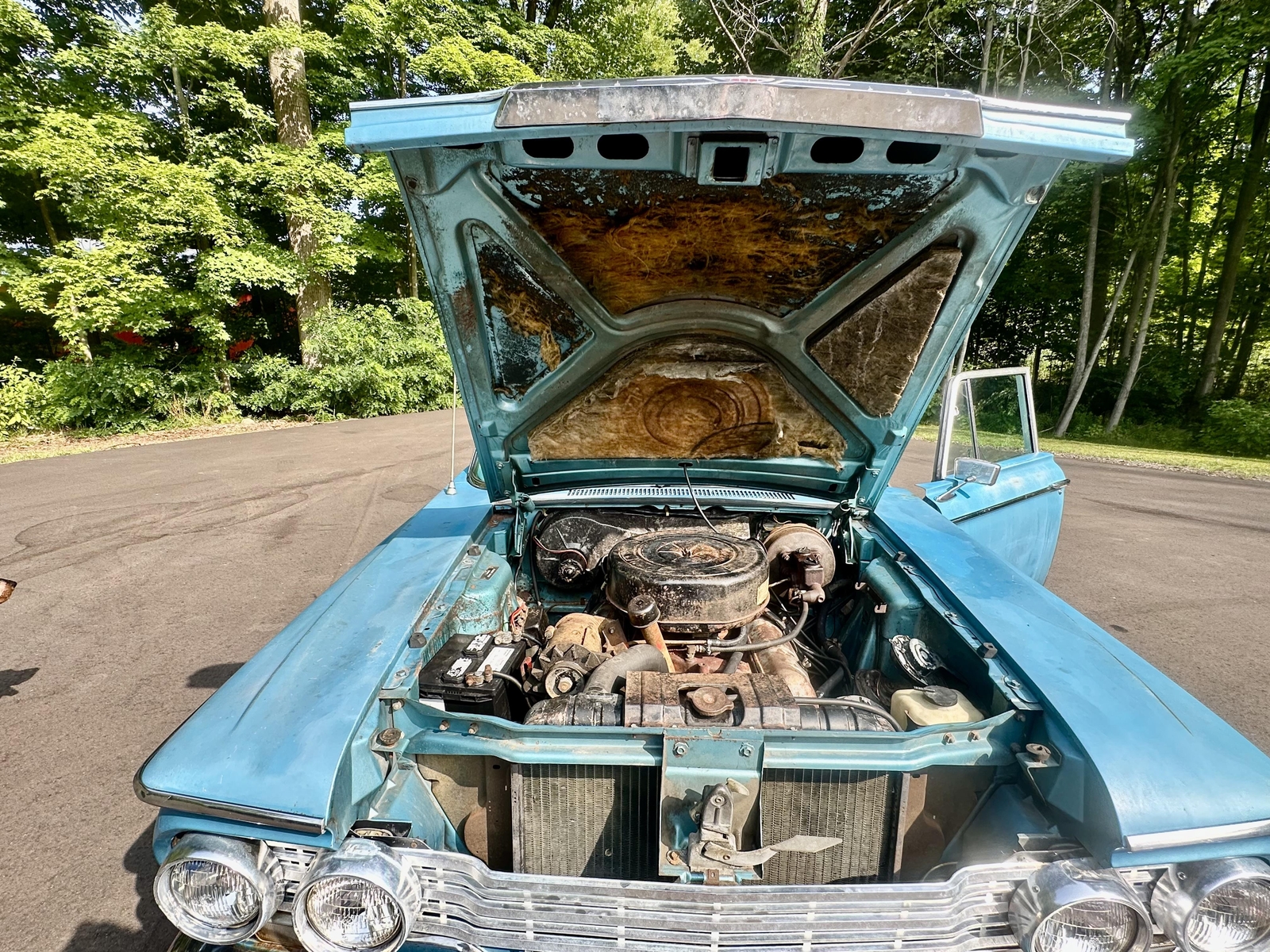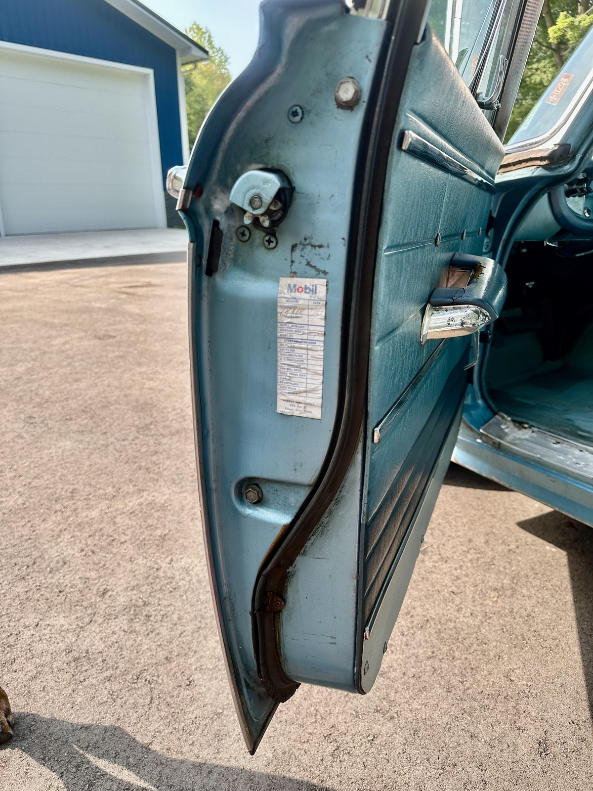 The original Blue Cloth Interior is well-preserved and full of potential. The dash, gauges, switches, and lenses are all in excellent condition. Seatbelts are intact, and the seats are fully functional. The headliner is in great shape throughout. The back seat appears unused, and the rear area is clean with a dry spare tire bay. Although the original shag carpet has been cleaned, it needs replacement. Factory floor mats are included, and all switches, including the wipers, lights, and horn, function properly.