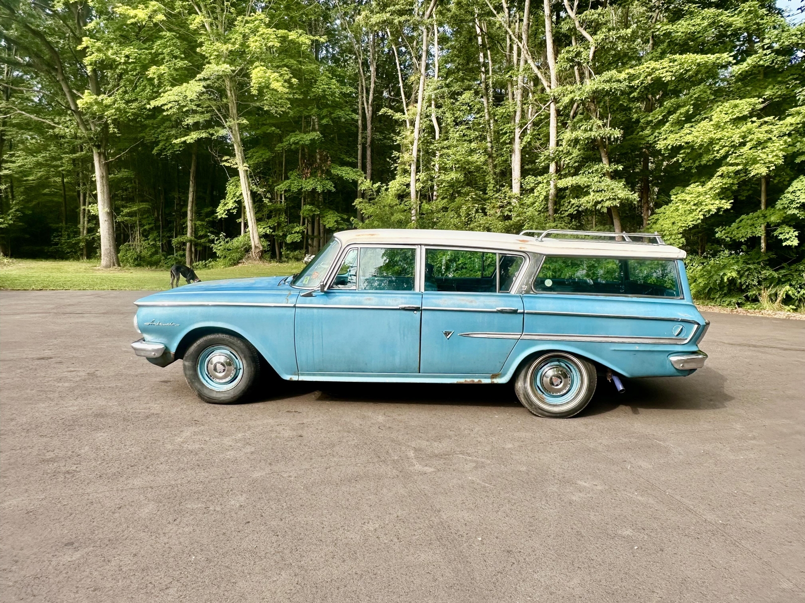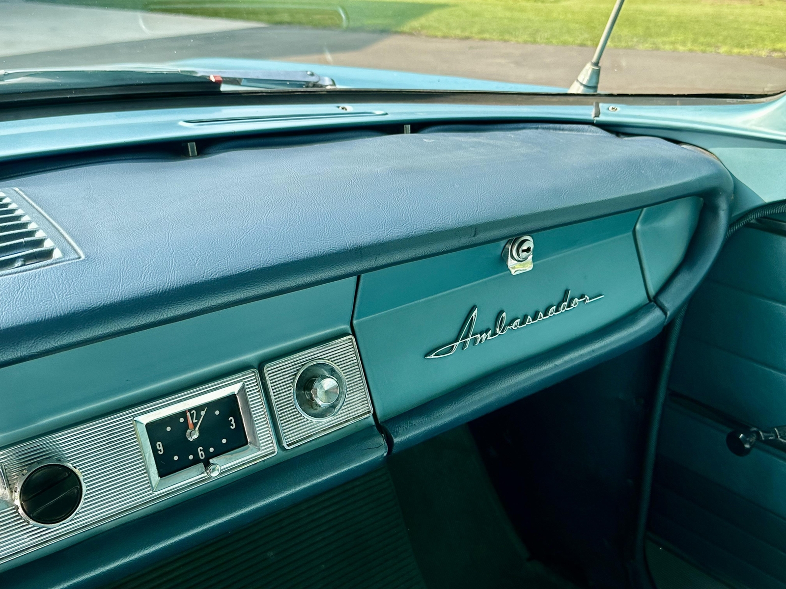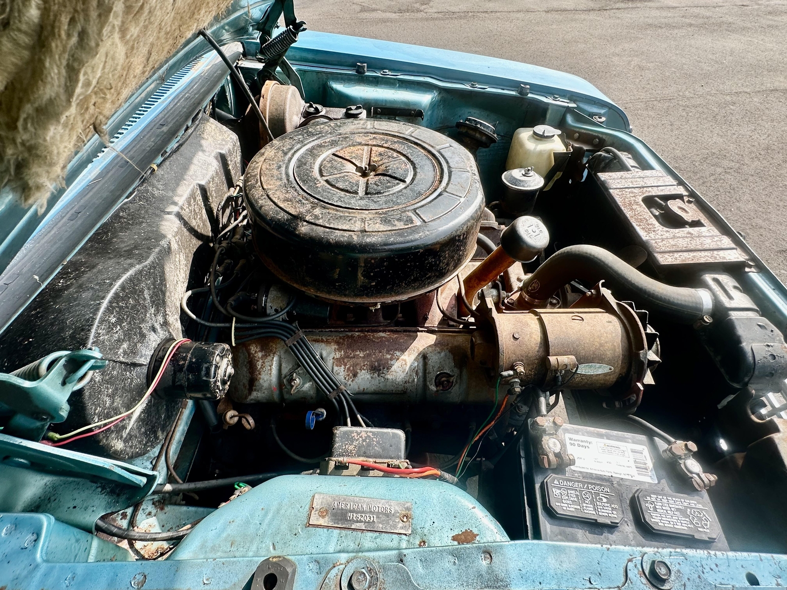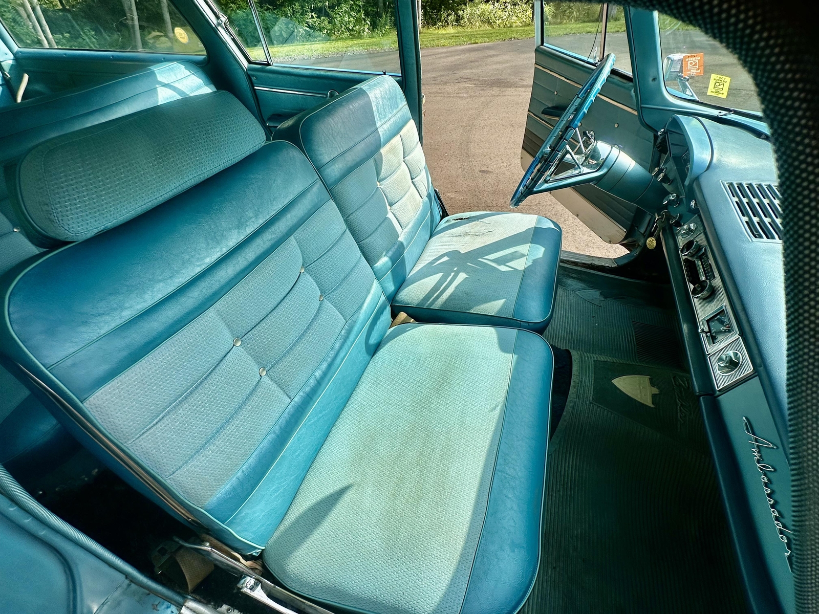 We are thrilled to present this exceptional Ambassador wagon for your consideration. Originally purchased from Harlo Motors in Watertown, NY, this car has spent its life sheltered in garages between NY and Chicago. It changed hands in 1985 and remains a true 2-owner survivor, boasting rare options such as the Flash-O-Matic push-button transmission, power steering, and power brakes. This authentic Ambassador V8 is largely intact, running, and driving, and ready for its next proud owner.