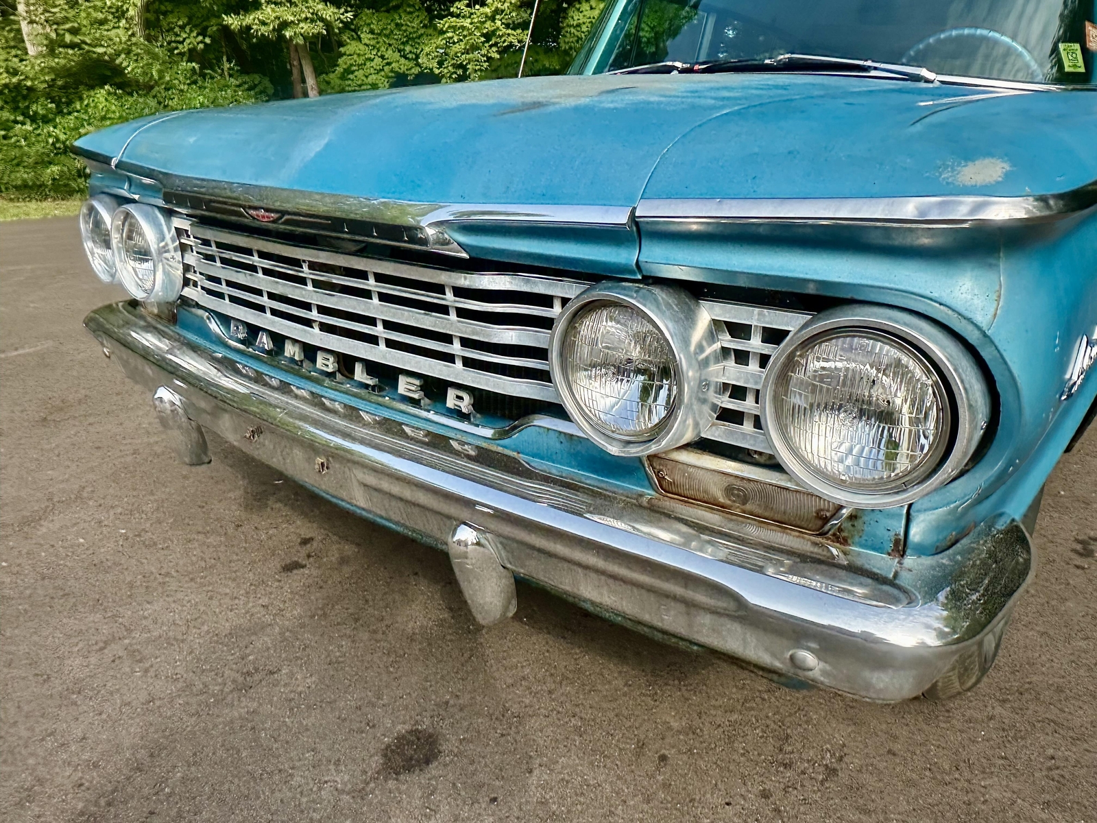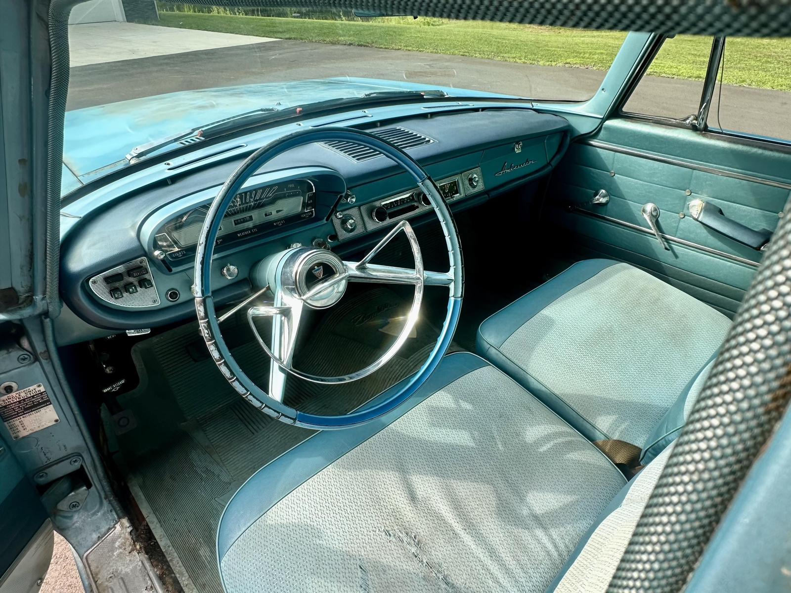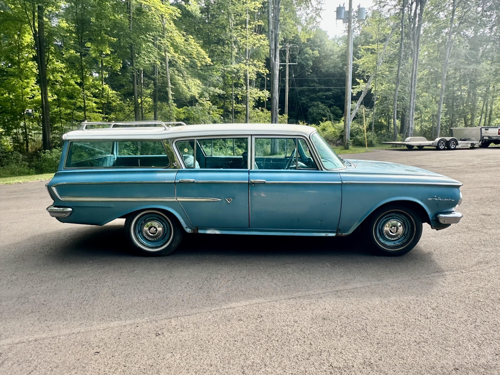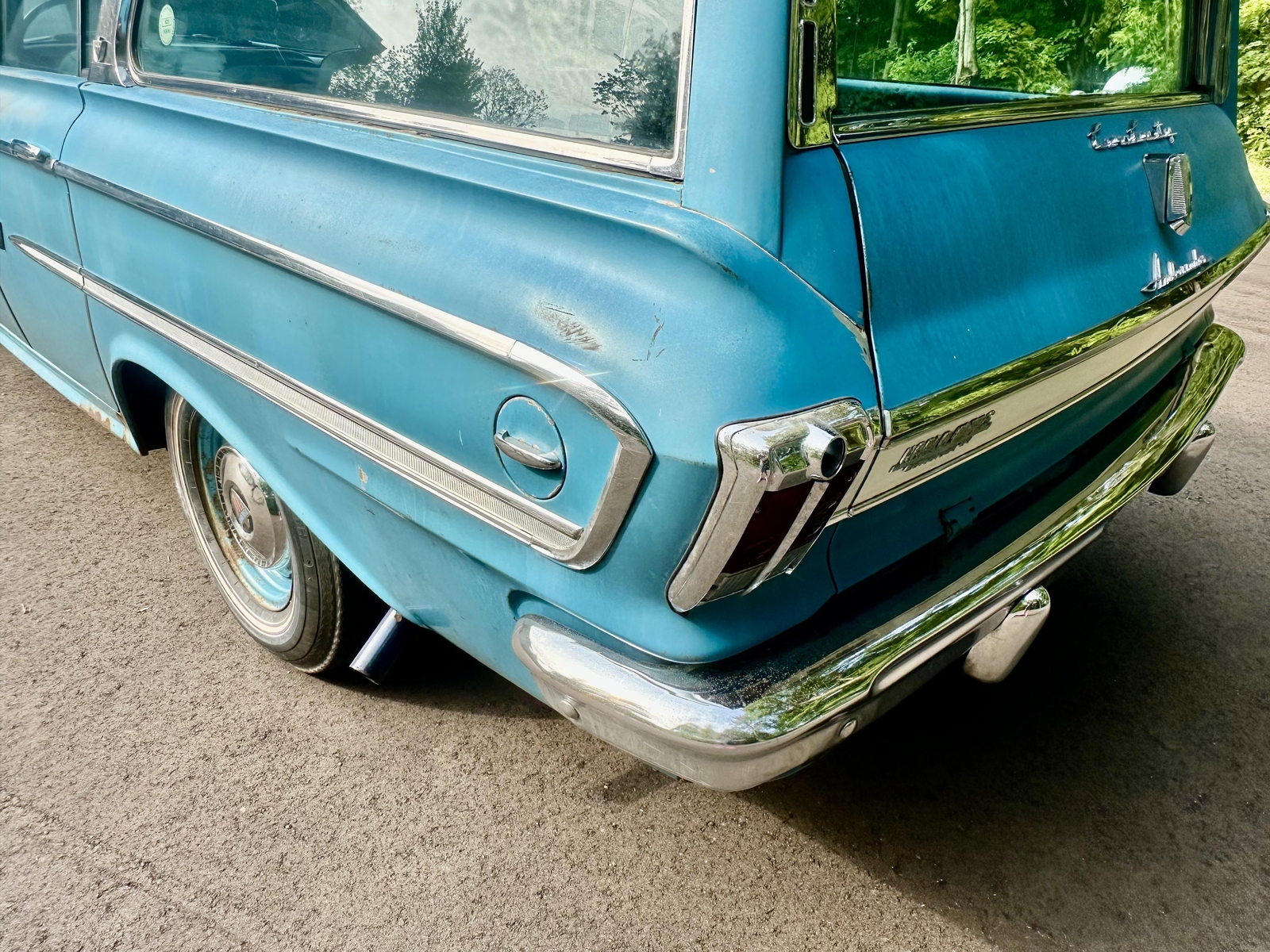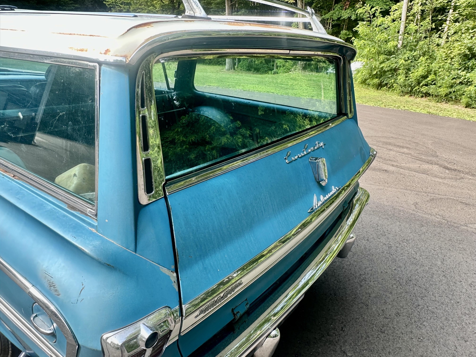 We are thrilled to present this exceptional Ambassador wagon for your consideration. Originally purchased from Harlo Motors in Watertown, NY, this car has spent its life sheltered in garages between NY and Chicago. It changed hands in 1985 and remains a true 2-owner survivor, boasting rare options such as the Flash-O-Matic push-button transmission, power steering, and power brakes. This authentic Ambassador V8 is largely intact, running, and driving, and ready for its next proud owner.