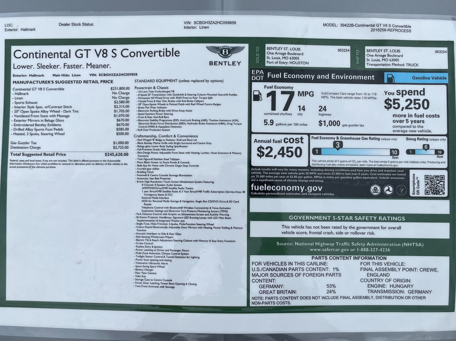 Listed below are all the window sticker installed options
