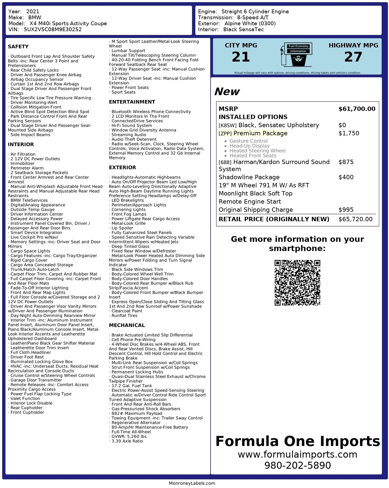 EXTENDED WARRANTYON THIS 2021 BMW X4 M40i