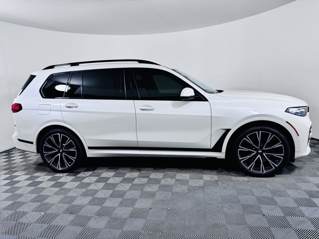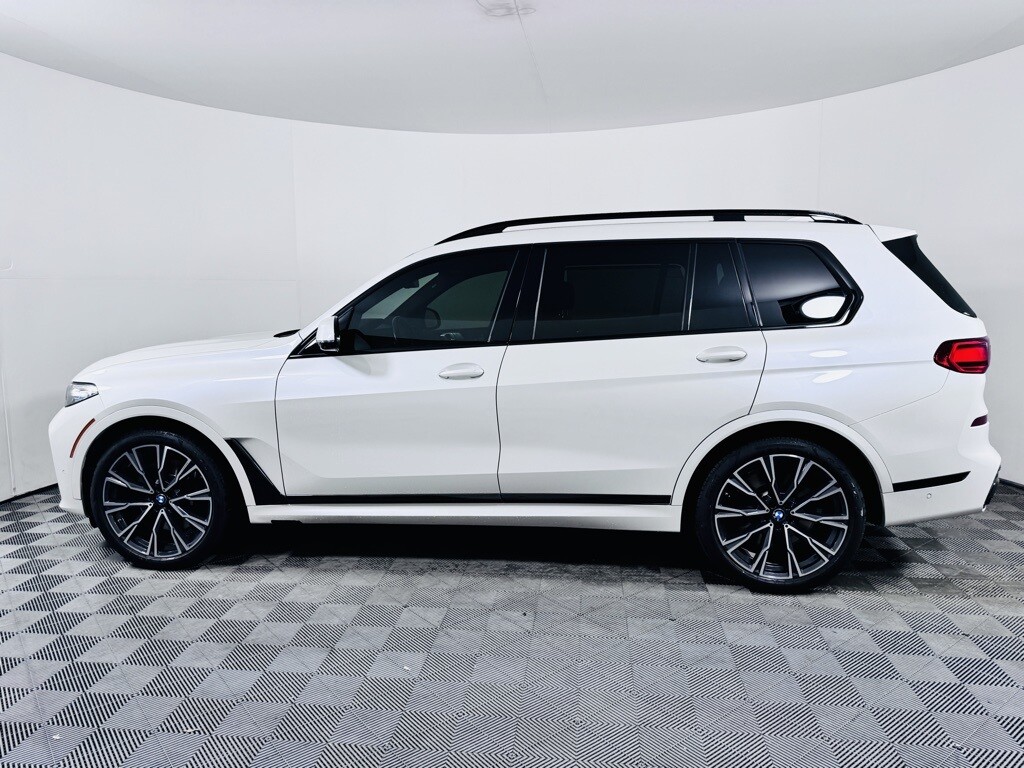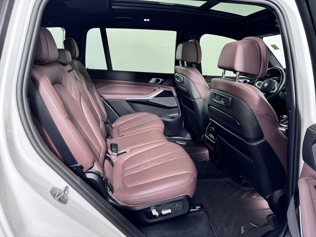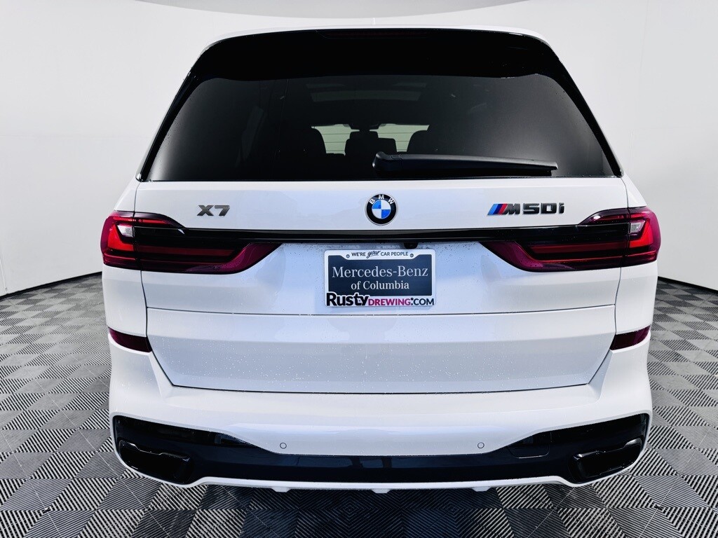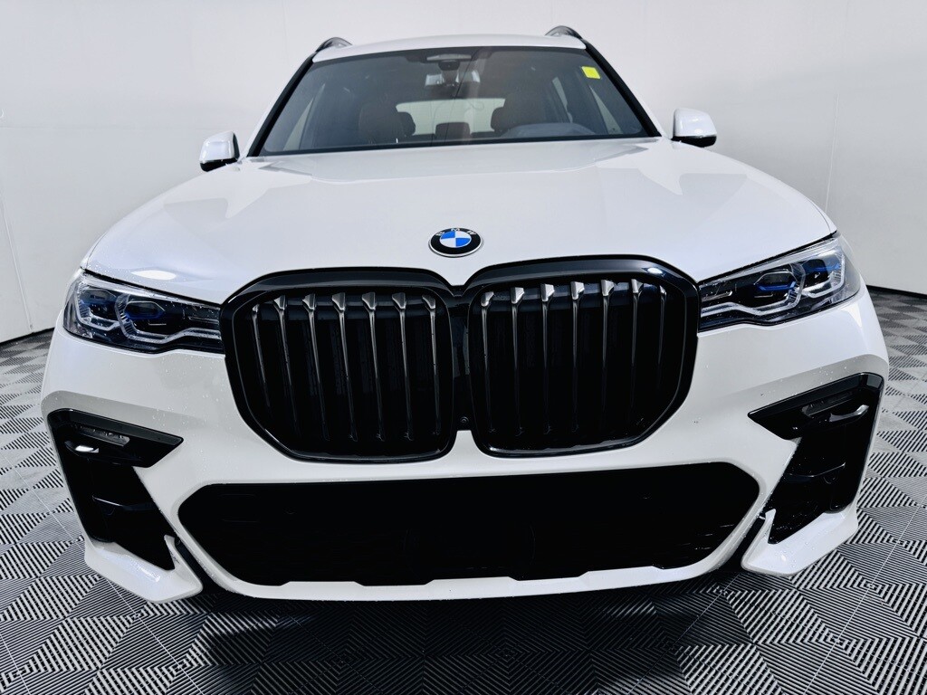 Clean CARFAX. White Metallic 2021 BMW X7 M50i AWD 8-Speed Automatic 4.4L V8 DOHC 32V GPS Navigation, Back Up Camera, Moonroof, Leather, Heated Seats, X7 M50i, 4D Sport Utility, 4.4L V8 DOHC 32V, 8-Speed Automatic, AWD, White Metallic, Coffee Leather, Connected Package Pro, Front Ventilated Seats, Heated front seats, Heated steering wheel, Navigation System, Power moonroof.
