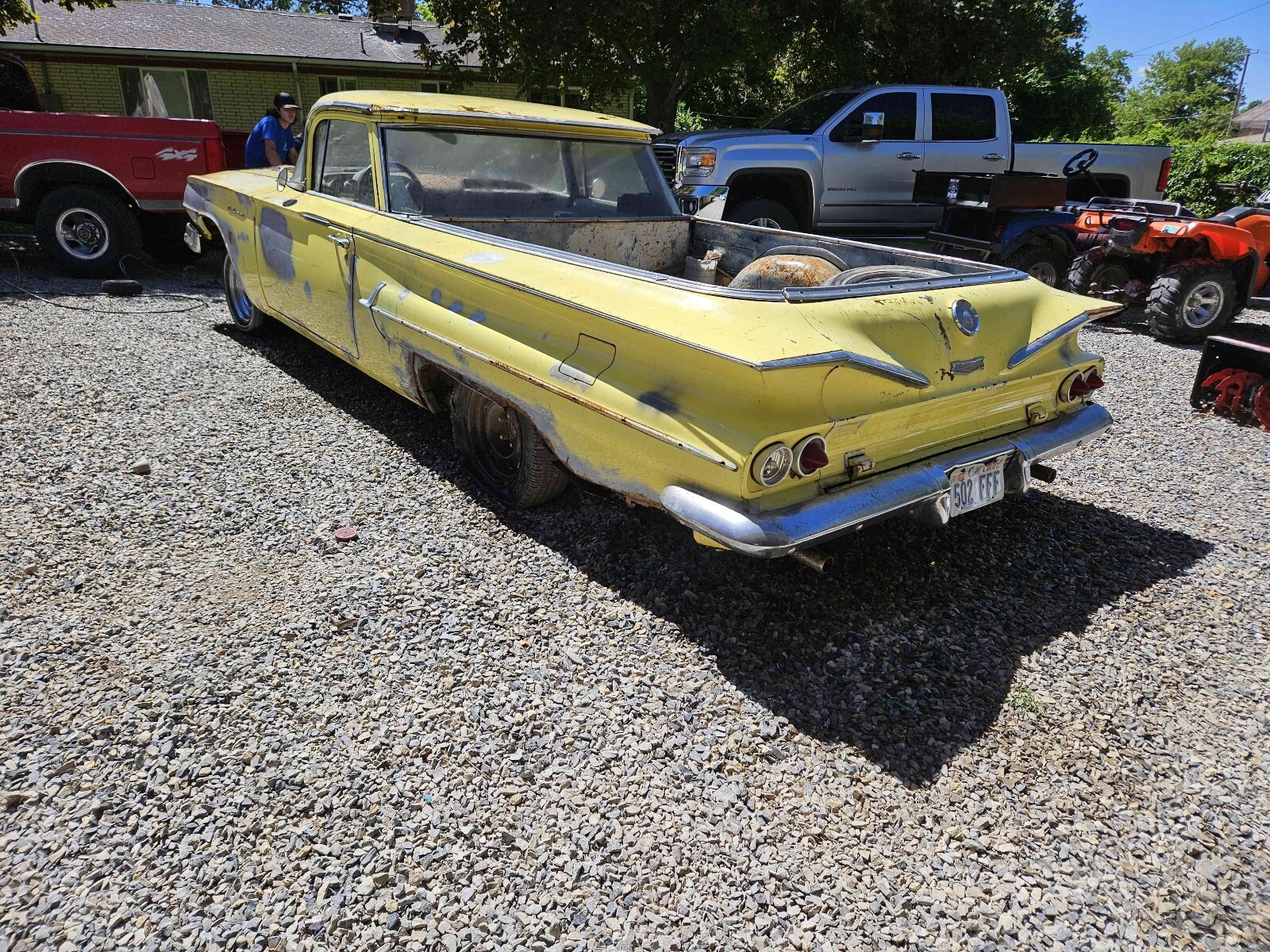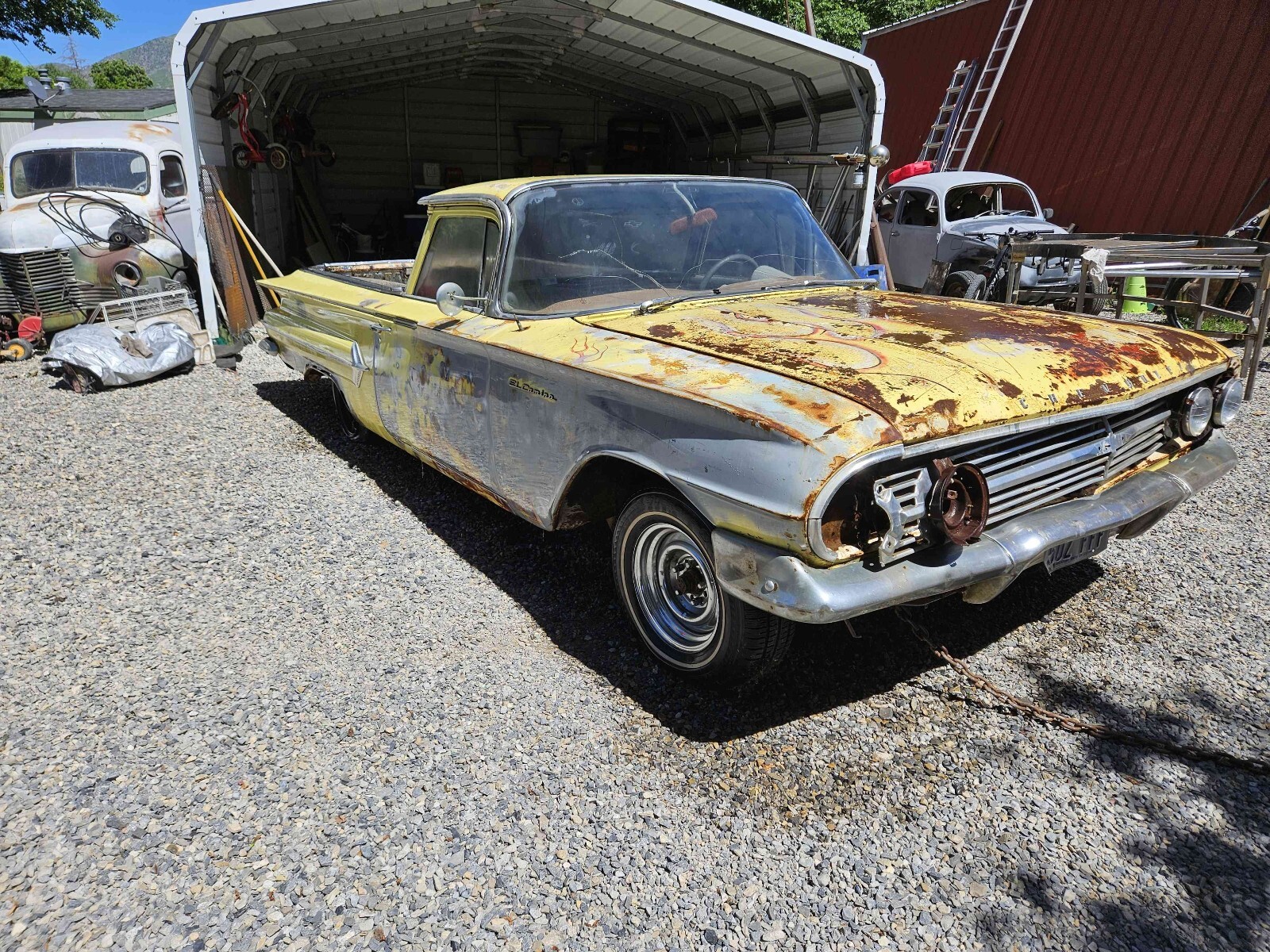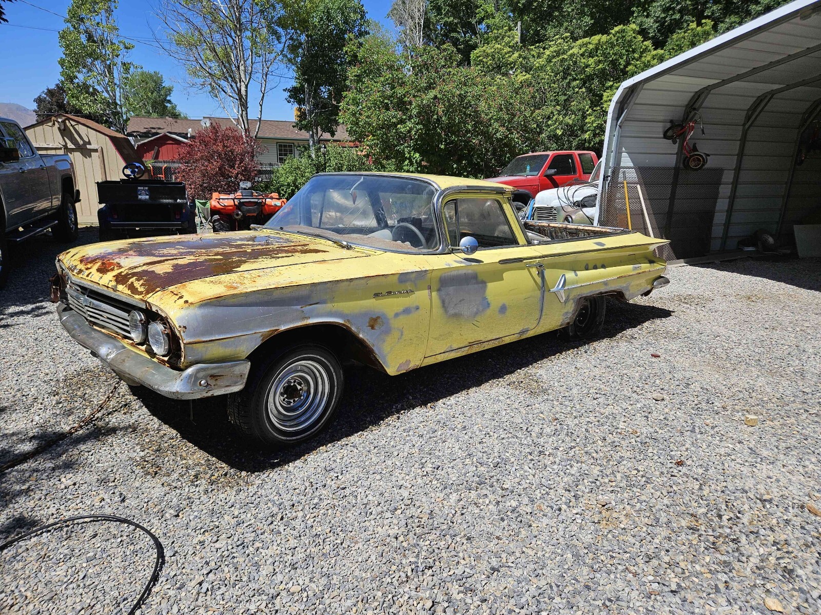 1960 chevy elcamino. This car has been in storage for over 20 years. There is some rust in both quarter panels. Also some in the floor. Other than that, it's in pretty good shape. All the trim is with the car. No engine or transmission.