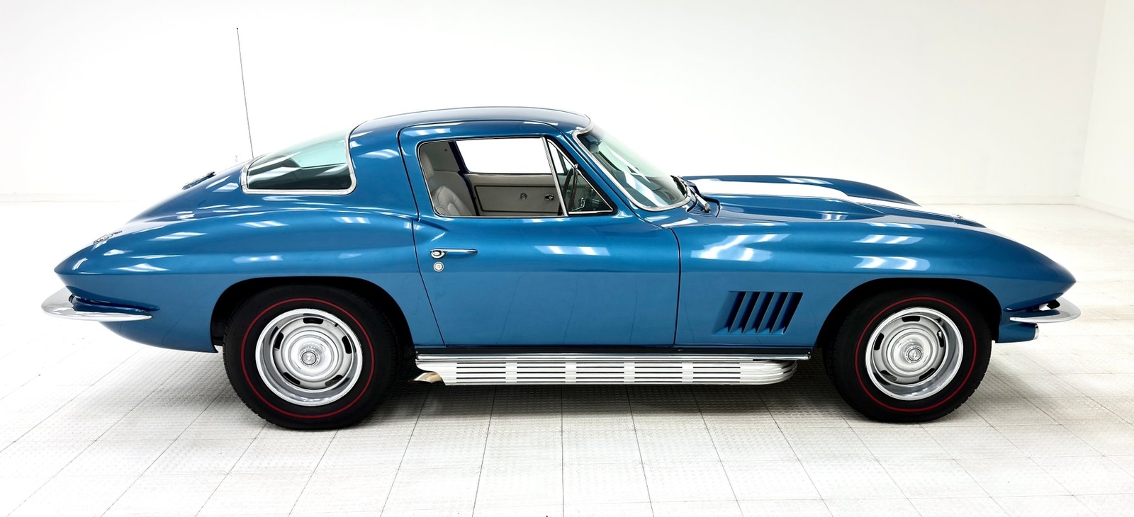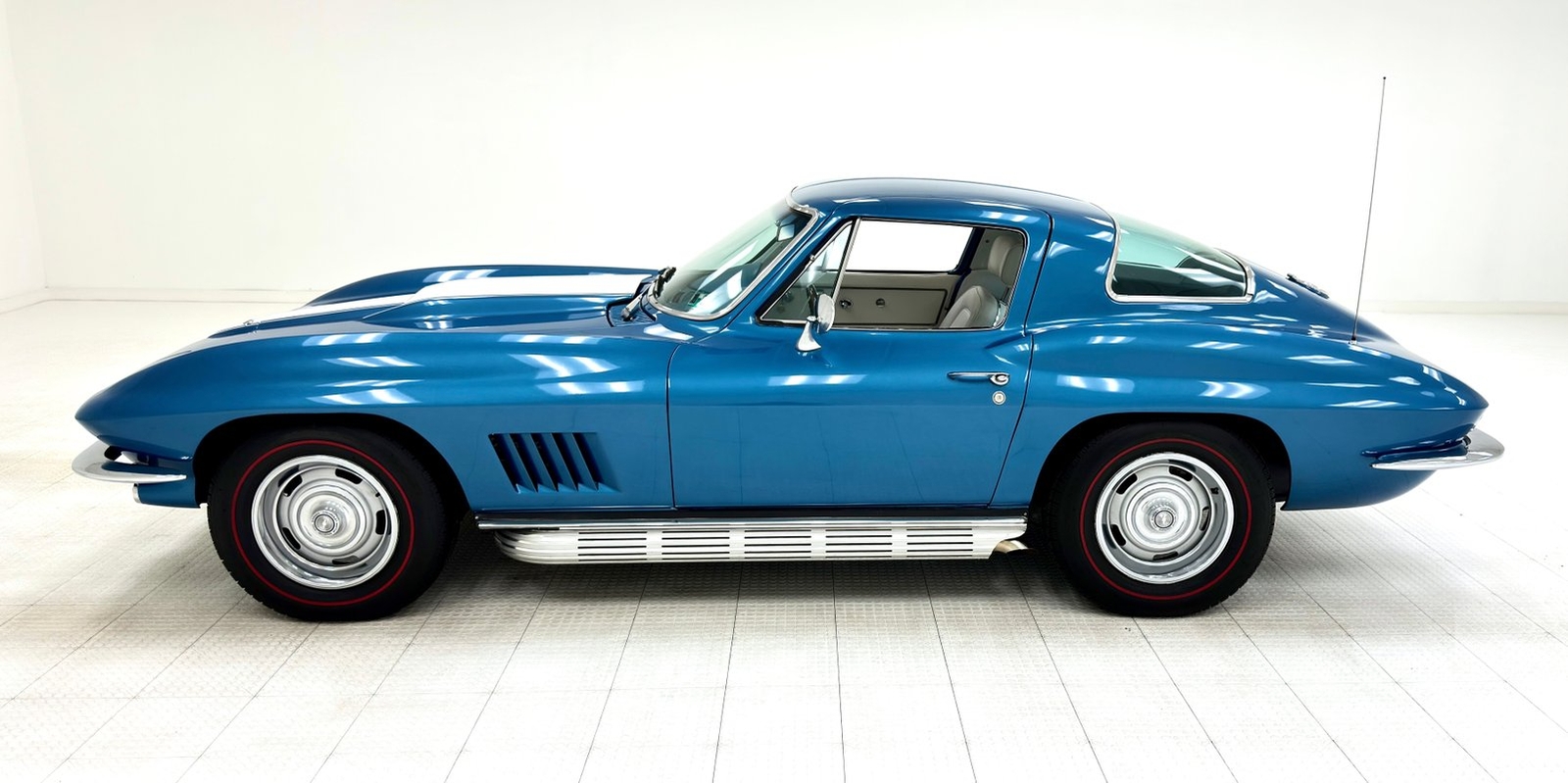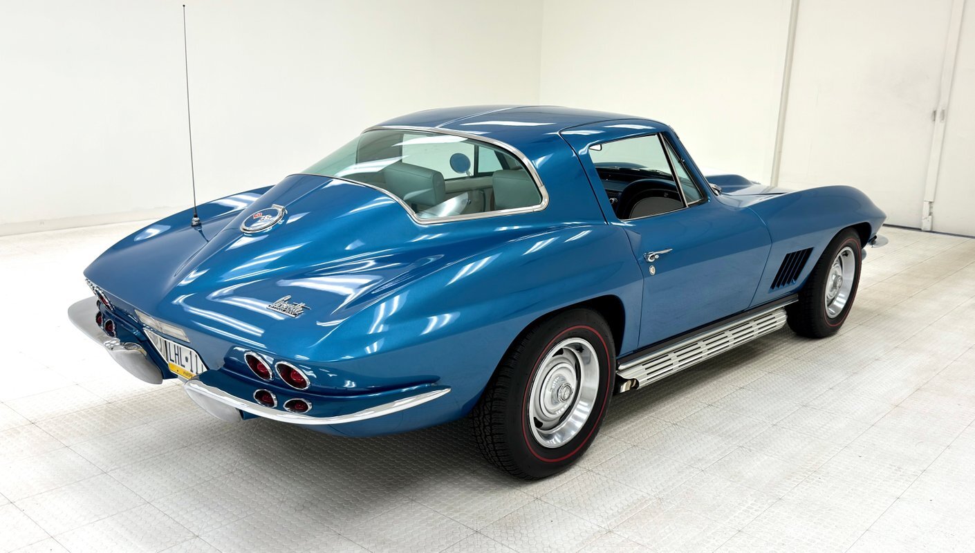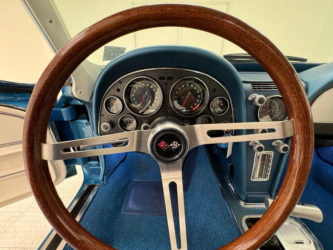 For consignment, a 1967 Chevrolet Corvette coupe with a 327 and in the second most common color, Marina Blue. Goodwood Green was produced in the most numbers with 4,293 leaving the factory in green. With only around 23,000 Corvettes built in '67, all of them today are considered uncommon or rare, regardless of color.