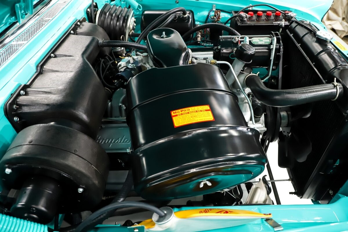 ENGINE COMPARTMENT: This is mechanical jewelry! Every single component is refinished, polished, restored and detailed like brand new. The heart of it is a 392 Hemi making 325 hp and 440 lbs of torque! It has the raw fiberglass heater box, anodized power brake booster, correct hose clamps and stickers. It even has the Mopar washer fluid bag and a reproduction battery.